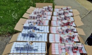 FOTO: Policija Krāslavas novadā liepājnieka automašīnas salonā atklāj vērienīgu nelegālo cigarešu daudzumu