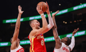 Latvijas basketbola lielākā zvaigzne Kristaps Porziņģis. Foto. AP. Scanpix Atlantas "Hawks" komanda svētdien bez Kristapa Porziņģa izcīnīja uzvaru Nacionālās basketbola asociācijas (NBA) mačā. "Hawks" viesos ar rezultātu 142:134 (25:29, 32:29,...