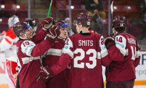 Foto - Tim Austen/IIHF Zviedrijas U-20 vīriešu hokeja izlase trešdien kļuva par Latvijas pretinieci pasaules junioru čempionāta ceturtdaļfinālā. Spēlē par pirmo vietu A grupā Zviedrija ar rezultātu 6:3 (1:0, 4:2,...