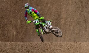Pauls Jonass. Foto: Kawasaki Motor Europe Kalvenes sportists Pauls Jonass svētdien Anglijā aizvadīja "Hawkstone International" motokrosa sacensības, kas bija viņa pirmais starts "Kawasaki" rūpnīcas komandas sastāvā. Superfinālā izdevās izcīnīt godalgoto...