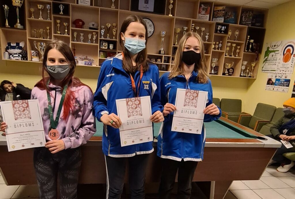 Vingrinājumā “MŠ-30” meitenēm bronzas medaļu ieguva Dienvidkurzemes Sporta skolas pārstāve Amanda Zozuļa (pa kreisi). Foto no Riharda Frīdenberga arhīva.