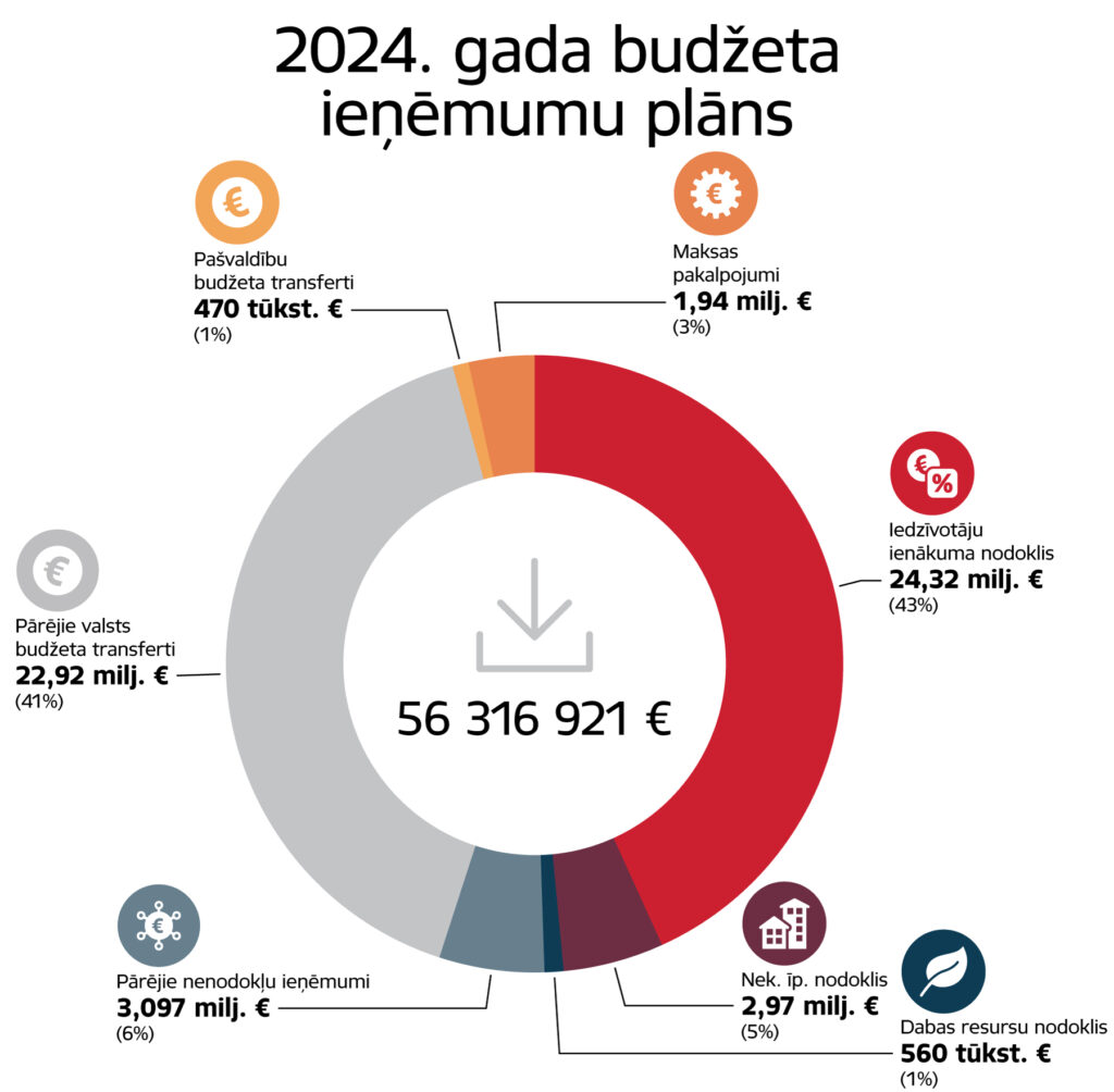 Iedzīvotāju ienākuma nodokļa (IIN) prognoze saskaņā ar Finanšu ministrijas datiem 2024.gadam ir 24 317 589 eiro, kas ir par 5,6% vairāk nekā iepriekšējā gadā saņemtais IIN.