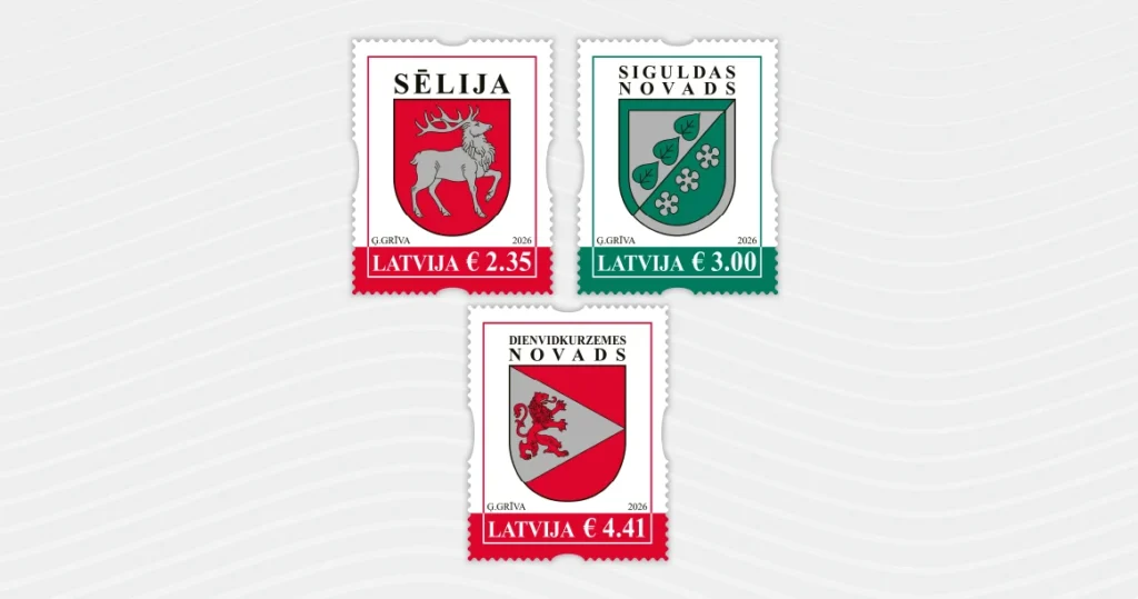 "Latvijas pasts" piektdien izdos pastmarkas ar Sēlijas, Siguldas un Dienvidkurzemes novadu ģerboņiem