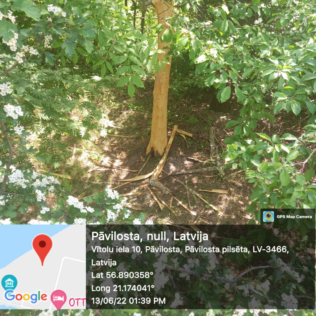 Pāvilostā (iespējams 11., 12. vai 13. jūnijā) kāds nekrietns cilvēks nodarījis pāri osim – kokam pilnībā nomizota stumbra miza un koks iet bojā.