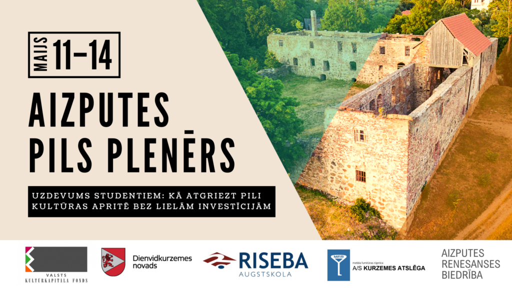 No 11. līdz 14. maijam Aizputē pulcēsies dažādu Latvijas augstskolu studenti un lektori, lai starpdisciplinārā plenērā meklētu risinājumus Aizputes pils starpizmantošanai.