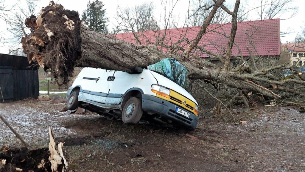 Pirmdienas, 17. janvāra, vētra Dienvidkurzemes novadā netālu no Padures pamatskolas izgāzusi vecu kastani, kas uzkritis pie koka novietotajam busiņam.