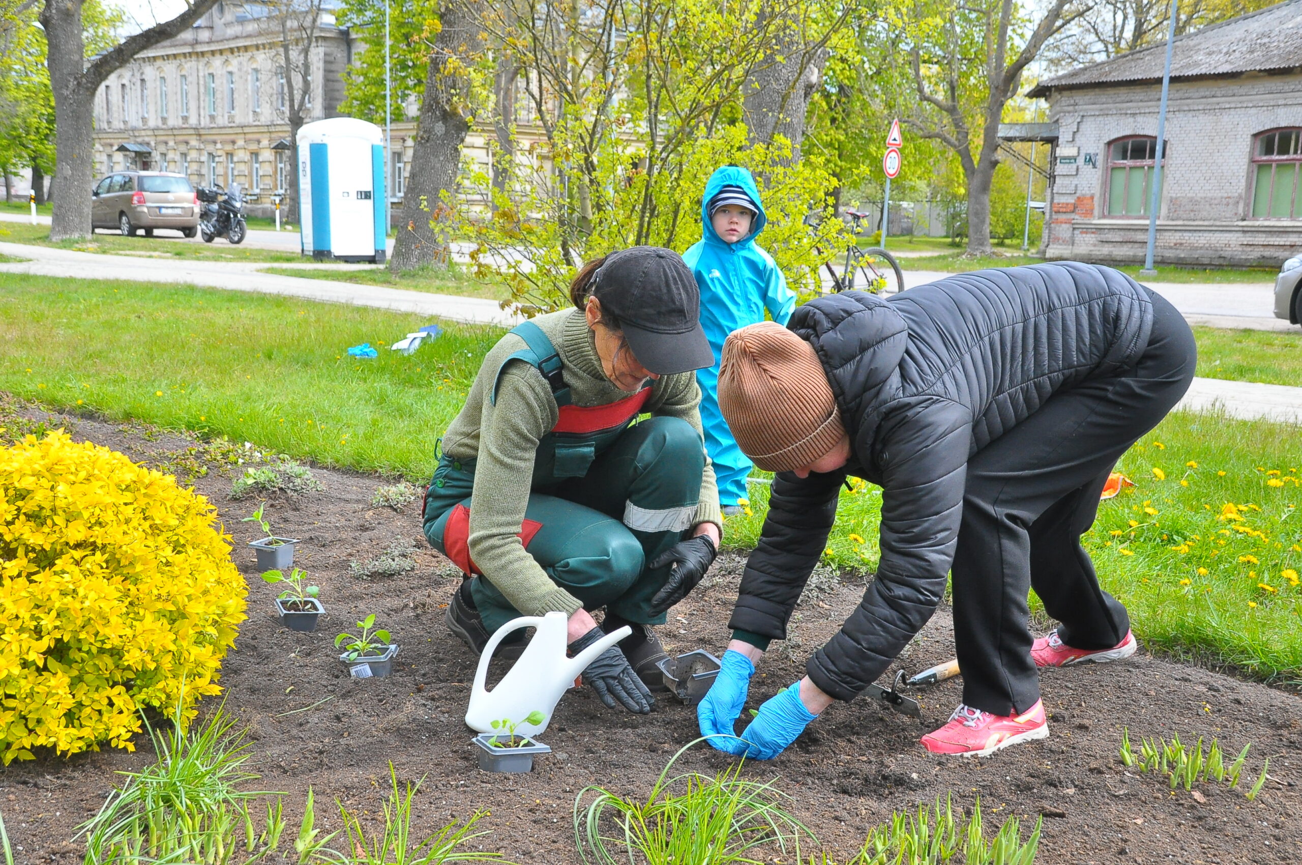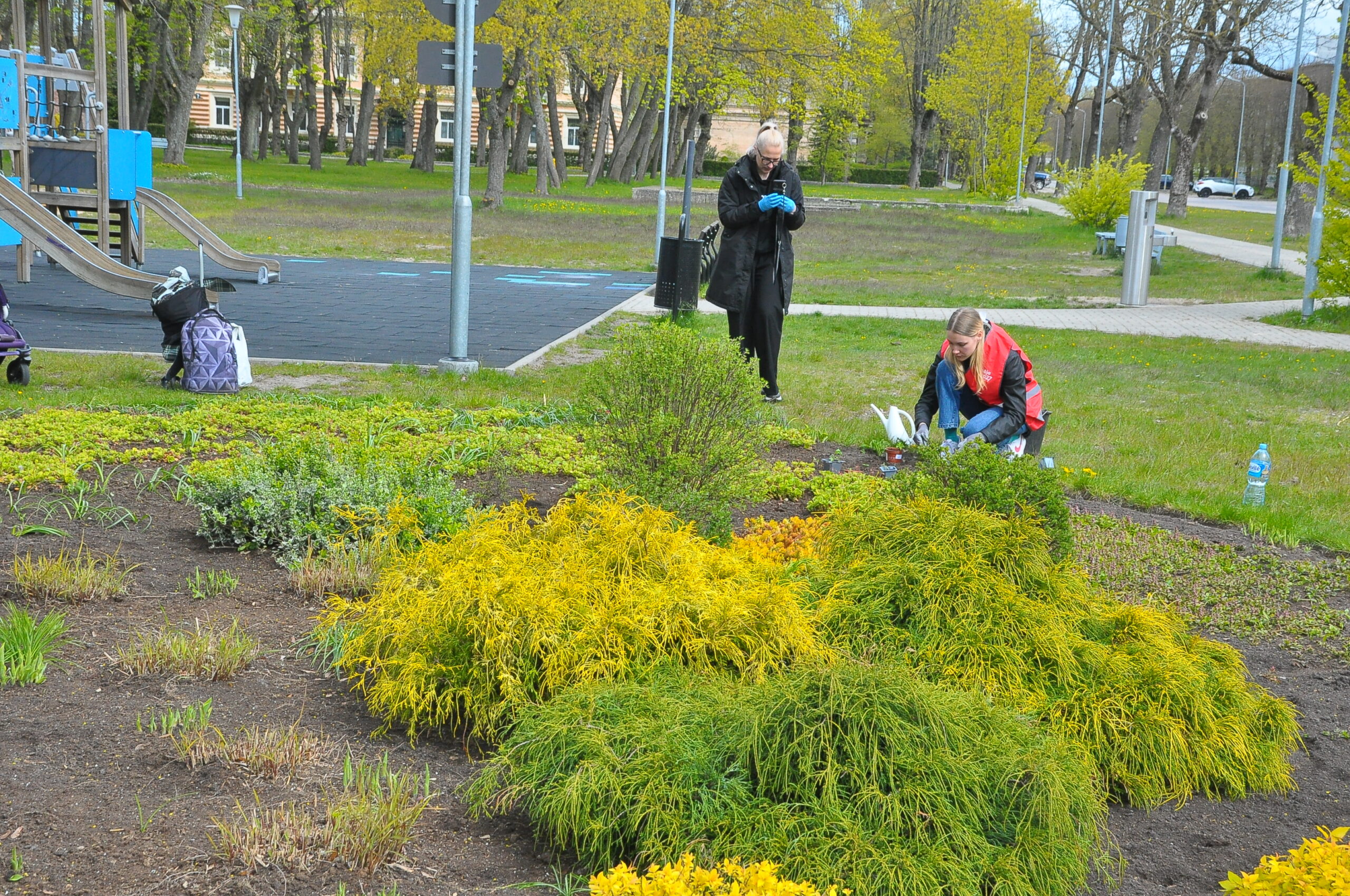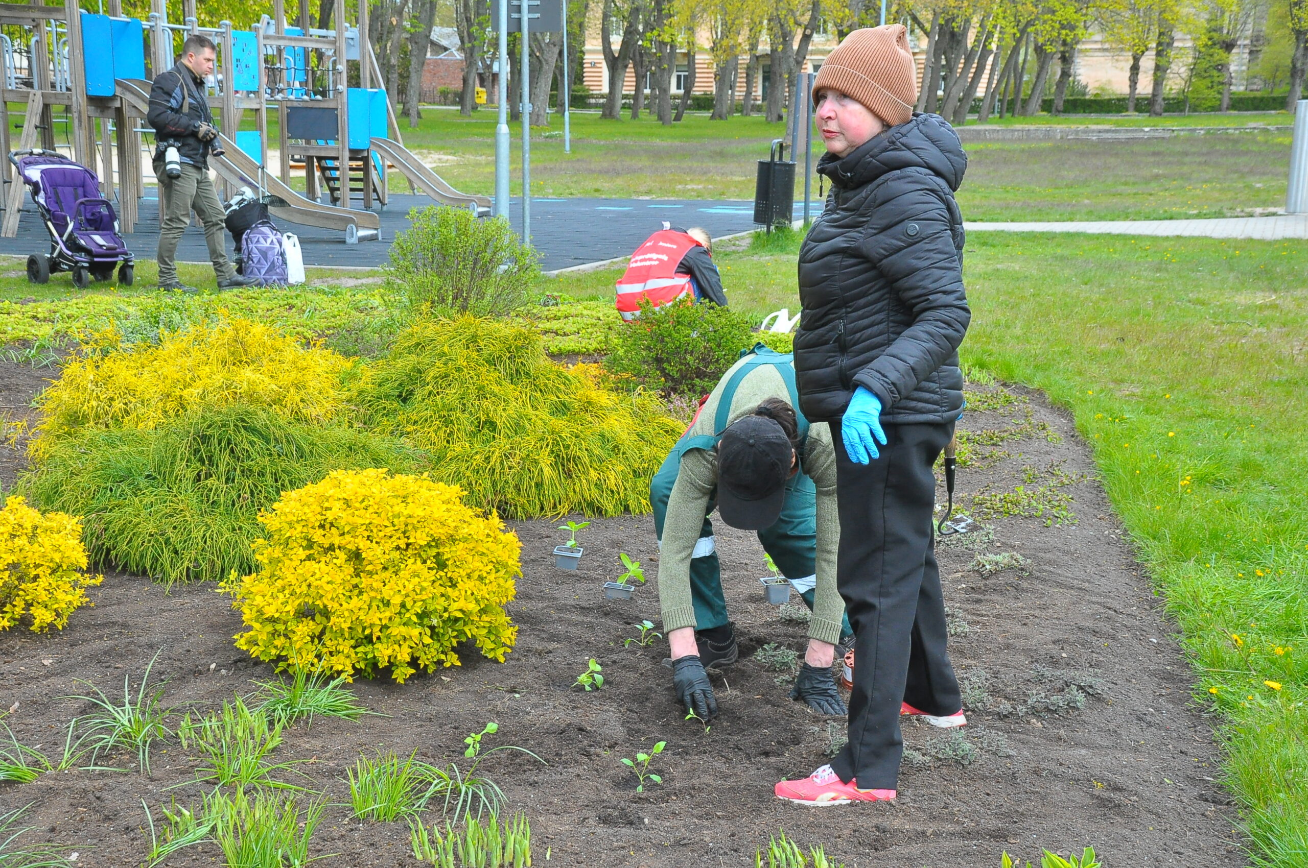 Piektdien divu stundu garumā kopā ar pilsētas dārzniecēm notika stādu dēstīšanas darbi dažādās pilsētas vietās un mikrorajonos. Portāls “ReKurzeme” pabija Lāčplēša dārzā Karostā.