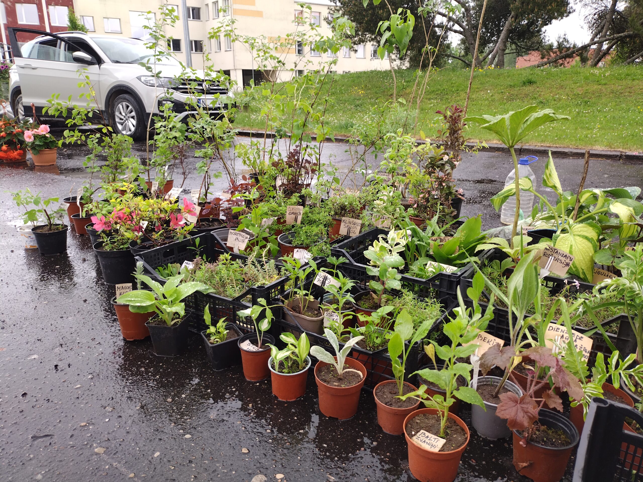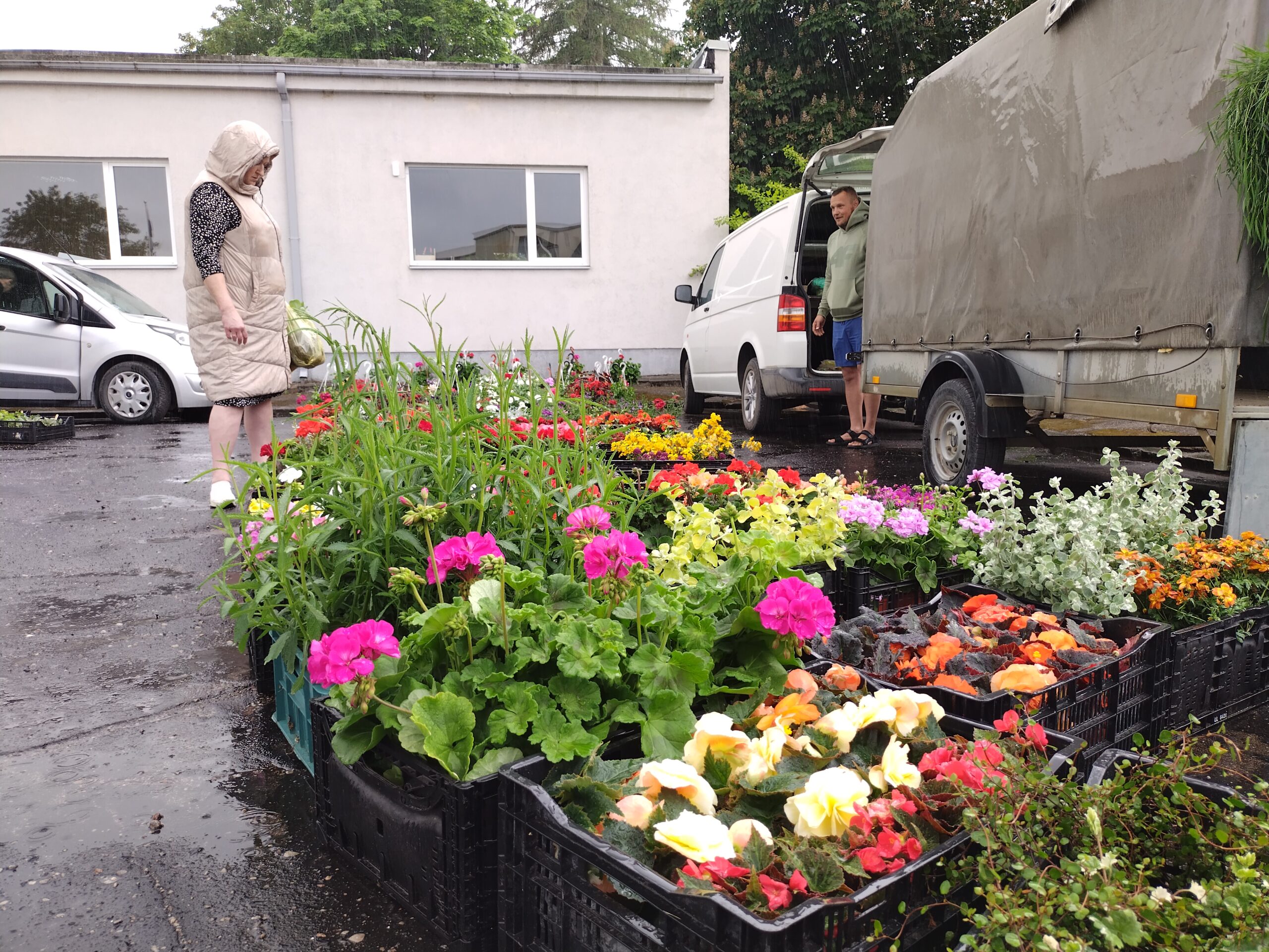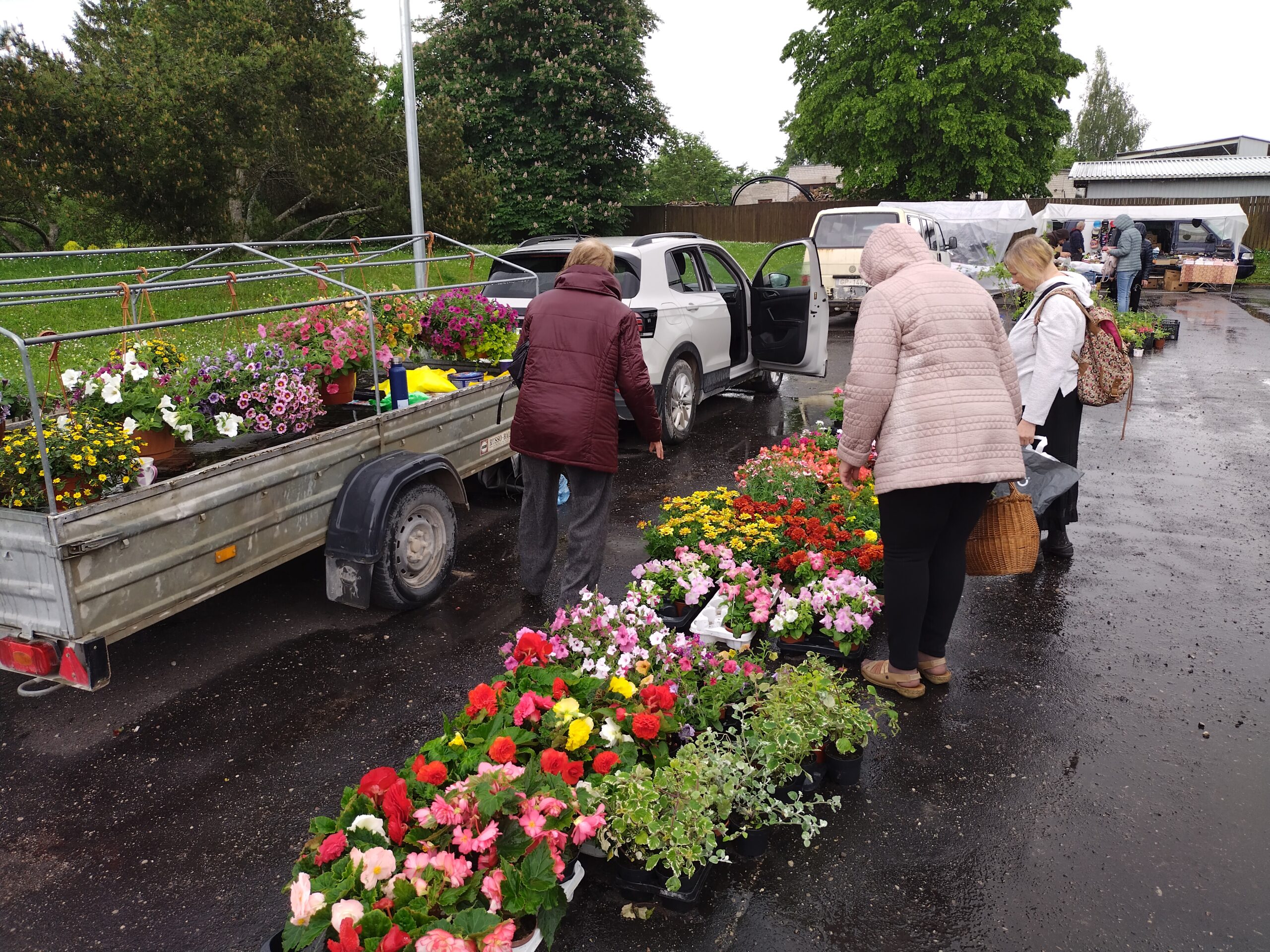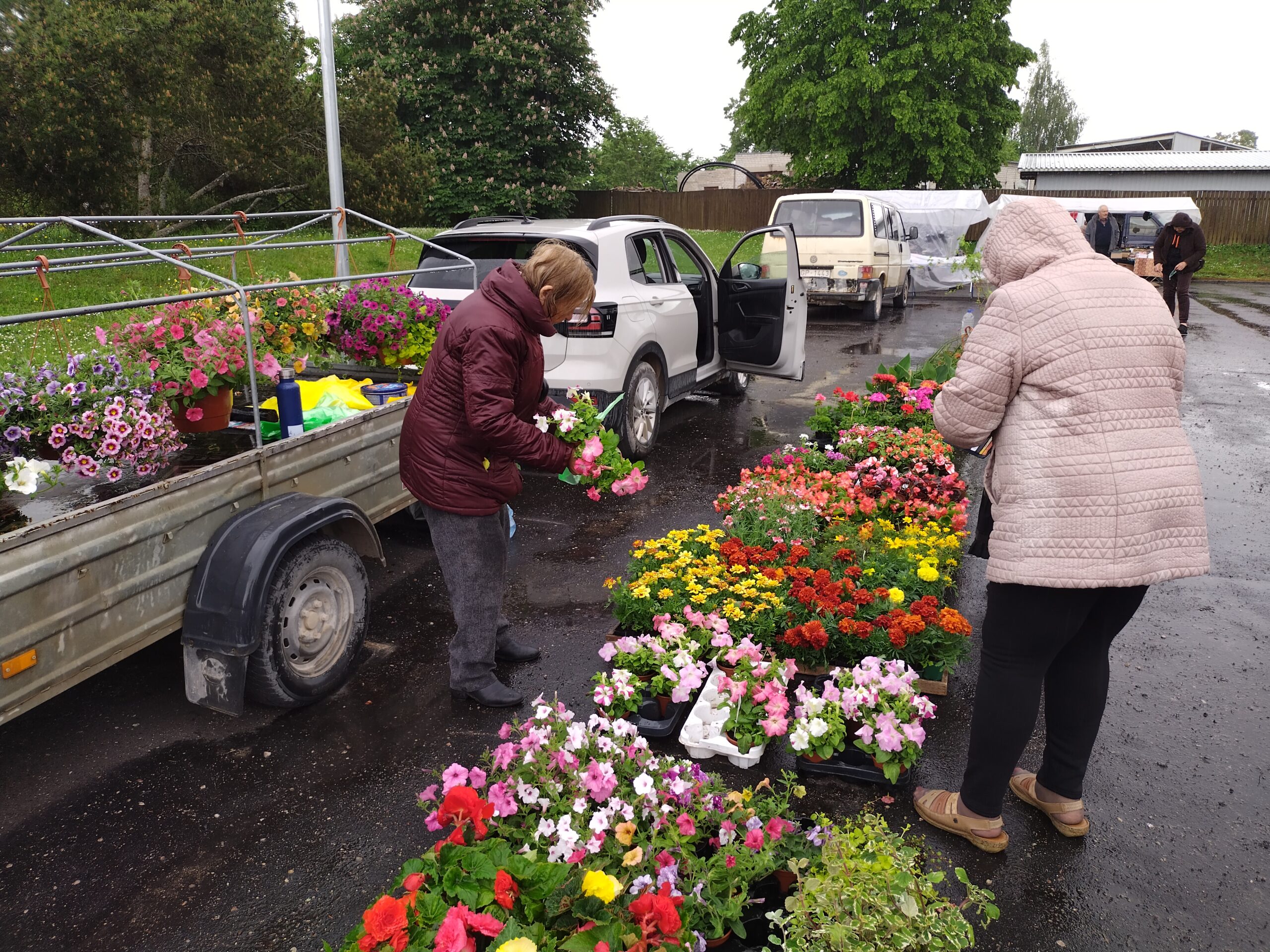 Svētdien, 8. jūnijā, Durbē stāvlaukumā aiz kultūras nama notika šā gada pēdējais stādu tirgus, kur plašā izvēlē bija gan puķu stādi, gan citi stādi. Tirgotājus un pircējus vienu brīdi pārsteidza negaidīts lietus.