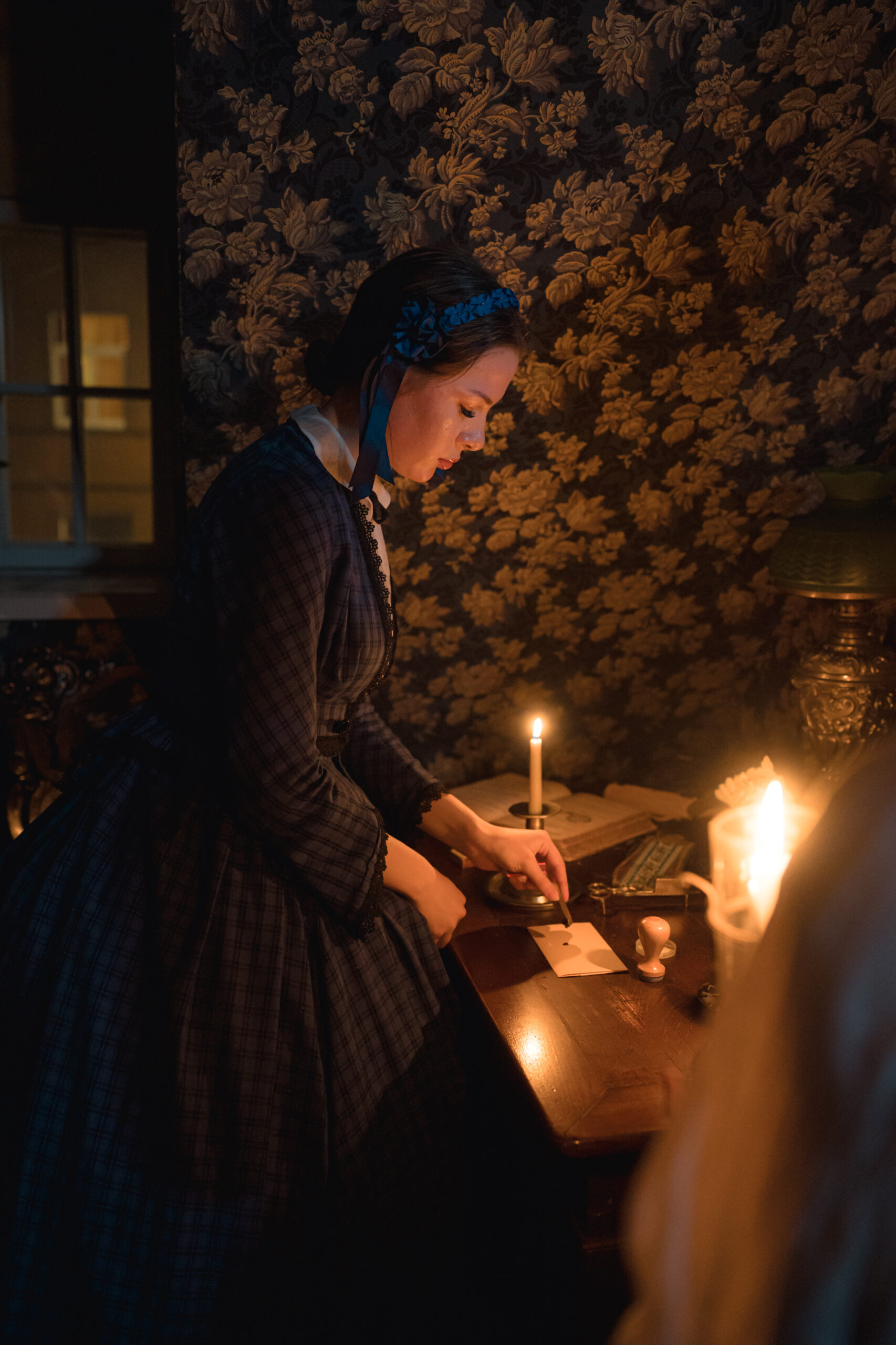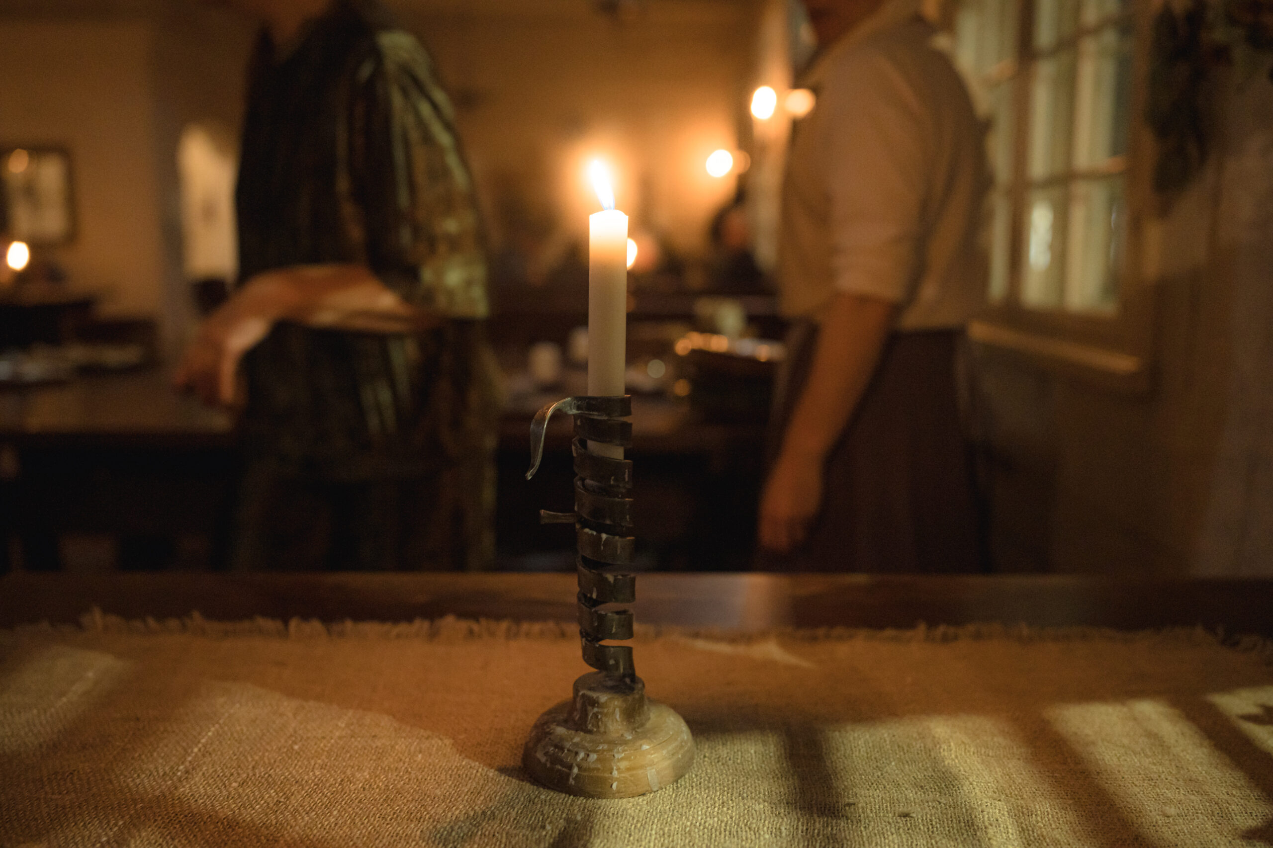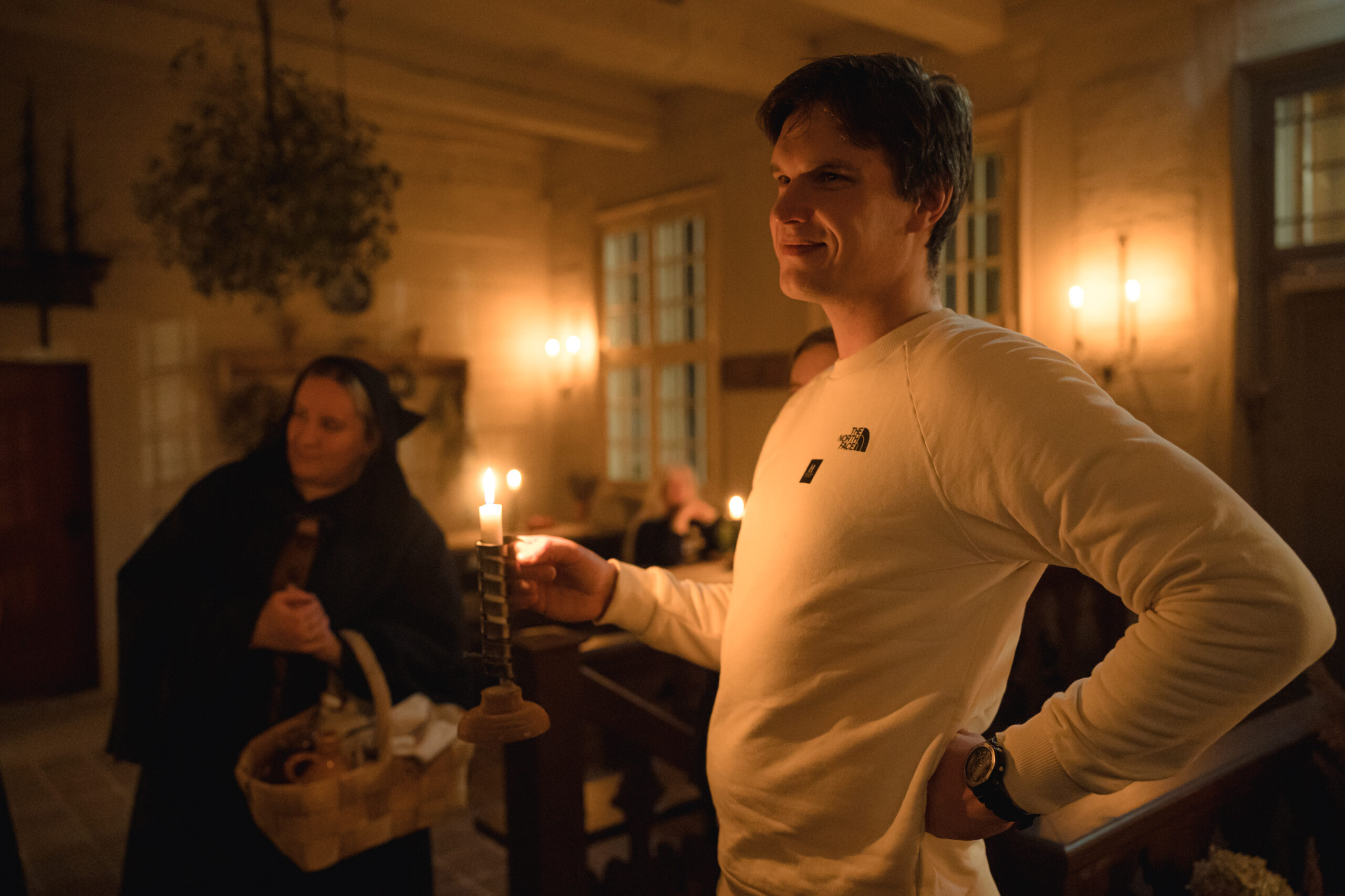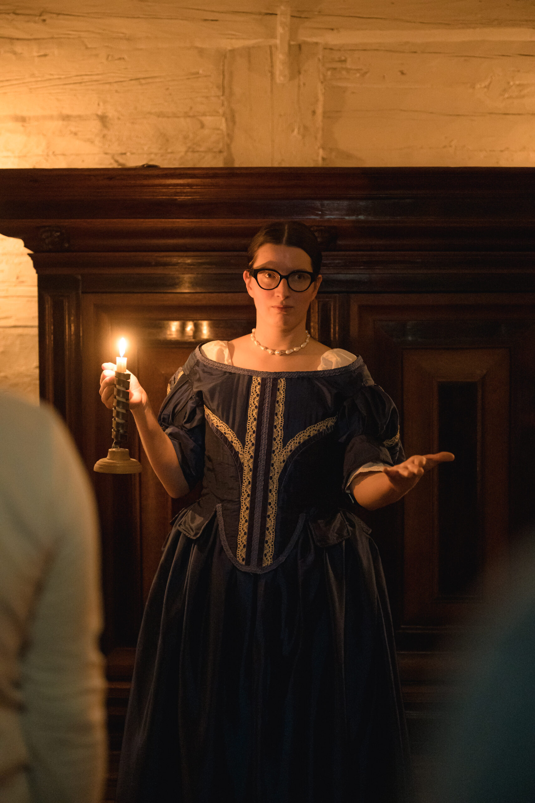 “Ekskursija sveču gaismā” ļāva piedzīvot īpašu senatnes noskaņu, ielūkojoties vēsturiskajos interjeros un tā laika ļaužu vakara gaitās. Apmeklētāji sastapa namā ieklīdušu zintnieci, guļamkambarī trīs dienas aizsnaudušos spēlmani, kā arī nama saimnieci ar kalponi, kuras dalījās dienas gaitās un ievadīja klātesošos nama vēsturē, portālu “ReKurZeme” informē Liepājas muzeja filiāles Liepājas 17.-19.gs. interjera muzejs “Hoijeres kundzes viesu nams” vadītāja Ieva Dzintare.