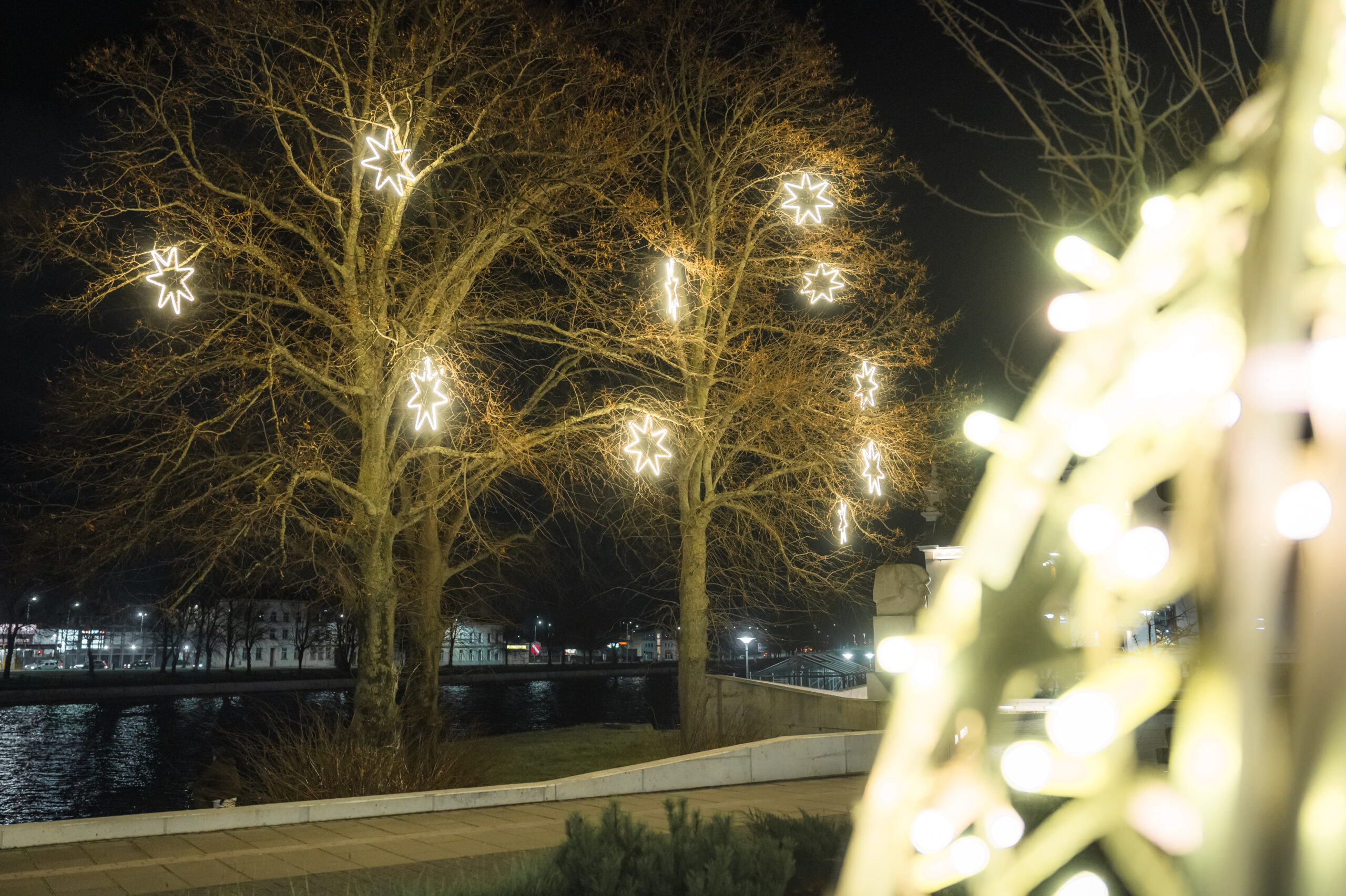 Līdz ar pilsētas lielās egles atklāšanu Rožu laukumā Liepājā tiek iedegti svētku rotājumi, kas mirdz viscaur pilsētai un aicina gan liepājniekus, gan arī tuvus un tālus pilsētas viesus doties pastaigā pa pilsētu. Pietam šogad rotājumu klāstu papildina jauni mākslinieciski tēli jaunās vietā – īpaši sapņaina noskaņa sagaida Jūrmalas parkā un pie Gulbju dīķa.
