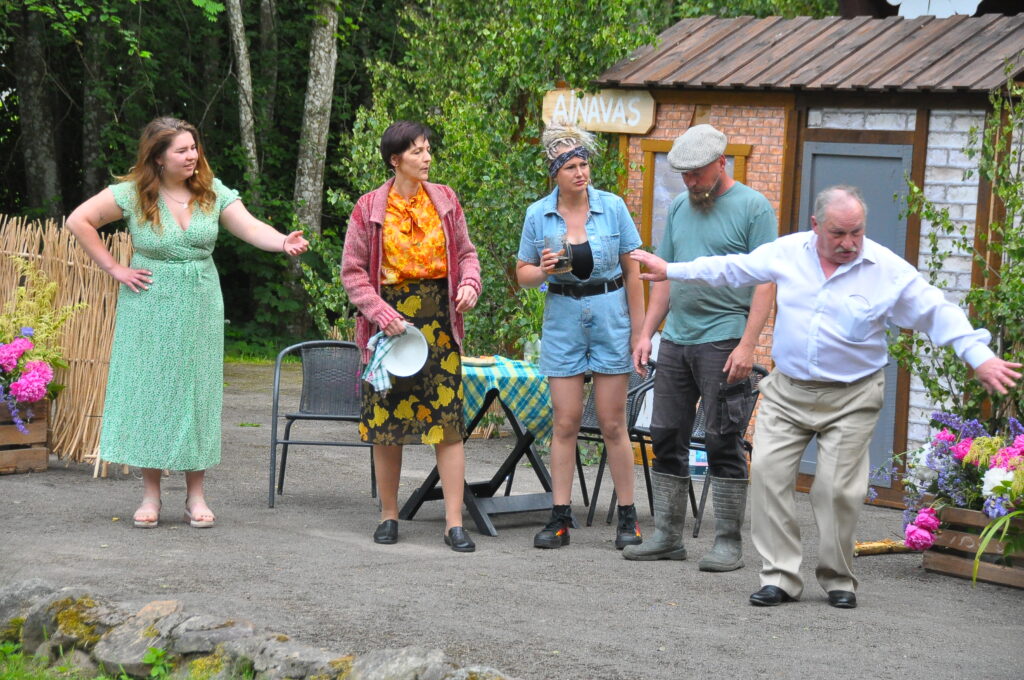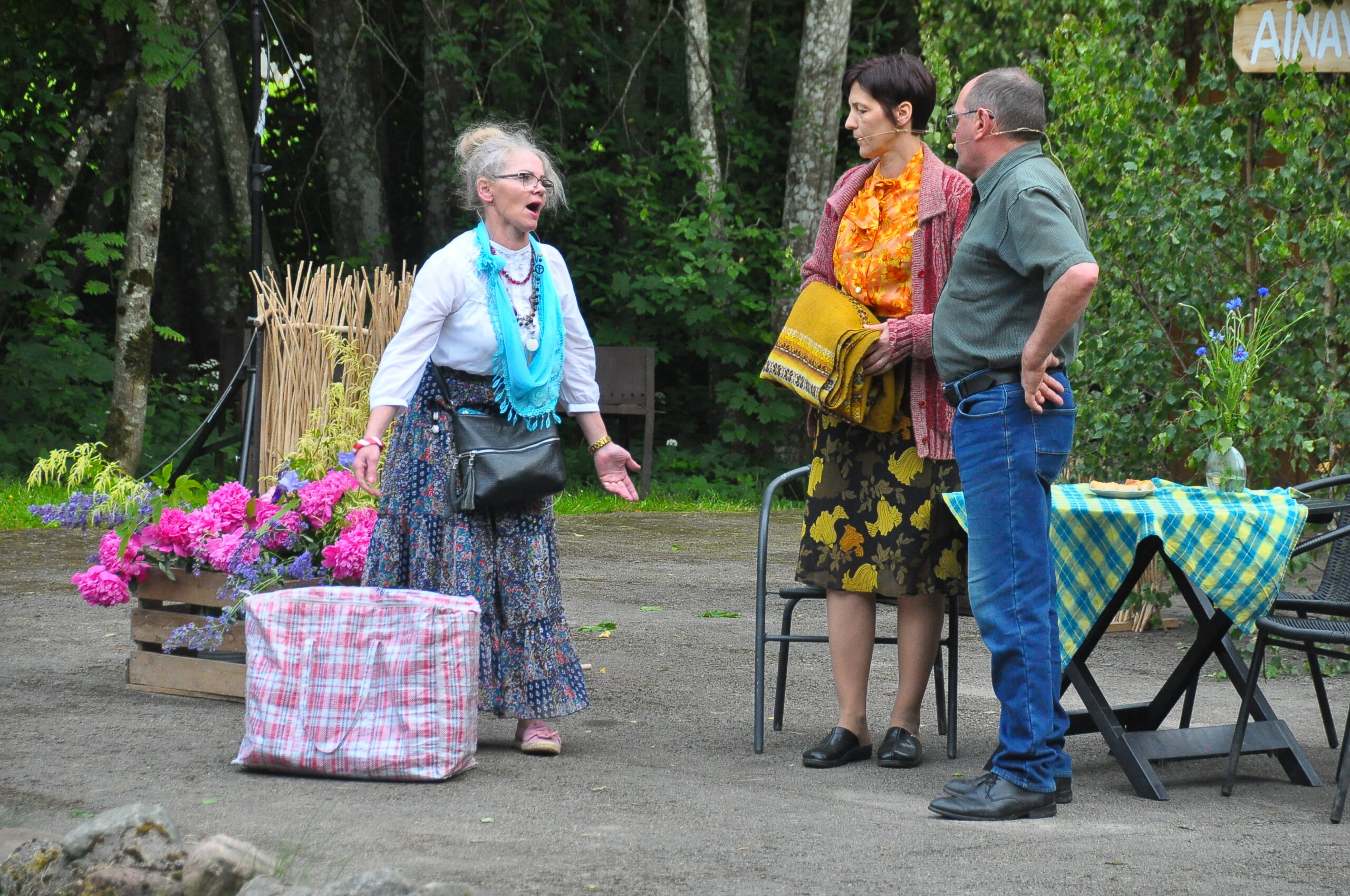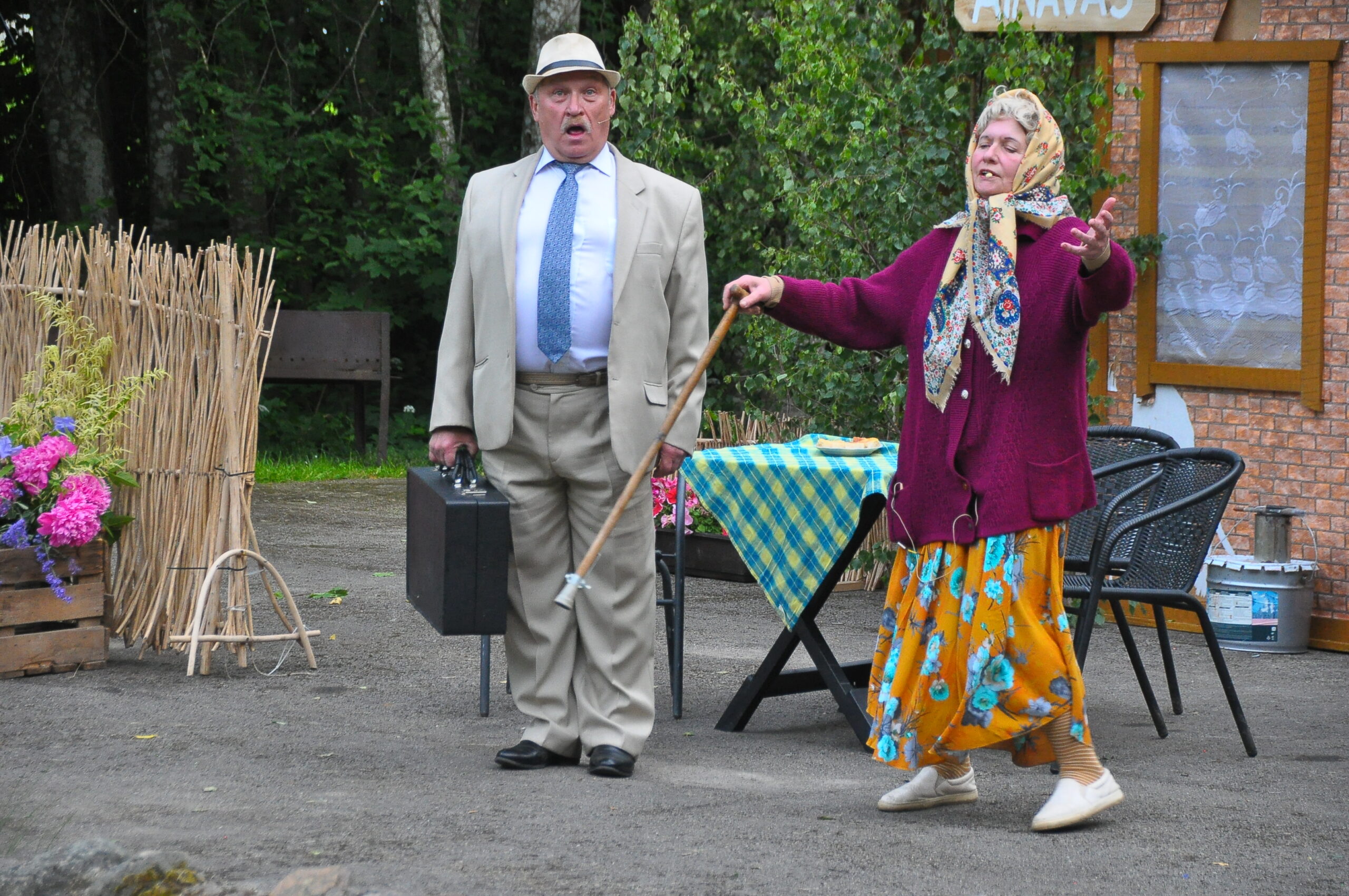 Nepārspējams izrādē bija arī Aizputes Tautas teātra režisors Igors Māters, kurš iejutās Levija Šnicela lomā – “Sāls” bankas kredītdaļas vadītājā. Savukārt saimnieku bērni bija Sindija Ruzaiķe un Elgars Jonass.