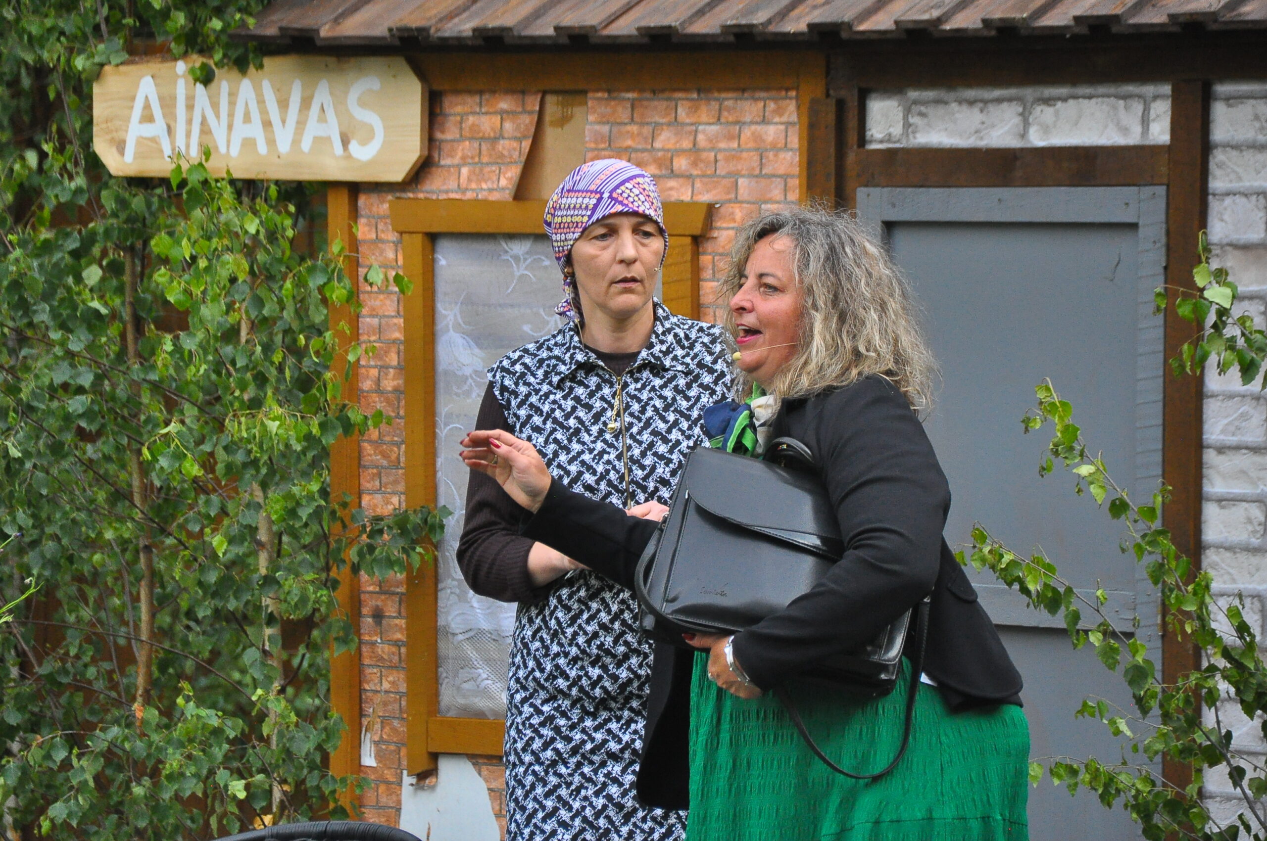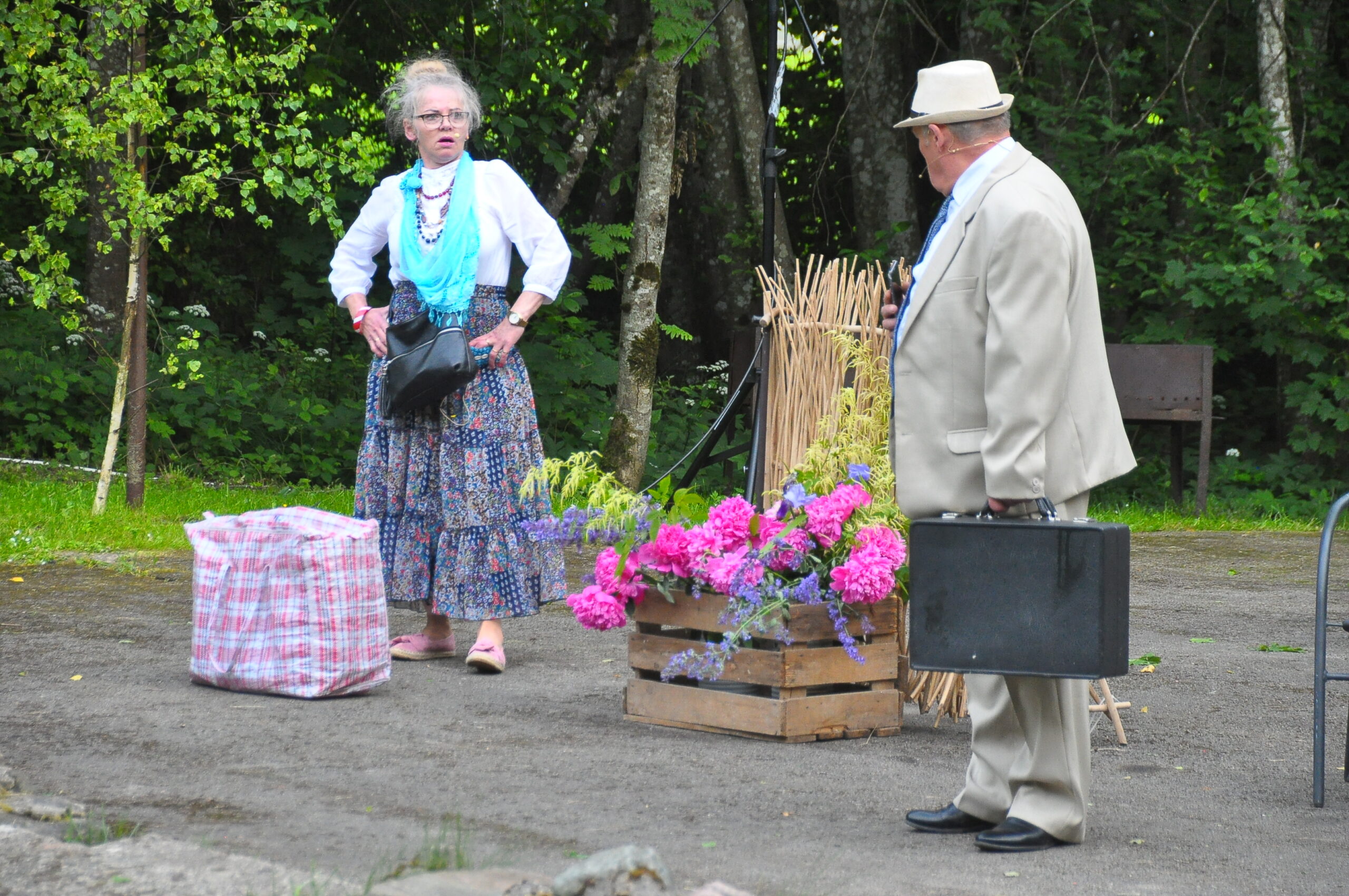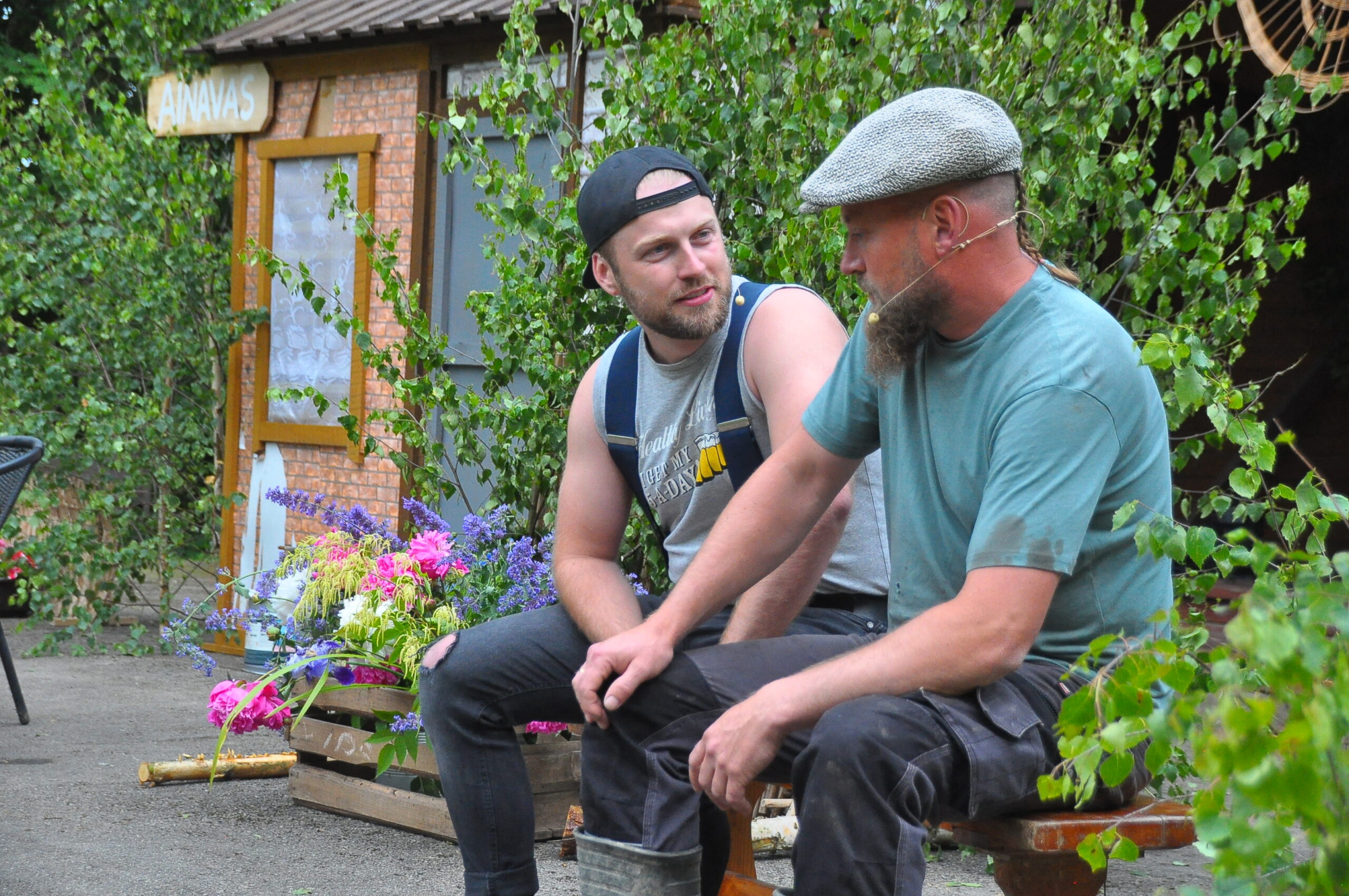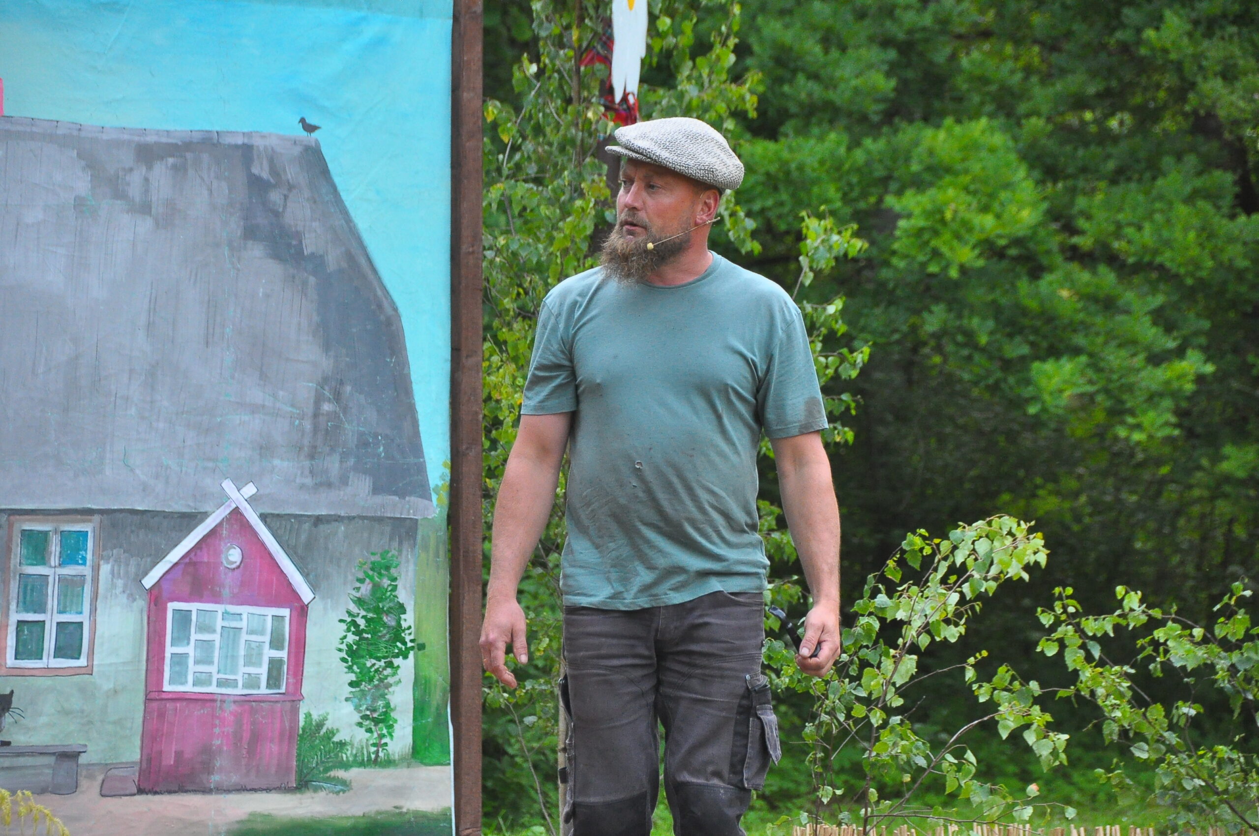 Nepārspējams izrādē bija arī Aizputes Tautas teātra režisors Igors Māters, kurš iejutās Levija Šnicela lomā – “Sāls” bankas kredītdaļas vadītājā. Savukārt saimnieku bērni bija Sindija Ruzaiķe un Elgars Jonass.