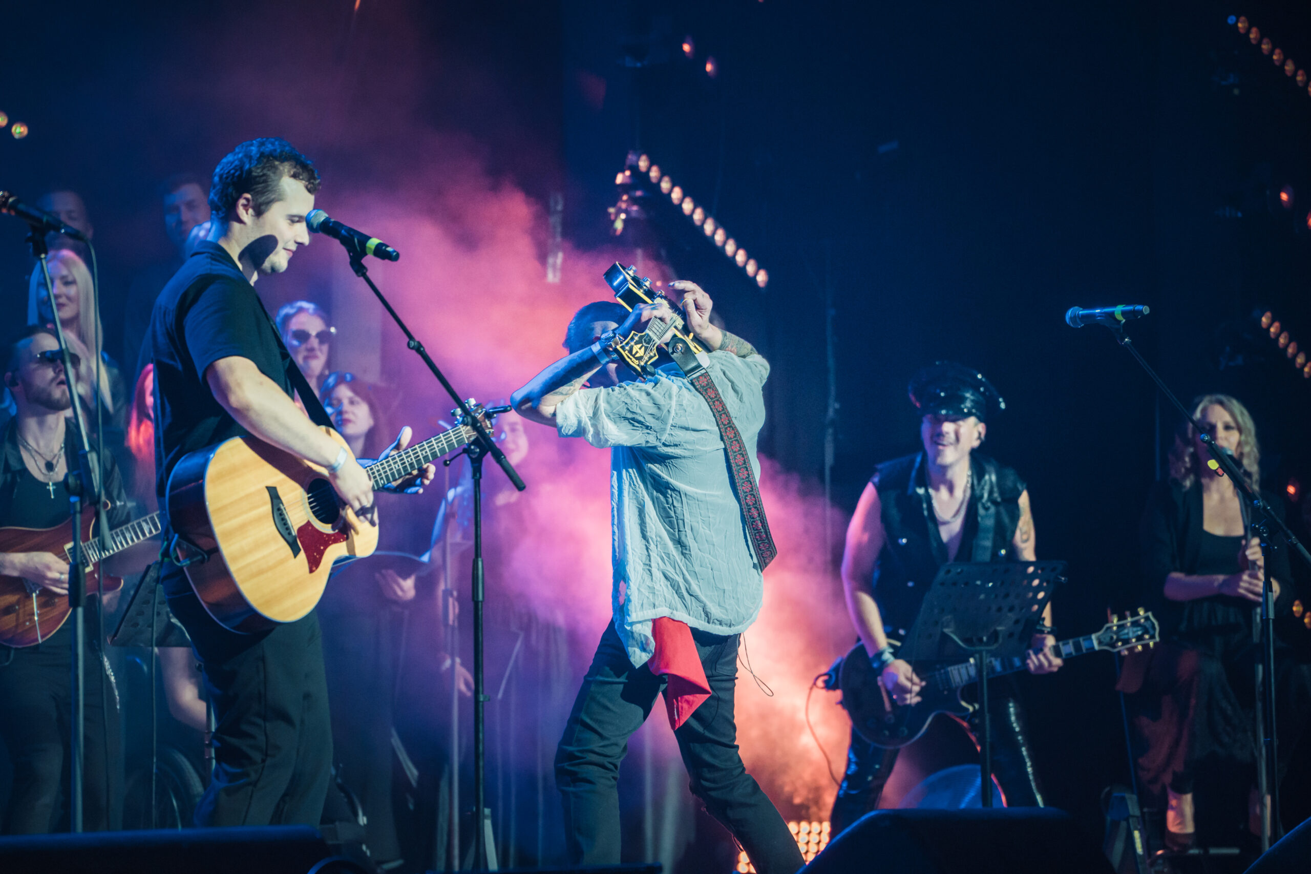 Tajos liepājnieku zelta dziesmas izdziedāja un izspēlēja solisti Zigfrīds Muktupāvels, Ainars Virga, Guntis Veits, IGO, Jānis Narkevics (jun.) un Andris Ērglis, pavadošās grupas mūziķi un varens liepājnieku apvienotais kopkoris diriģenta, maestro Jēkaba Ozoliņa vadībā. Koncertu muzikālais vadītājs Jānis Strazds, bet scenāriju un režiju veidoja Maija Kalniņa – viņa kopā ar leģendāro grupas “Credo” mūziķi Valdi Skujiņu bija šo koncertu konferansjē, portālu “ReKurZeme” informē SIA “Kultūras notikumi” projektu vadītāja Anete Verbicka.