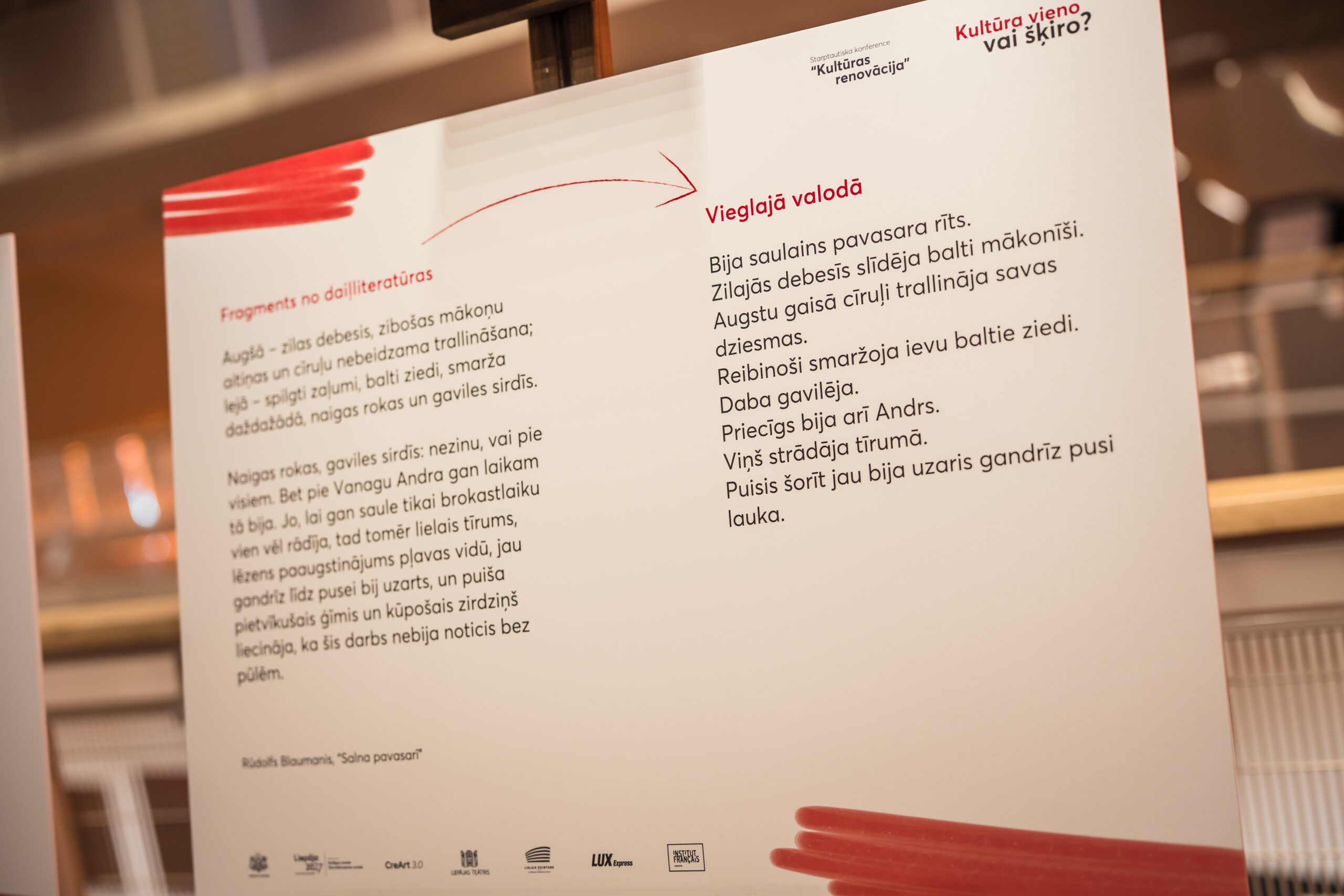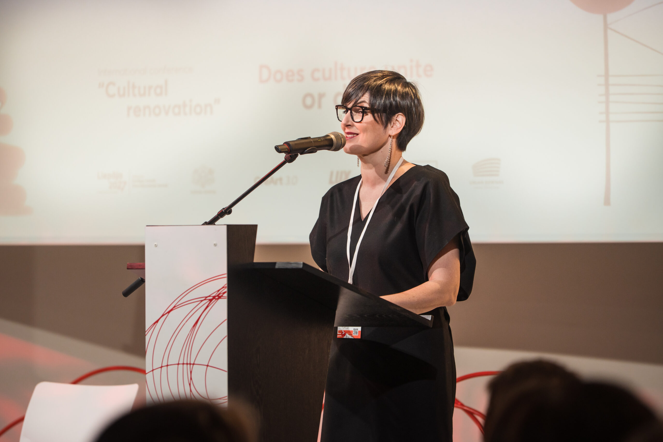 “Kā kultūras dzīves organizētāji un arī līdzcilvēki mēs esam atbildīgi par kultūras un mākslas pieejamību visiem. Pasaule šodien virzās uz priekšu ļoti strauji, kultūrai un mākslai ir spēks mūs nedaudz piebremzēt — lai sadzirdētu, pamanītu un rīkotos. Patiesa kultūras renovācija sākas tad, kad pieejamību un piekļūstamību redzam nevis kā pienākumu, bet kā iespēju — pārdomāt, kā mēs radām, dalāmies un augam,” atklājot konferenci, sacīja Liepāja 2027 mākslinieciskā vadītāja Baiba Bartkeviča.