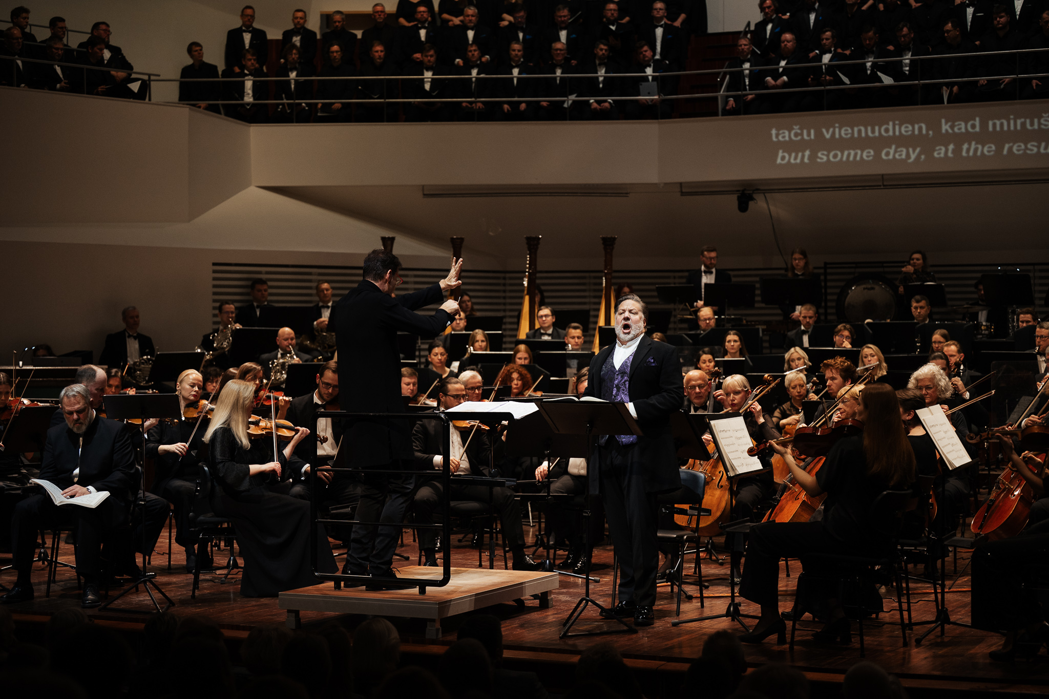 Apjomīgā skaņdarba īstenošana tika uzticēta lietuviešu diriģentam Modestam Pitrenam (Modestas Pitrenas), kurš intervijā Latvijas Radio 3 “Klasika” to raksturoja šādi: “Šis darbs ir visas cilvēces mantojums. Viens no retajiem, kuru kā mūsu ģenētisko kodu varam sūtīt uz citām galaktikām un kā mūsu civilizācijas atspulgu. Tajā ietverti visi stili – no barokāla skanējuma, caur Mālera “Urlicht” jeb Pirmgaismu līdz vāgneriskai reāli neeksistējošas pārcilvēcīgas mīlestības apoteozei, kas mājo tikai mūsu idejās un sapņos. Un vēl tā ir ļoti komplicēta partitūra, kurai veltīti daudzi gadi.”