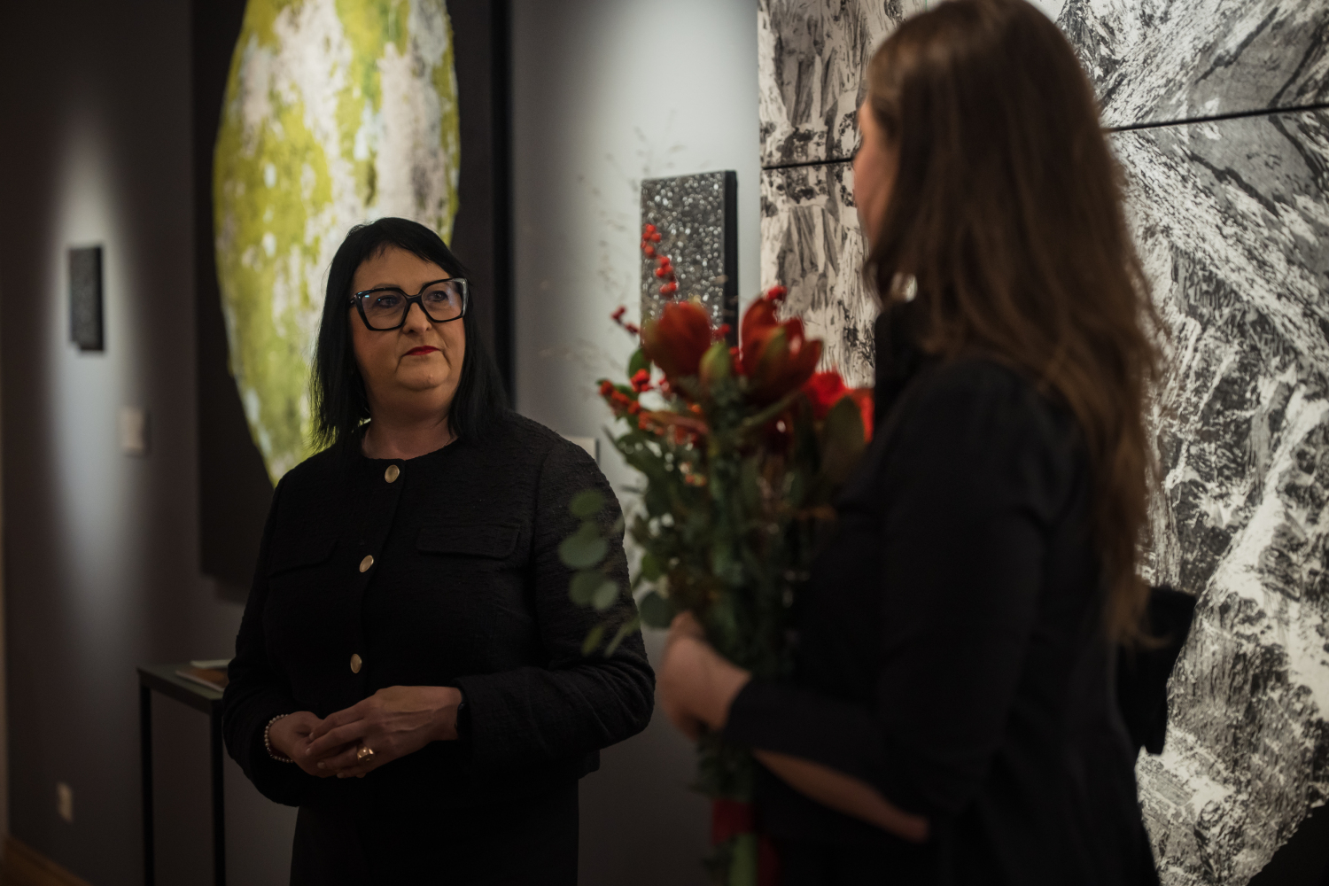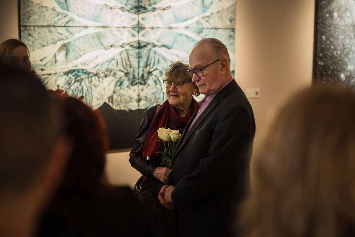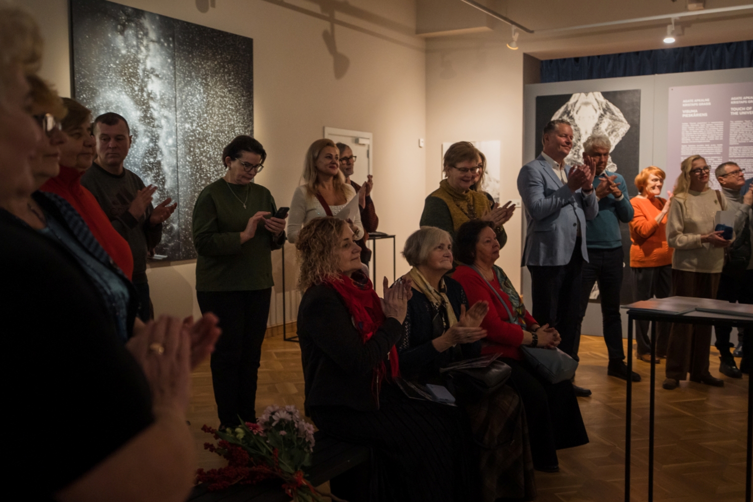 FOTO: Liepājas muzejā atklāta gleznotājas Agates Apkalnes un mūziķa Kristapa Graša kopizstāde “Visuma pieskāriens”
