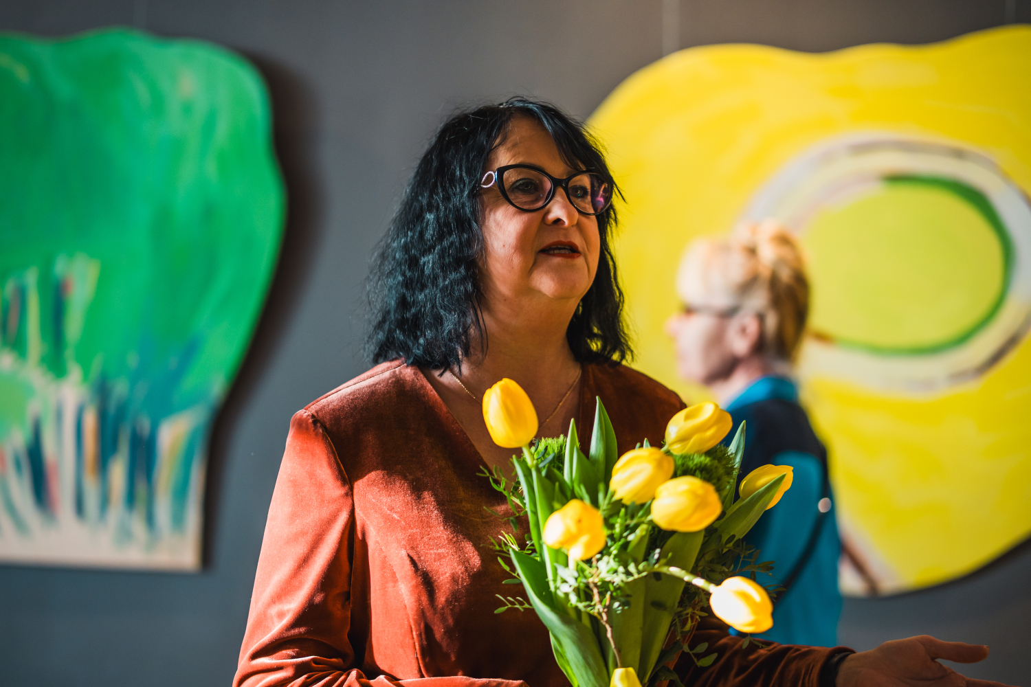 “Dabas tēli, lauki, meži un pļavas ir tas, kas mani interesē un iedvesmo. Daba ir tā, kur vienmēr gribas būt. Man arī vienmēr gribas kaut ko jaunu, negribas braukt pa vecajām sliedēm. Tā, lai pašai nebūtu garlaicīgi,” izstādes atklāšanā klātesošos uzrunāja māksliniece Ilze Karlsone.