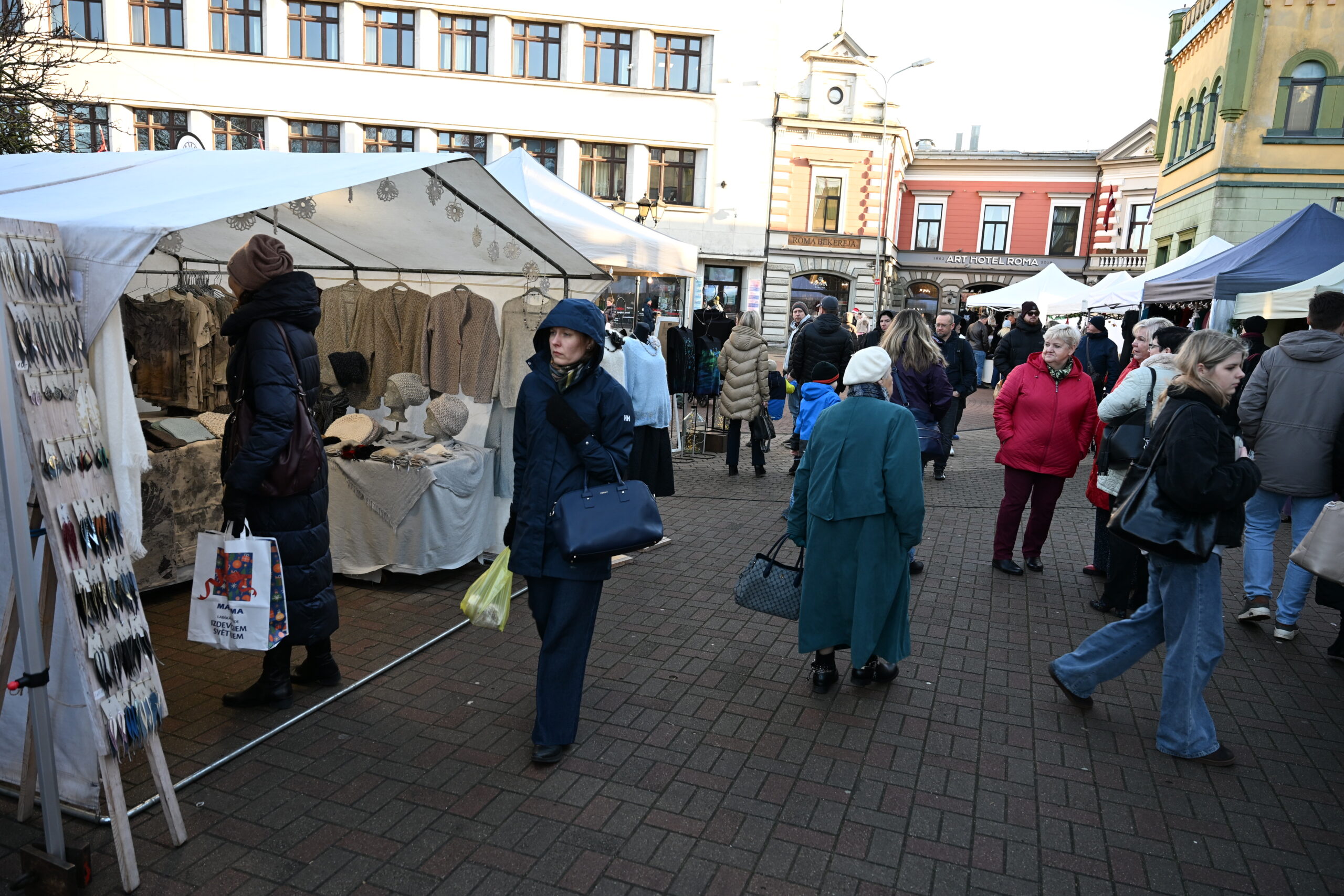 FOTO: Liepājas sirdī Rožu laukumā tirgojas Ziemassvētku noskaņās