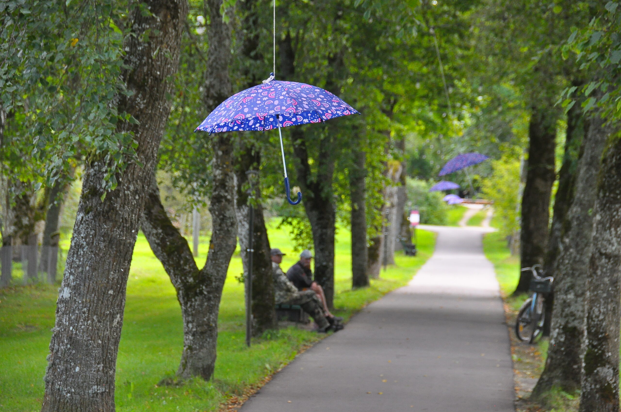 FOTO: Rucavā svin pagasta svētkus, iekrāsojot pagastu ar lietussargiem
