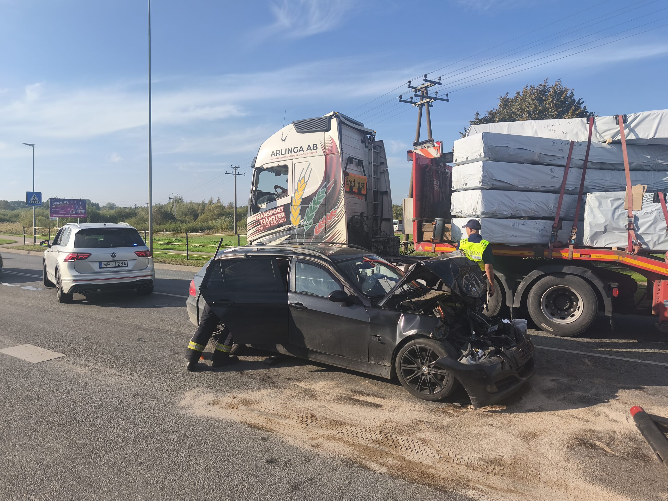 Pie autobusa pieturas “Krustojums” pamatīgi sasista bija automašīna “BMW”, bet ugunsdzēsēji glābēji pēc avārijas sakārtoja ceļa braucamo daļu.