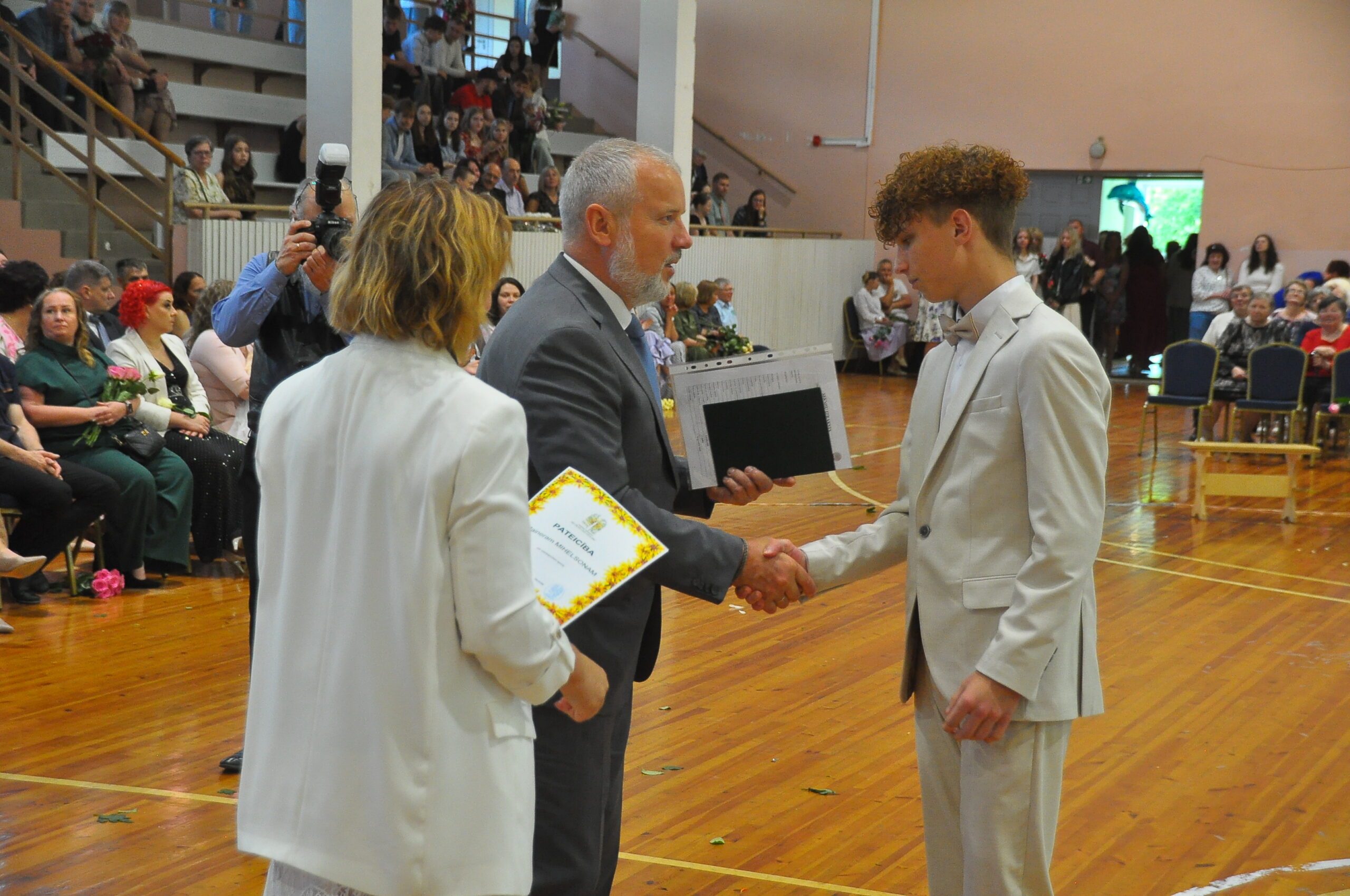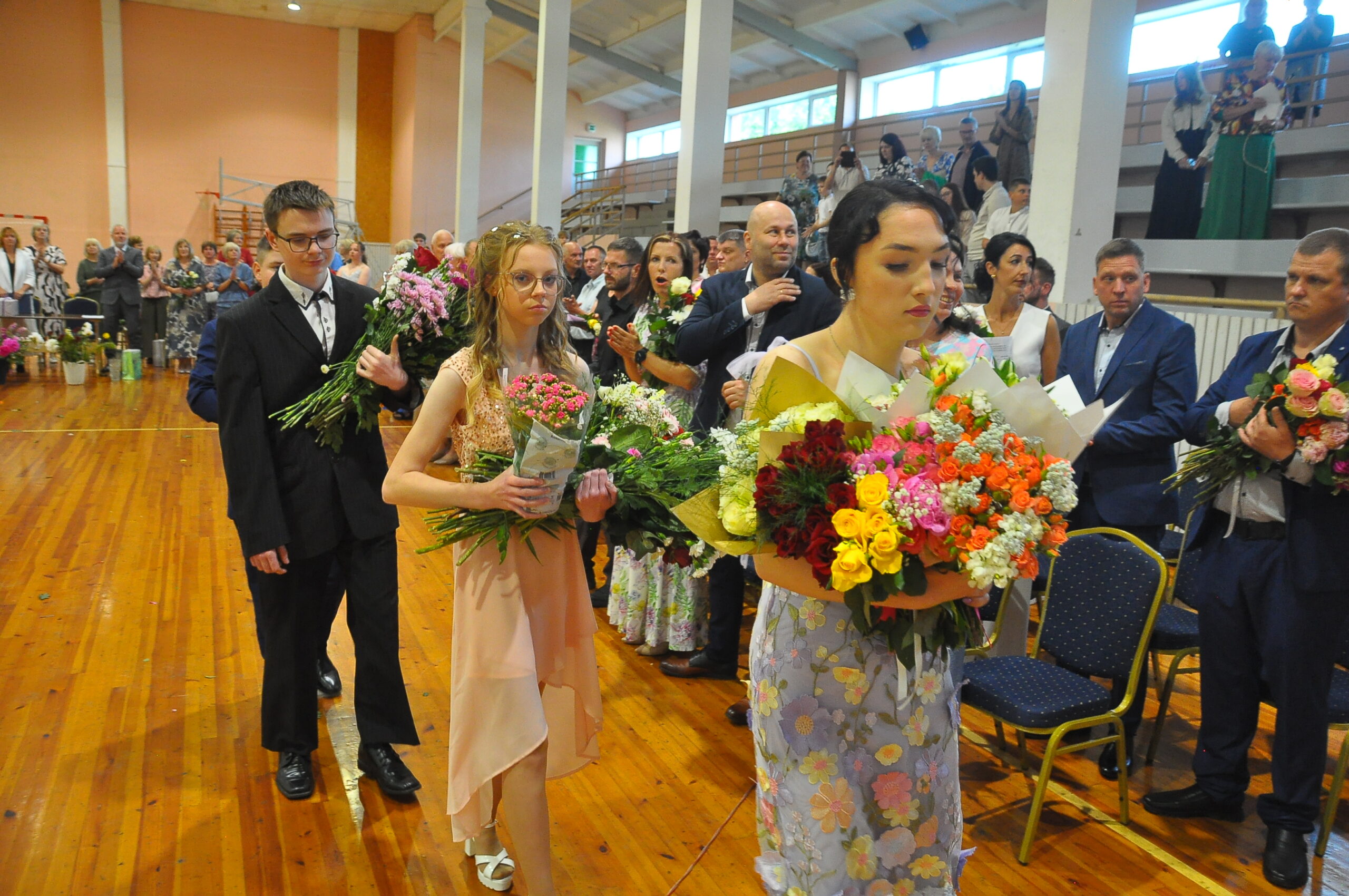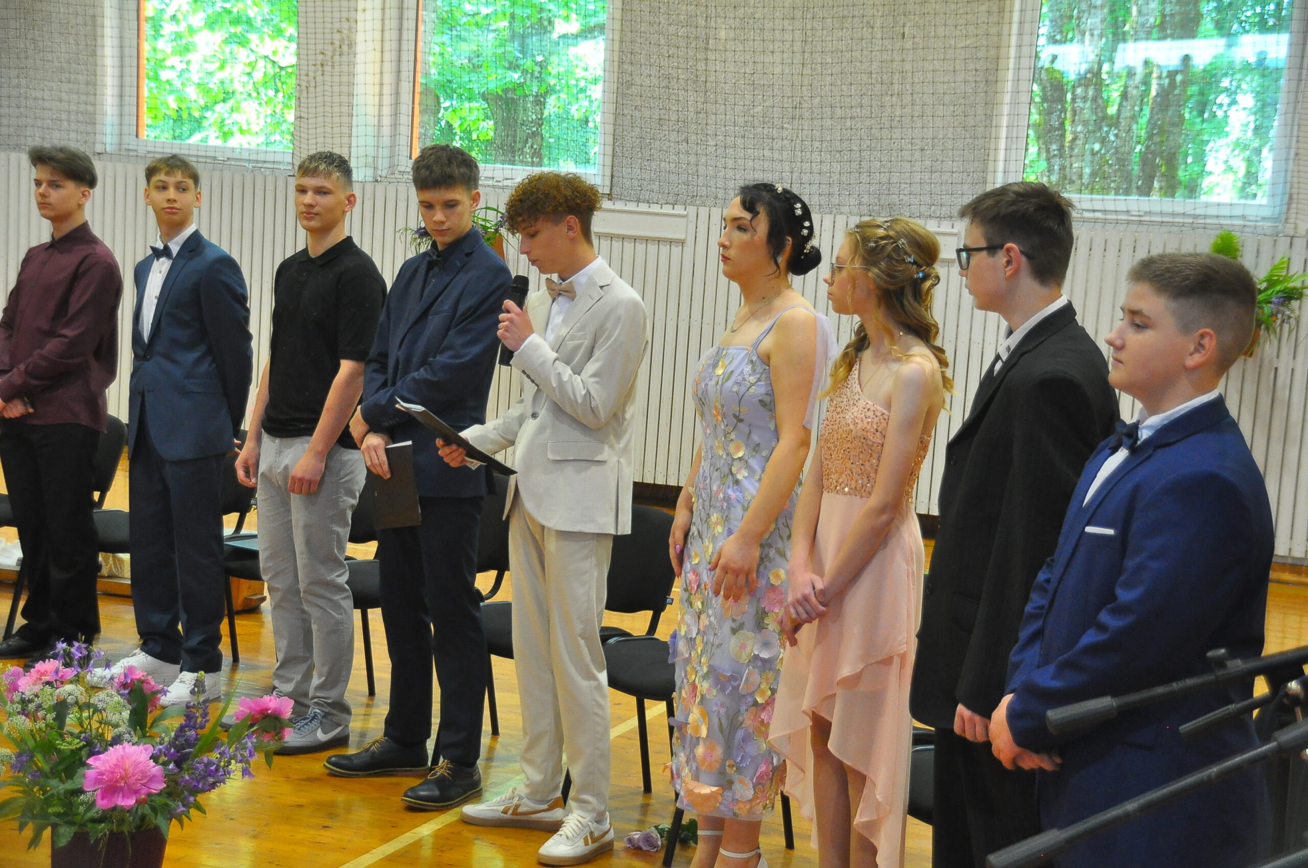 Fotoieskats Vaiņodes vidusskolas 9. klases izlaidumā, kas sestdien, 28. jūnijā, notika Vaiņodes vidusskolas sporta hallē.