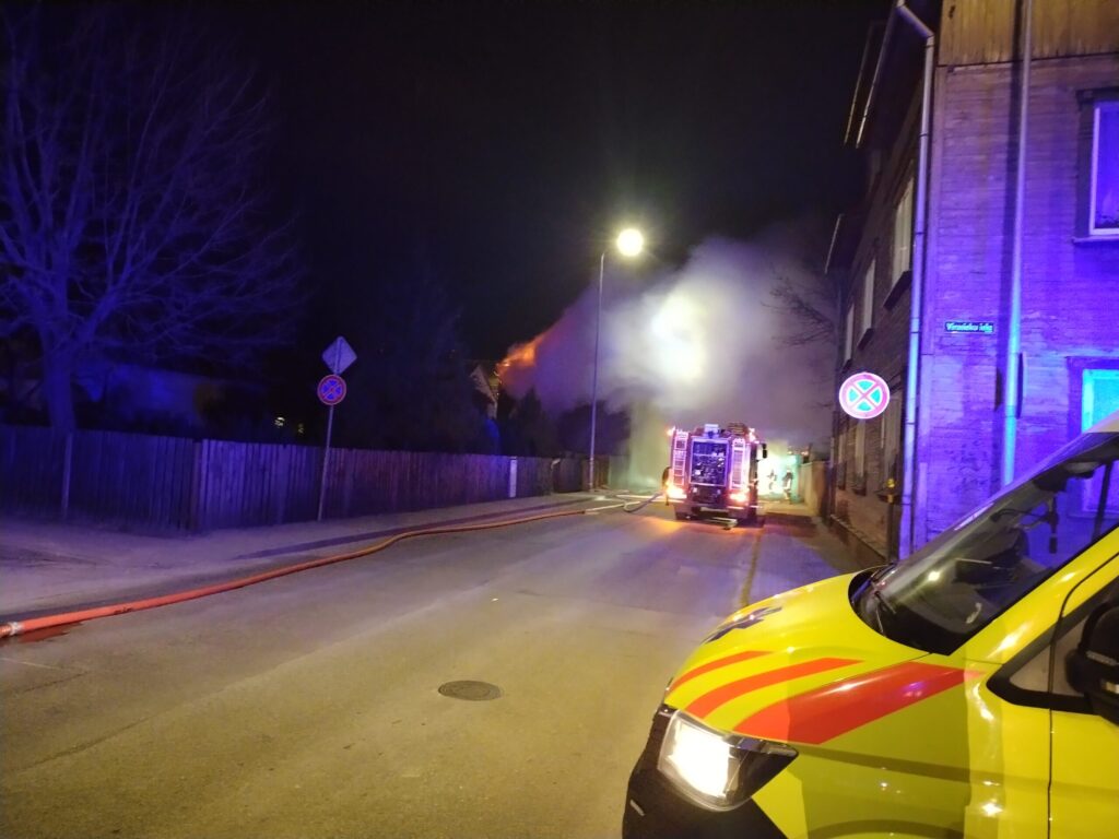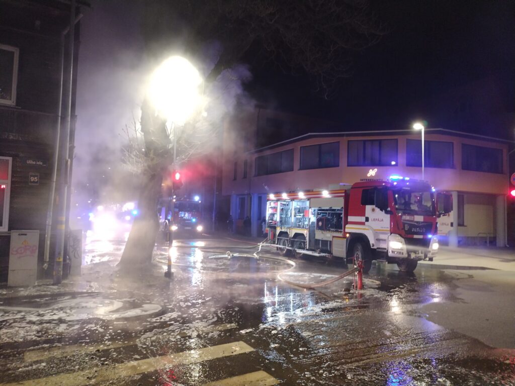 Liepājā šonakt, 3. janvārī, pēc vieniem naktī liela ugunsnelaime notika Uliha ielā 95, kur dega dzīvojamā māja.