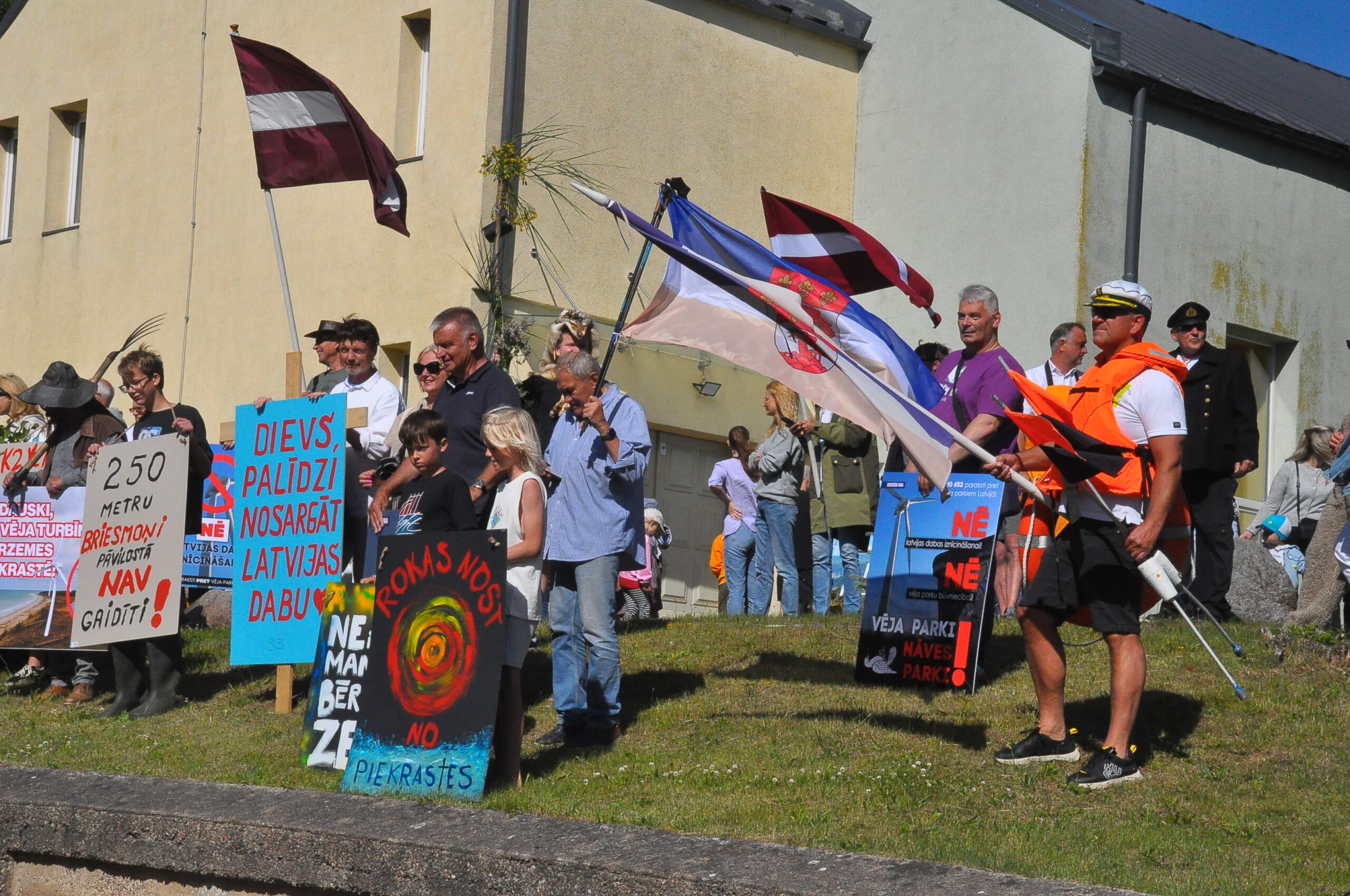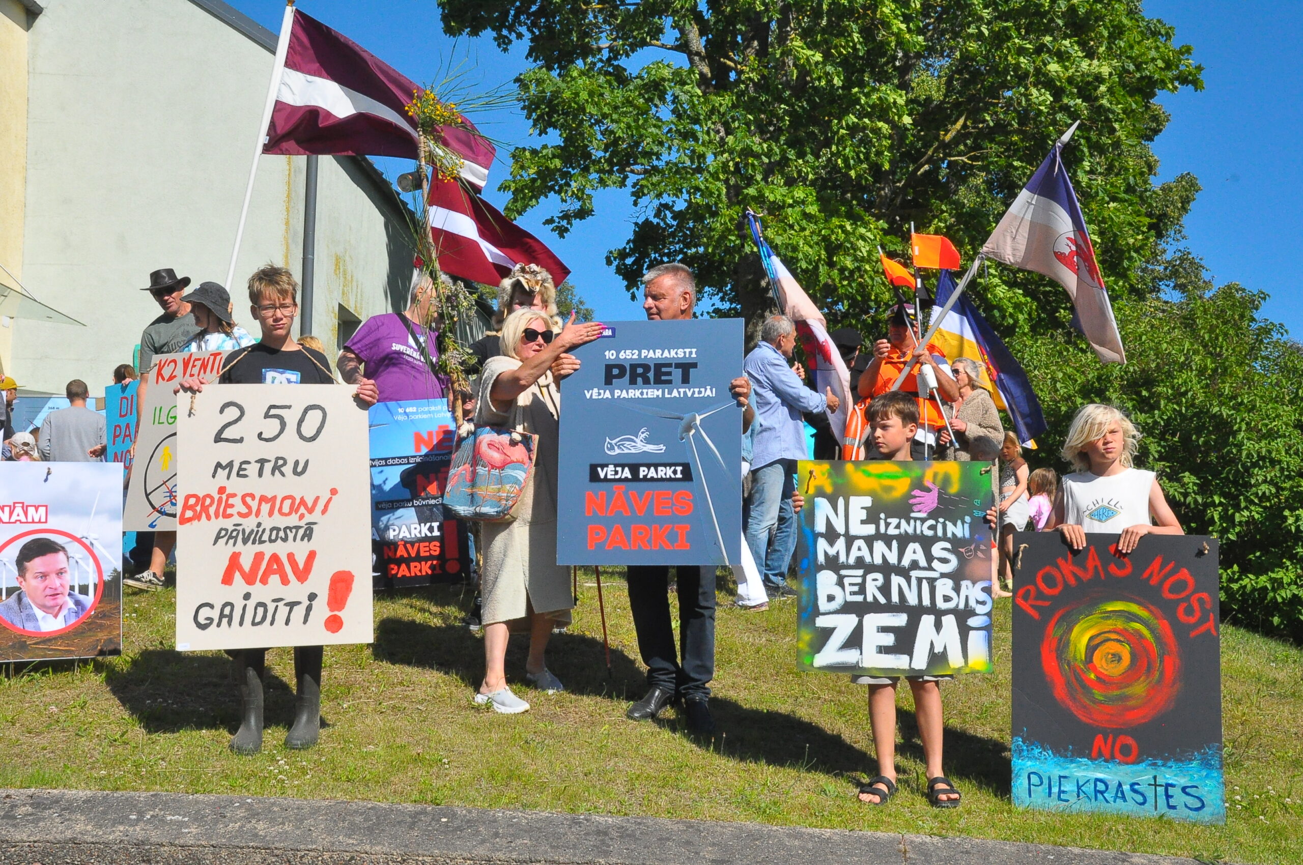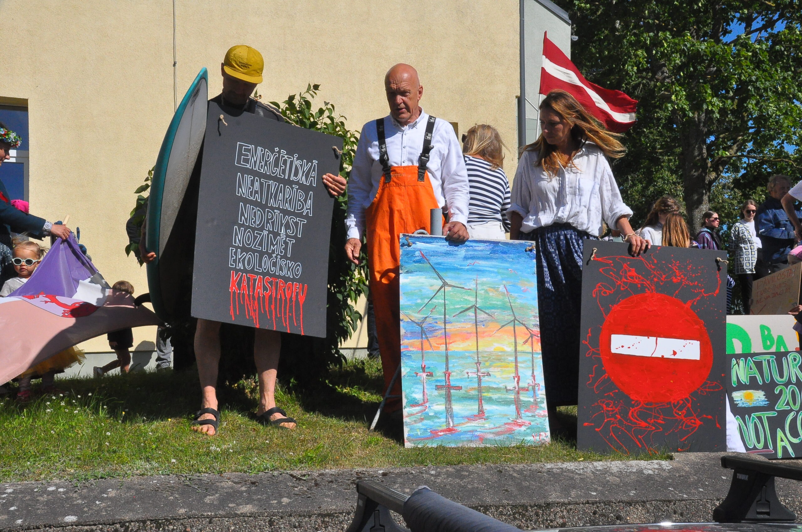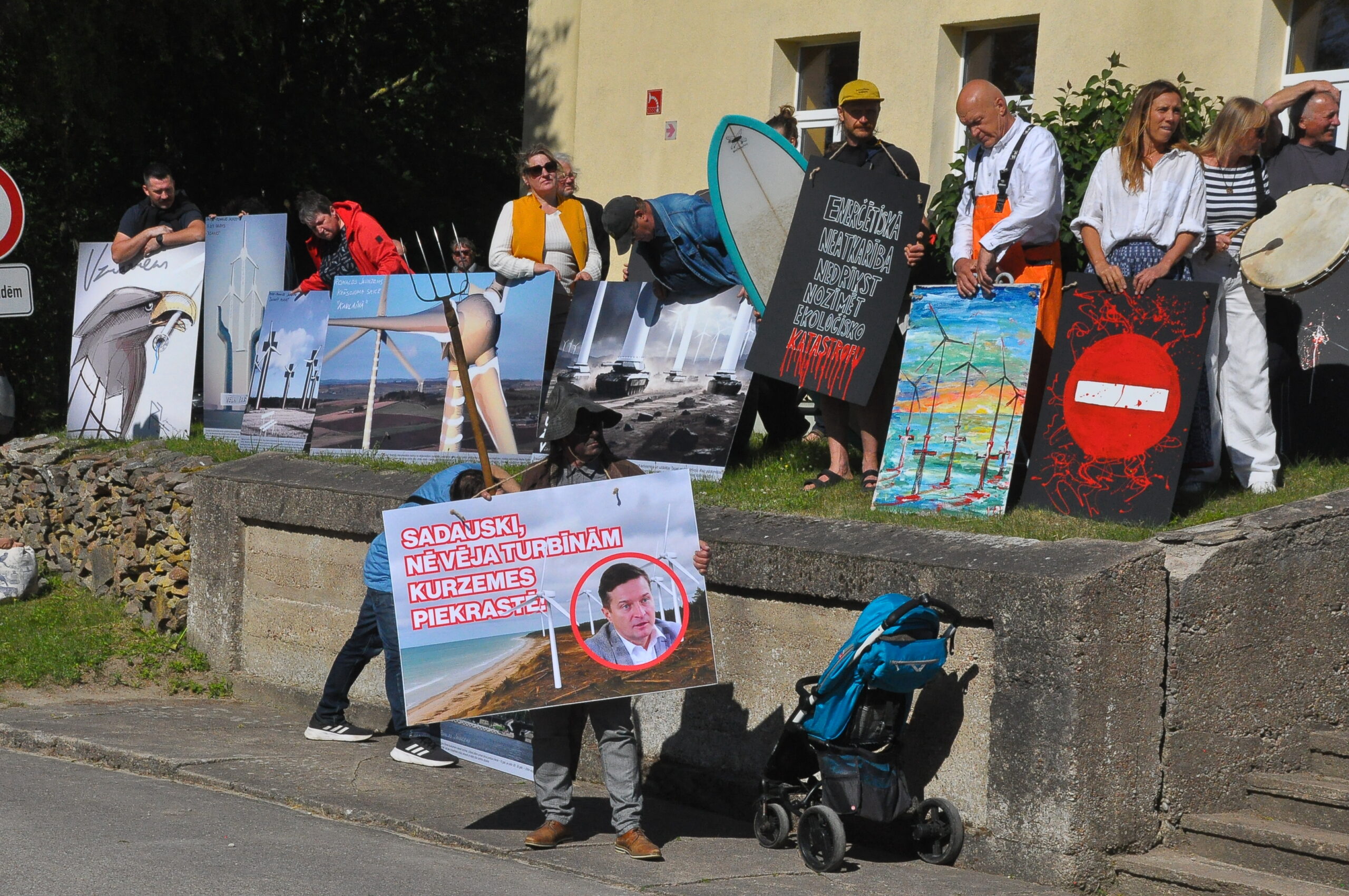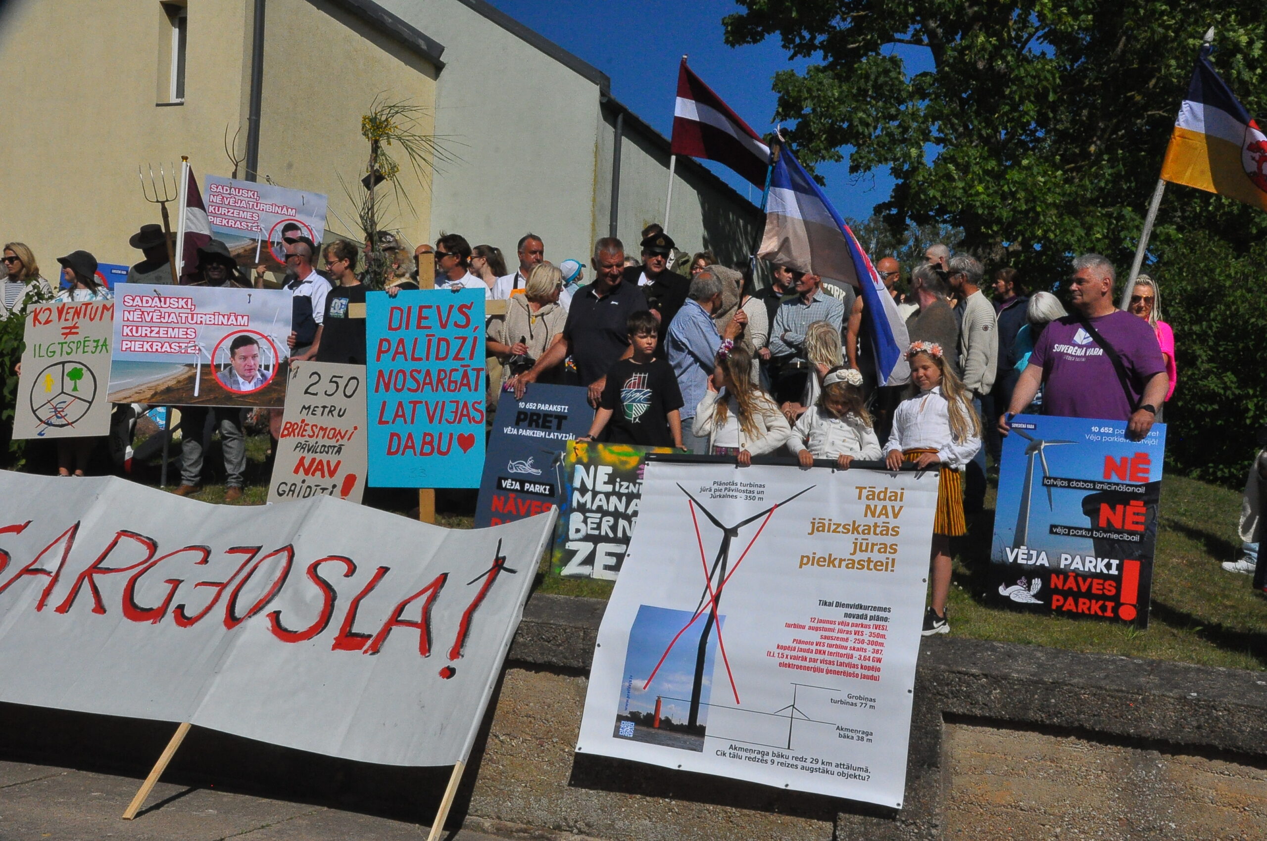 Pirmdien, 30. jūnijā, pie Pāvilostas kultūras namā notika protesta akcija pret plānoto vēja elektrostaciju parku Dienvidkurzemes novada Sakas pagasta mežu teritorijā. Savukārt Pāvilostas kultūras namā un Alsungas kultūras namā pirmdien notika sabiedriskās apspriešanas sanāksmes par trešo pārstrādāto ietekmes uz vidi ziņojumu (IVN) plānotajam vēja elektrostaciju parkam.