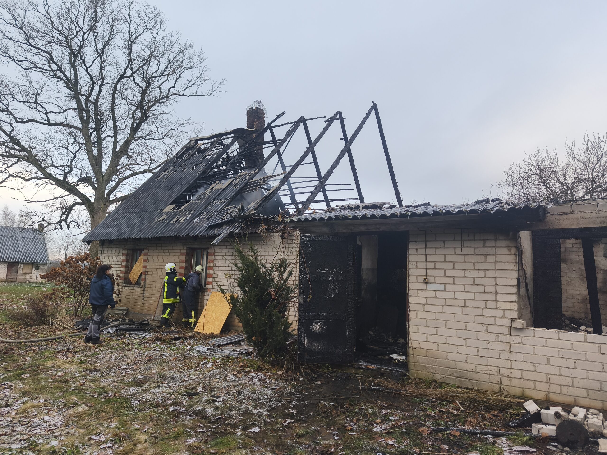 “ReKurZeme” jau rakstīja, ka pirmdien pulksten 19.56 saņemts izsaukums uz Dienvidkurzemes novada Rucavas pagastu, kur dega vienstāva mājas jumts 250 m2 platībā un pirmais stāvs 180 m2 platībā. Pulksten 00.04 ugunsgrēks likvidēts.