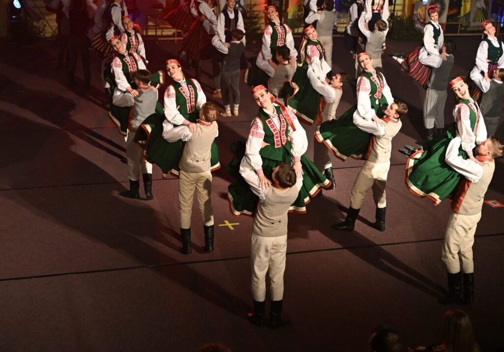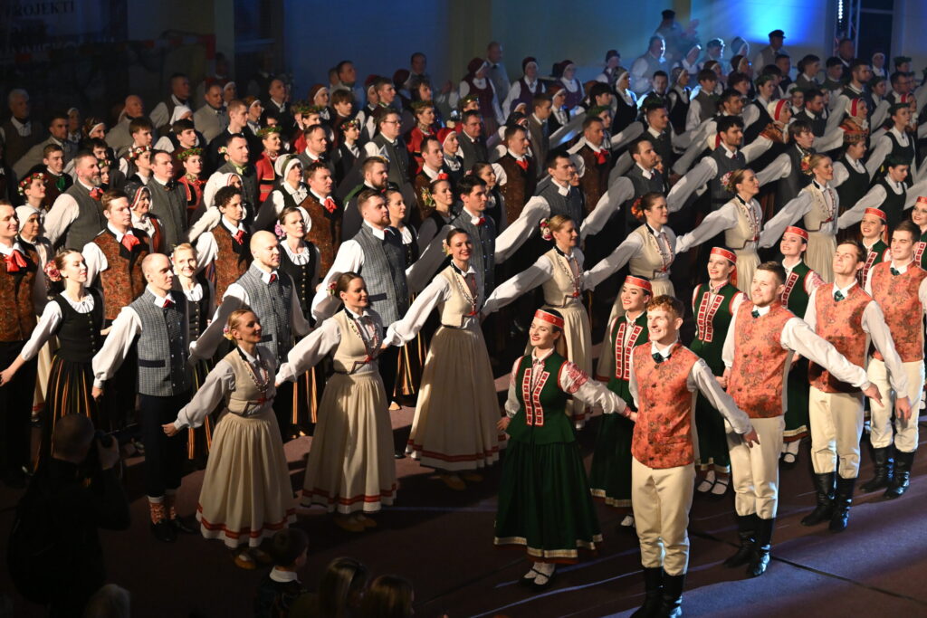 Koncertā bija iespēja redzēt arī 12 dejas, kas nākamā gada 23. maijā Liepājā tiks dejotās otrajos Jauniešu deju svētkos.
