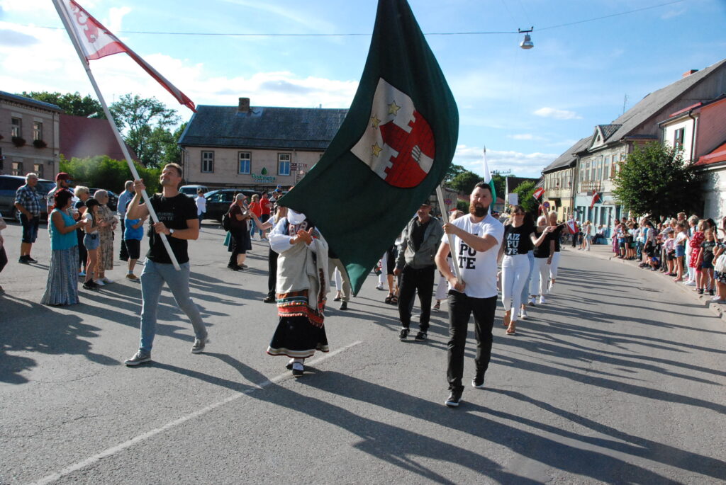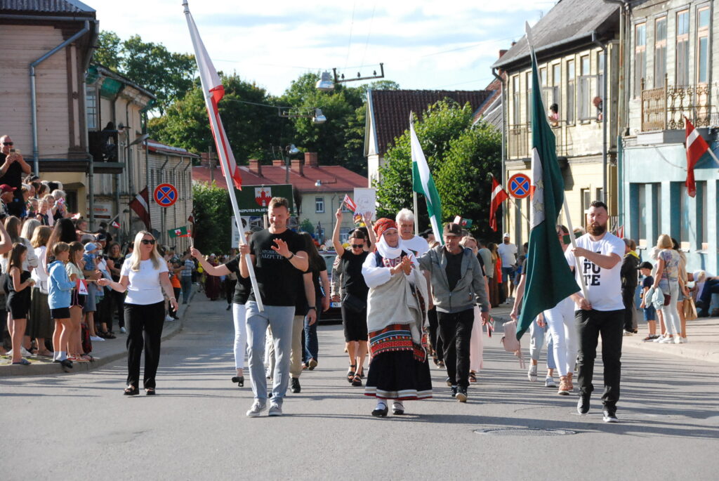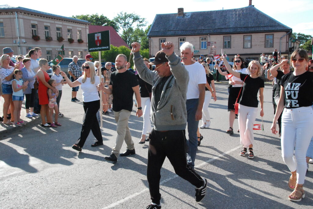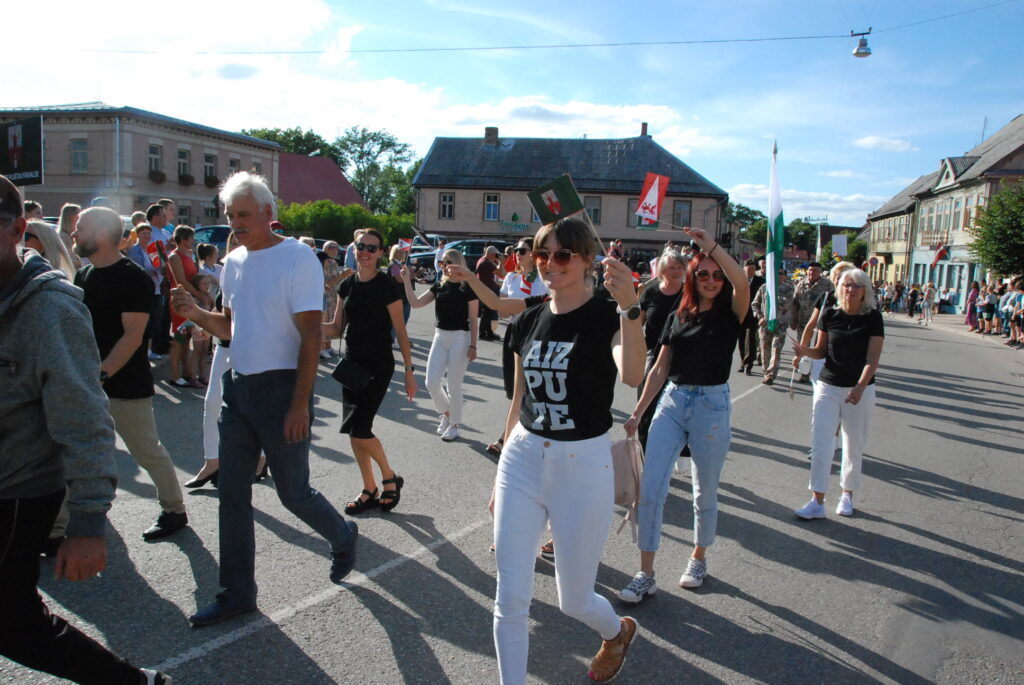 Aizputnieki gājienā devās cauri visai pilsētai līdz Tirgus laukumam, kur gājiena noslēgumā bija Dienvidkurzemes novada domes vadītāja Aivara Priedola un Aizputes pilsētas pārvaldes vadītāja Arta Čandera uzruna.