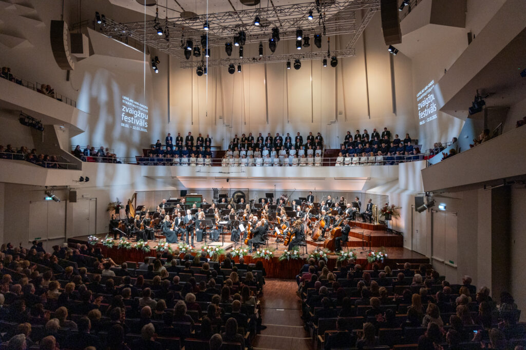 Zvaigžņu festivāla noslēguma koncertā uz koncertzāles “Lielais dzintars” skatuves Liepājas Simfoniskajam orķestrim diriģenta Aināra Rubiķa vadībā pievienojās Valsts akadēmiskais koris “Latvija”, Liepājas Tautas mākslas un kultūras centra jauktie kori “INTIS” ansamblis un “Laiks”, RTU Liepājas akadēmijas sieviešu koris “Atbalsss”, kā arī S – starptautisks Kordzisle. tenors Iraklijs Kahidze un rumāņu baritons Bogdans Baču.
