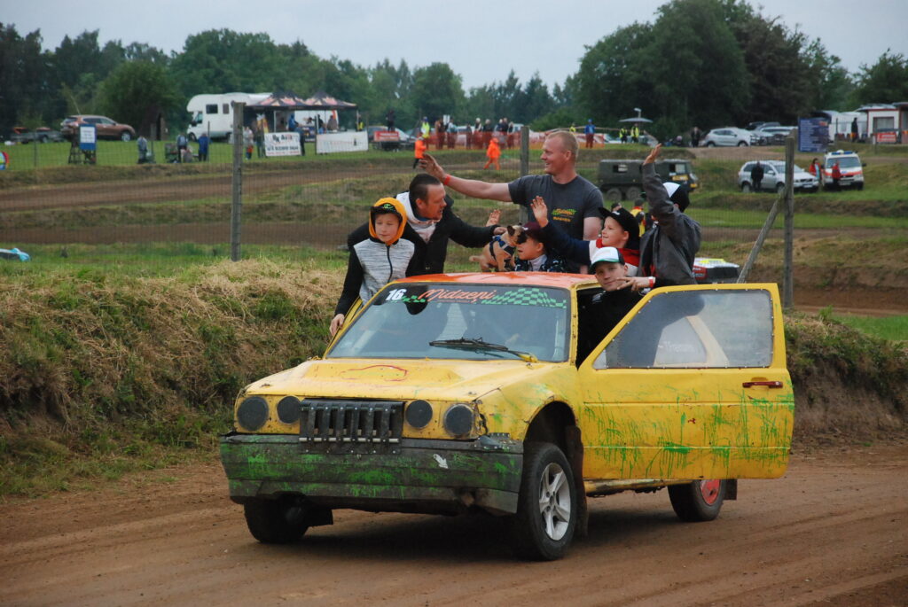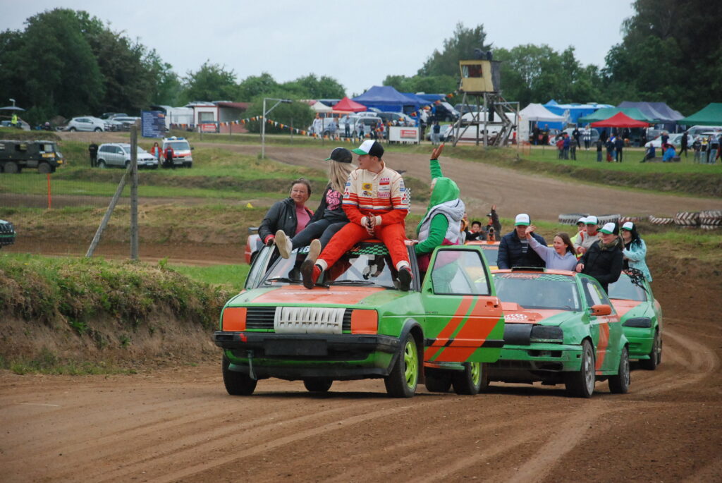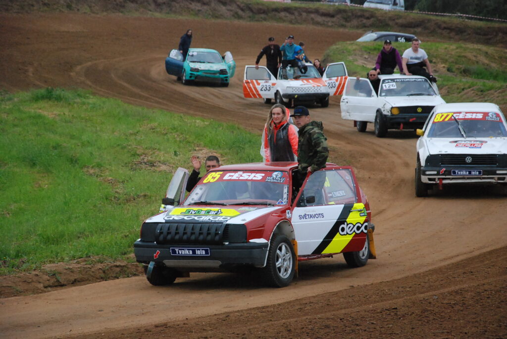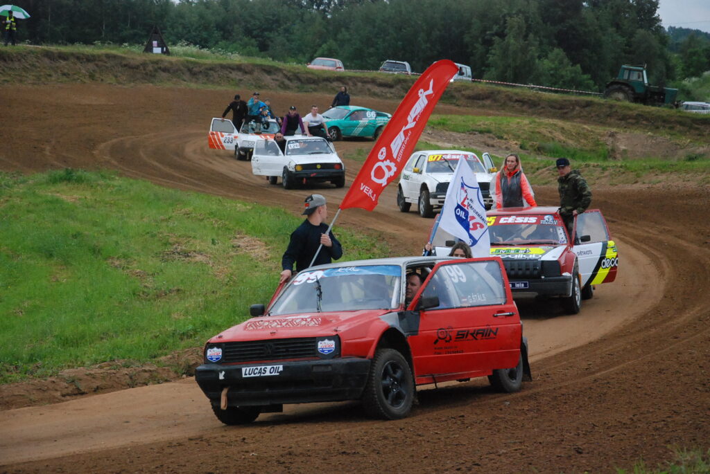 Fotogalerija no autosportistu parādes brauciena Vecpils autotrasē, kur sestdien, 18. jūnijā, notika folkreisa Vasaras kausa izcīņas un Krosa komisijas autokrosa kausa izcīņas trešais posms.