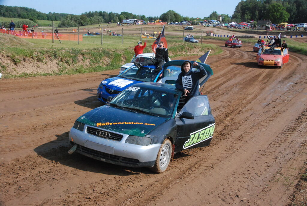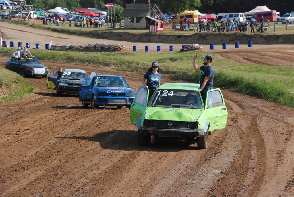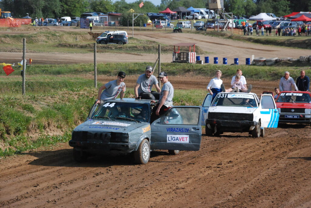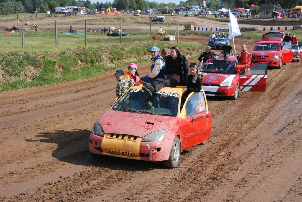 Sestdien, 10. jūnijā, Vecpils autotrasē Latvijas Automobiļu federācijas folkreisa Vasaras kausa izcīņas un Krosa komisijas autokrosa kausa izcīņas trešais posms sākās ar krāšņusacensību atklāšanas braucienu.