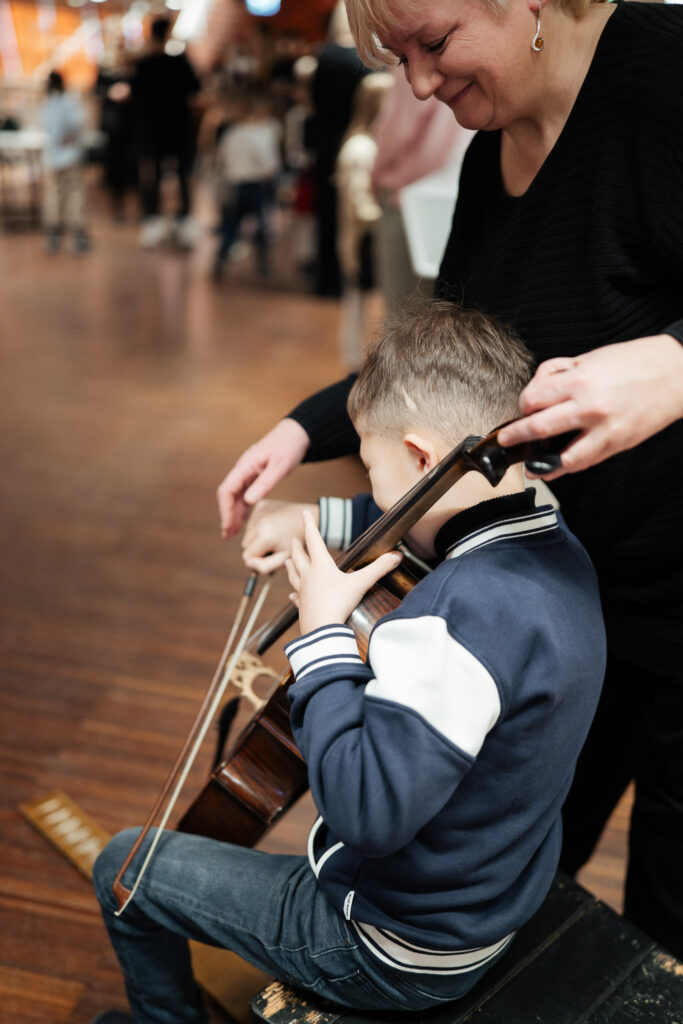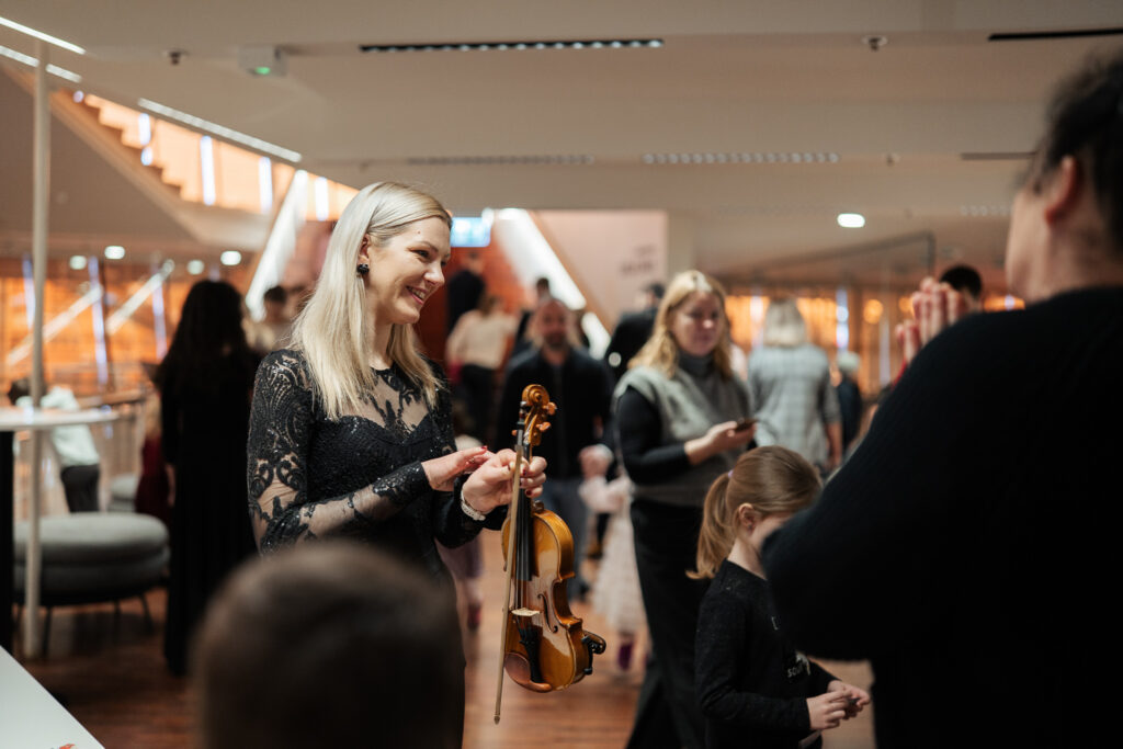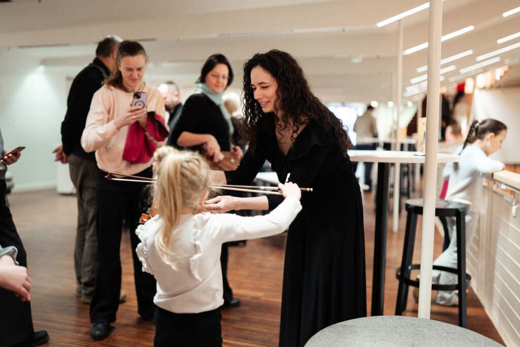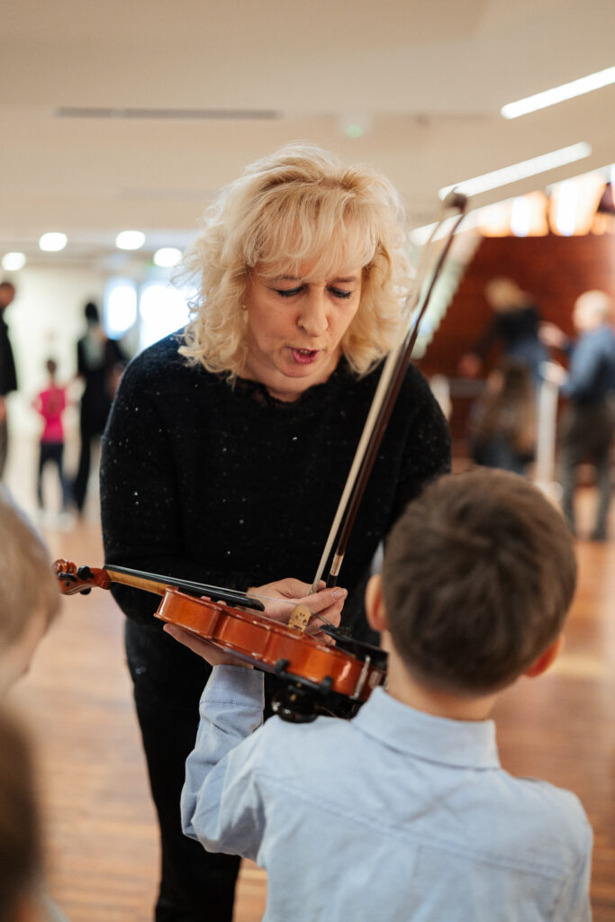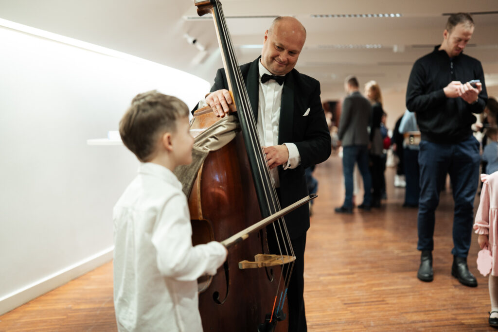 Tā pat kā jau ierasts citās reizēs – pirms koncerta mazajiem klausītājiem bija arī iespēja tuvāk iepazīt orķestra instrumentus un pašiem tos izmēģināt.