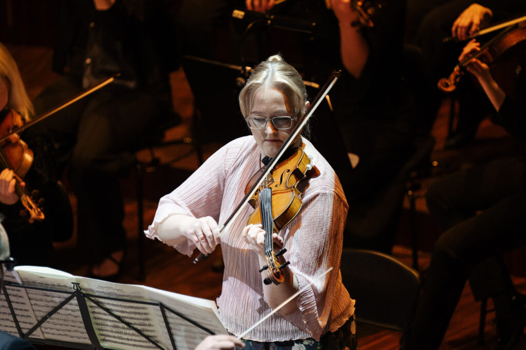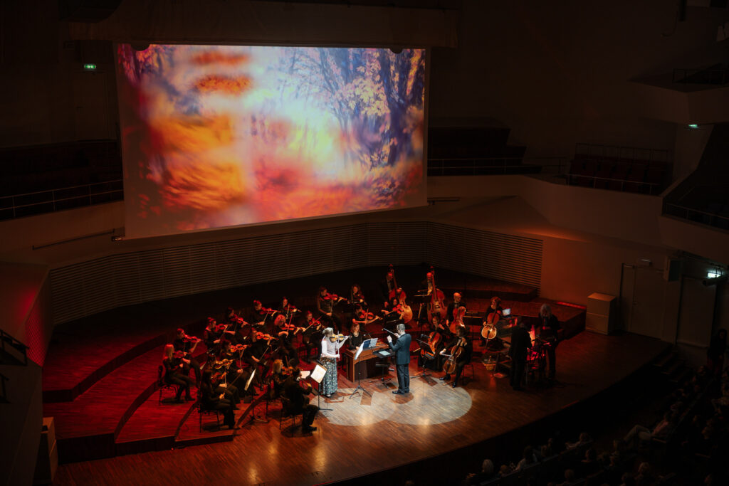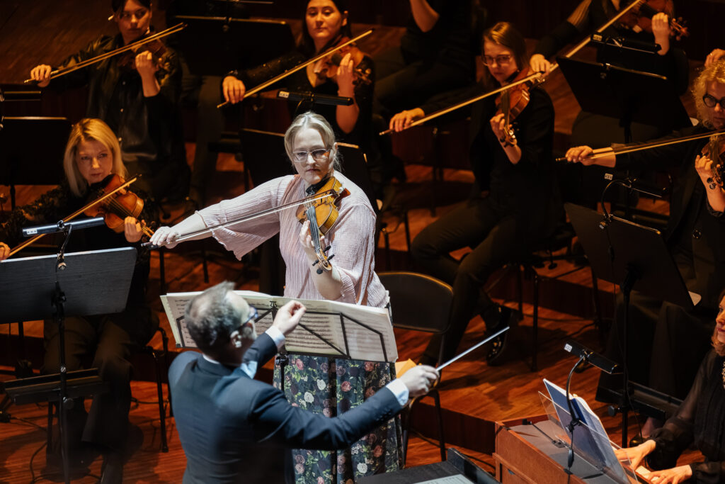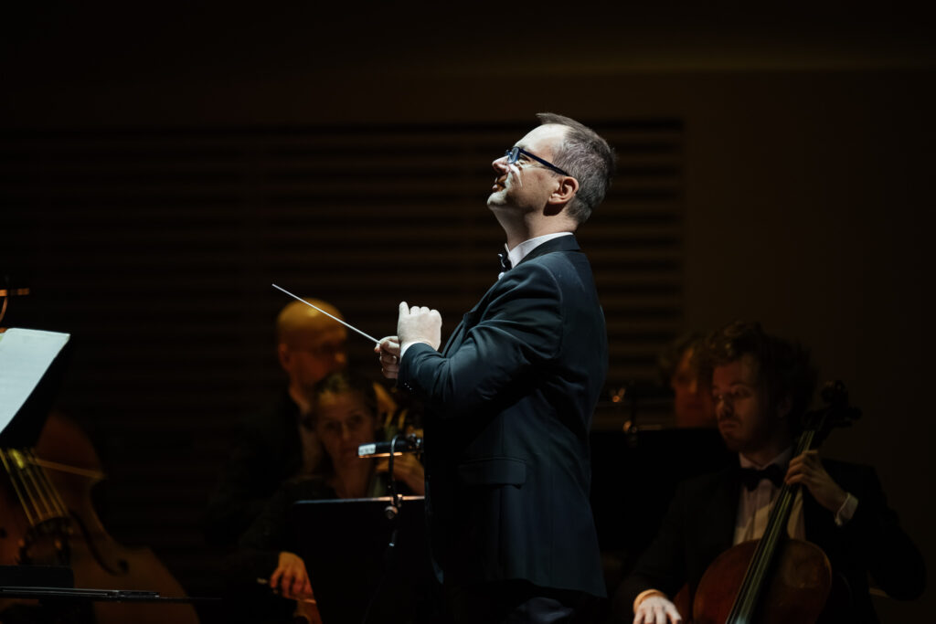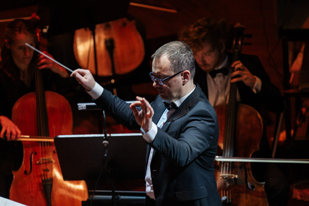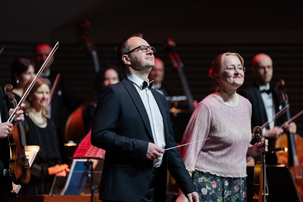 Pie Liepājas Simfoniskā orķestra diriģenta pults šajā koncertā stājās Reinis Lapa, savukārt solo atskaņoja orķestra pirmā vijole – Līga Baltābola.