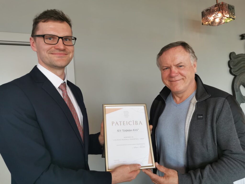 Nominācijā “Lielākais nodokļu maksātājs – 2020” Pateicību saņēma : SIA “RK Metāls” un SIA “Liepājas RAS”.