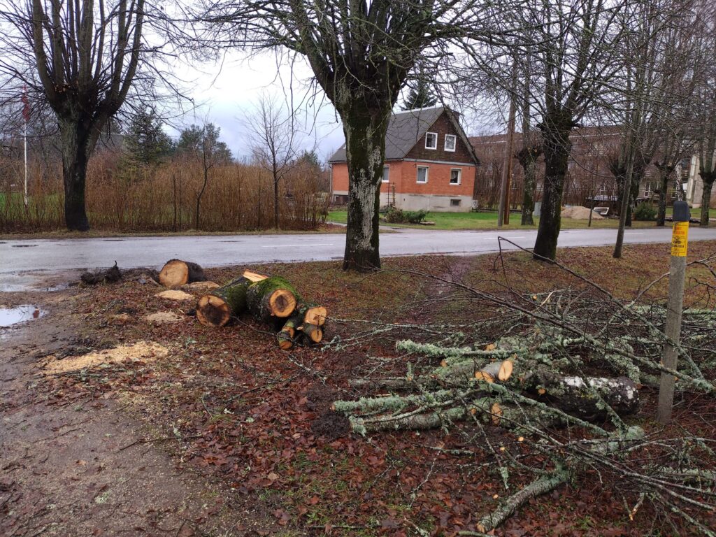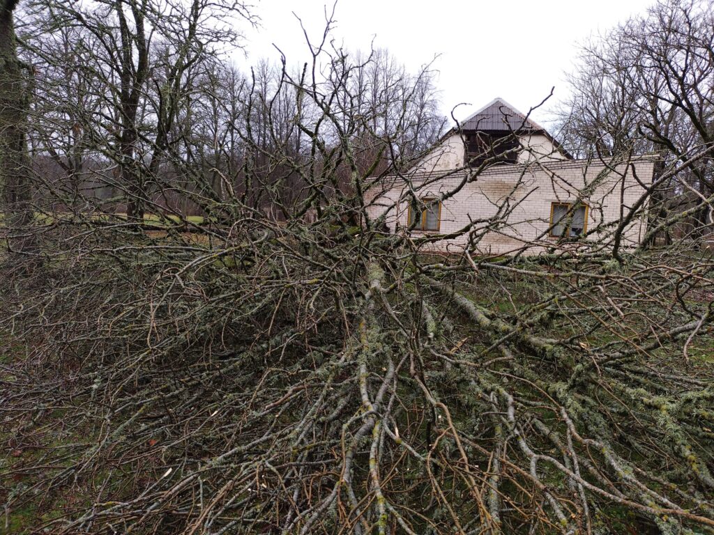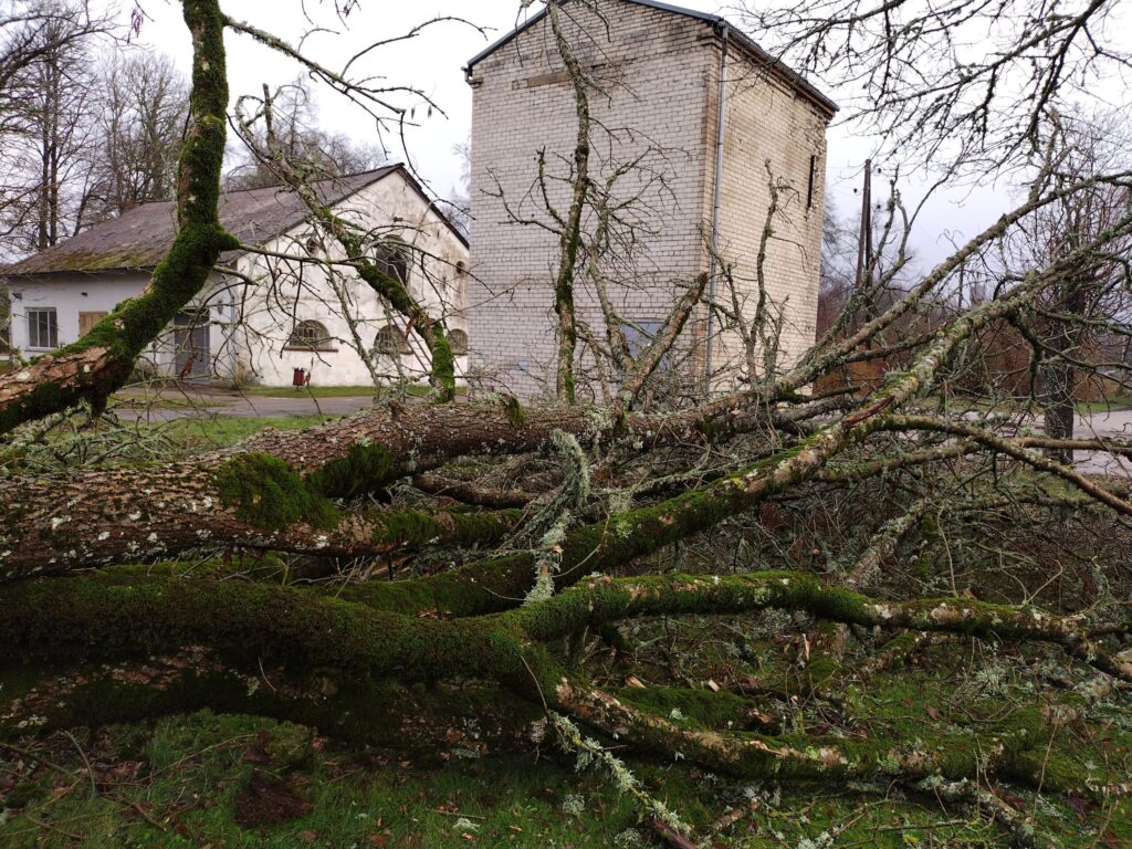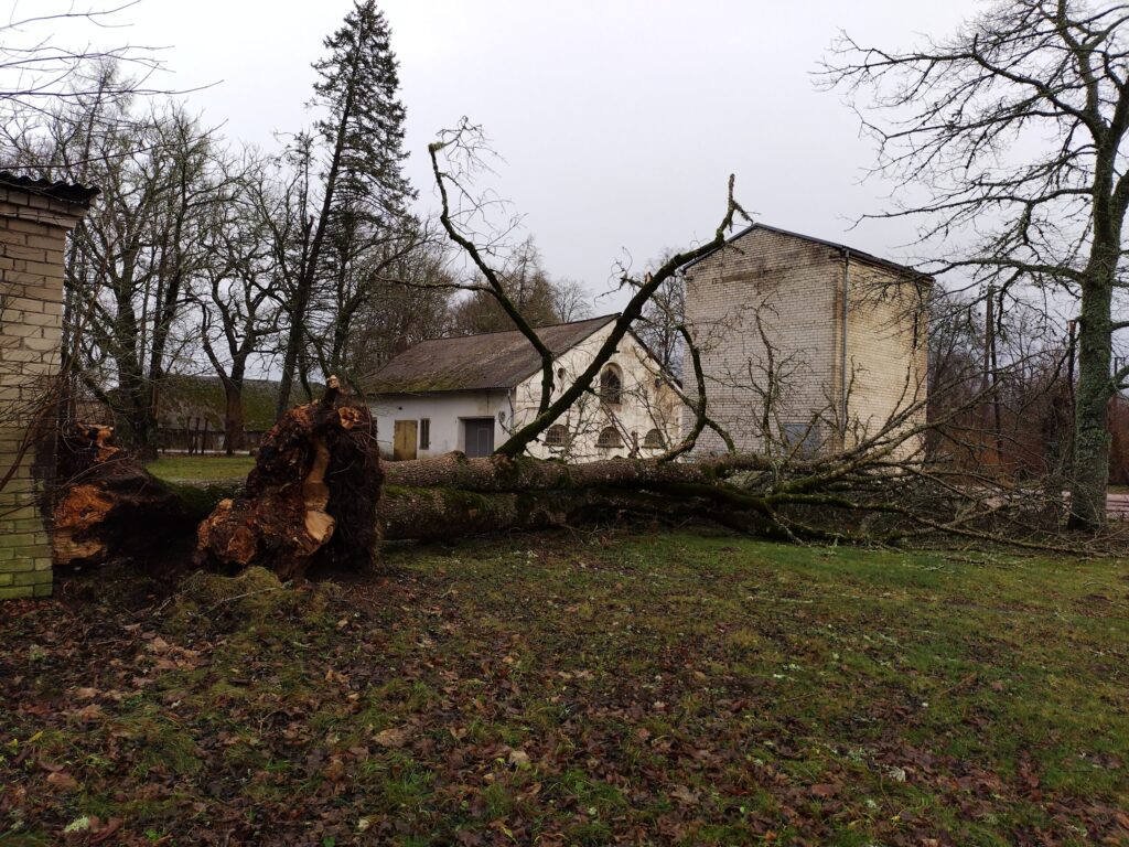 Pirms Ziemassvētkiem spēcīgā vējā pamatīgi cietis Cīravas centrs, kur nolauzti vairāki koki.
