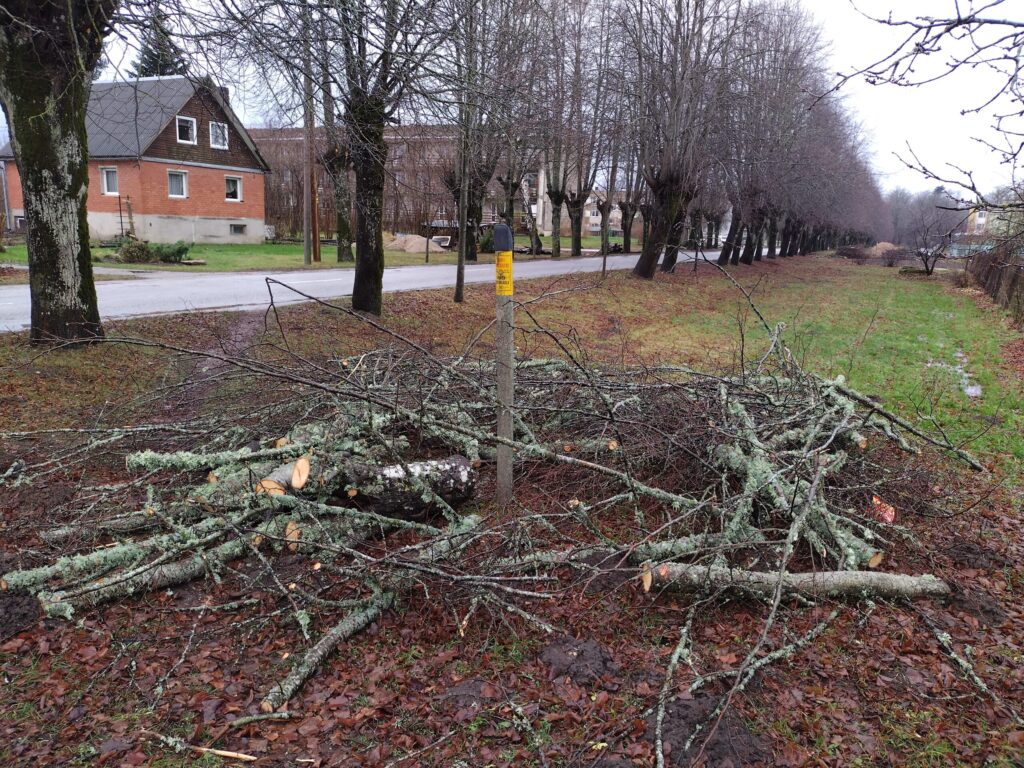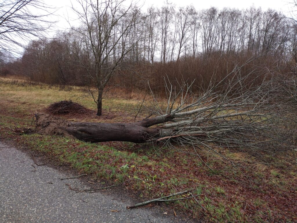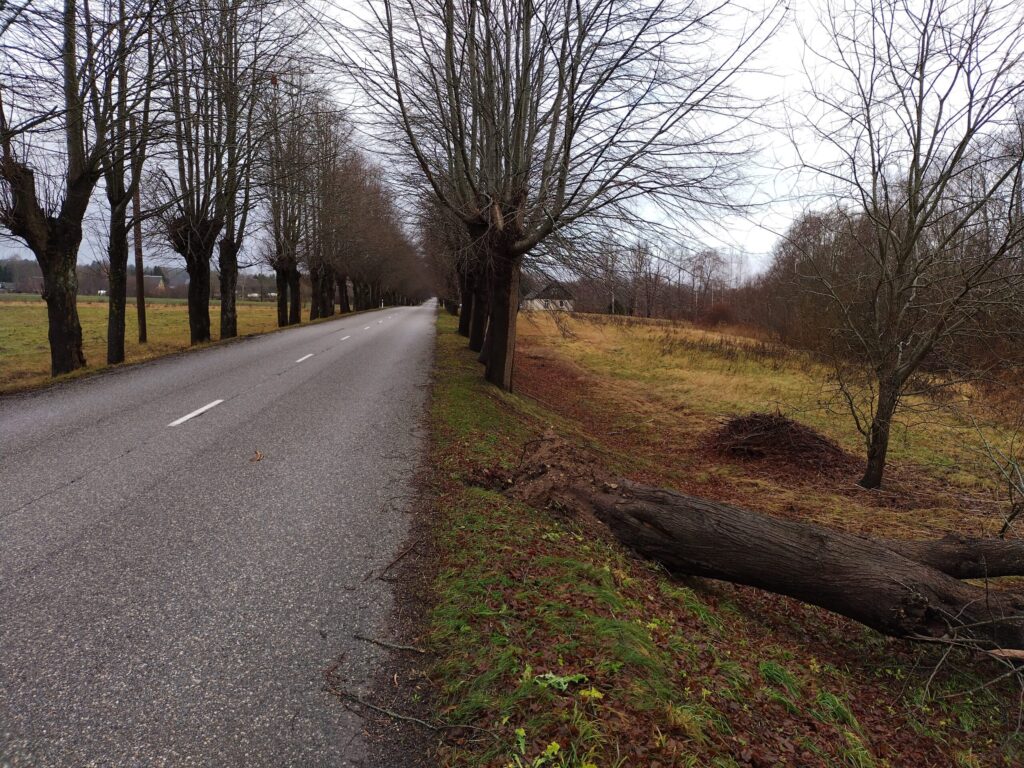 Vējš bija tik spēcīgs, ka izgāzis pat piecus kokus liepu alejā, kas ved iekšā Cīravā no Aizputes puses.