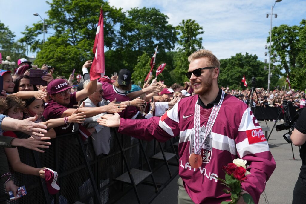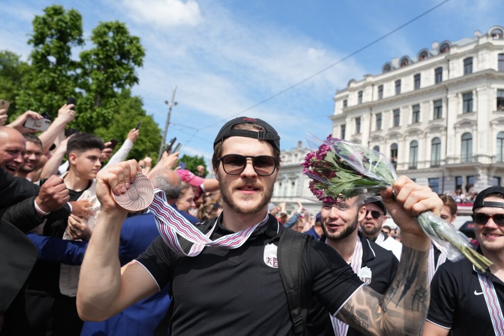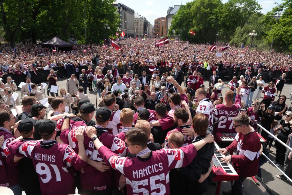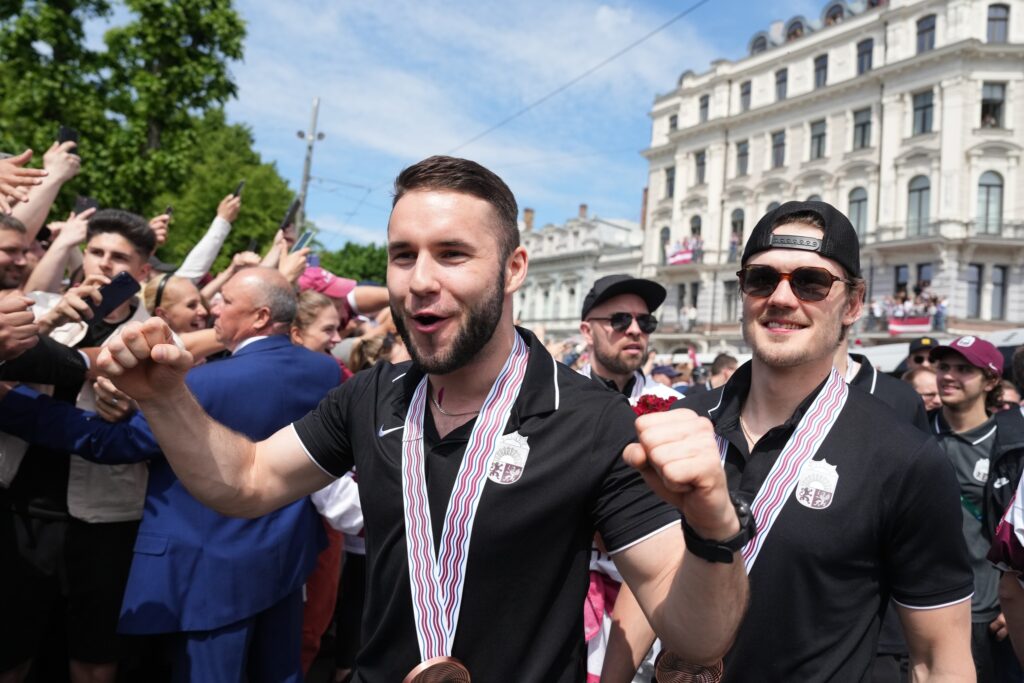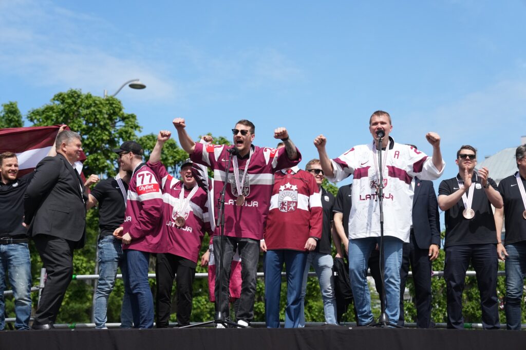 Pirmdien desmitiem tūkstoši cilvēku pie Brīvības pieminekļa Rīgā ar skaļām ovācijām sagaidīja Latvijas hokeja izlasi, kas aizvadītajā pasaules čempionātā izcīnīja bronzas medaļas.