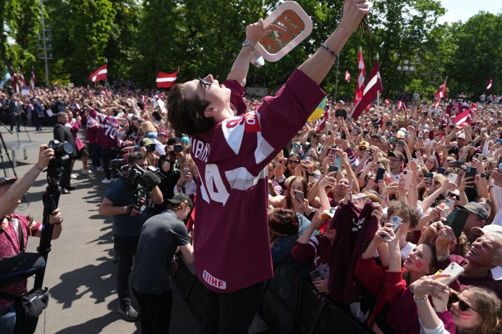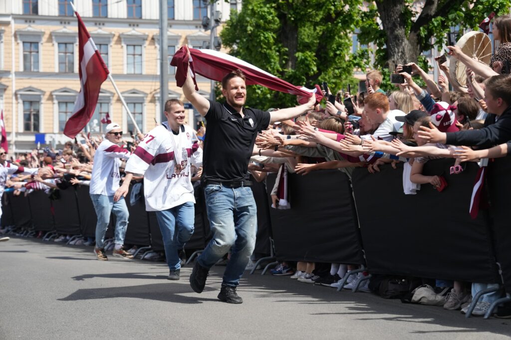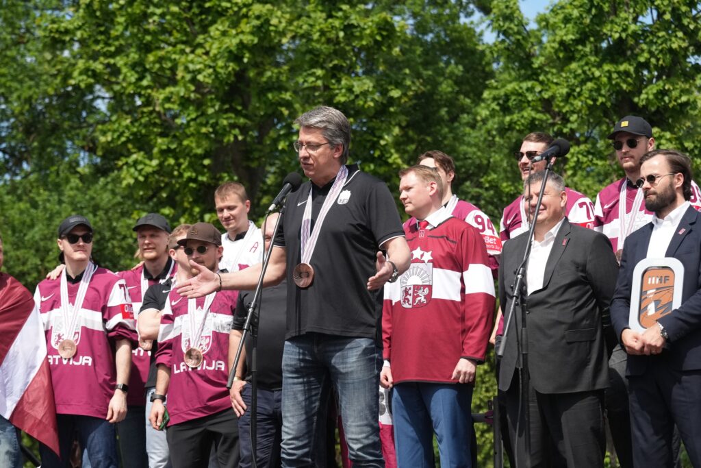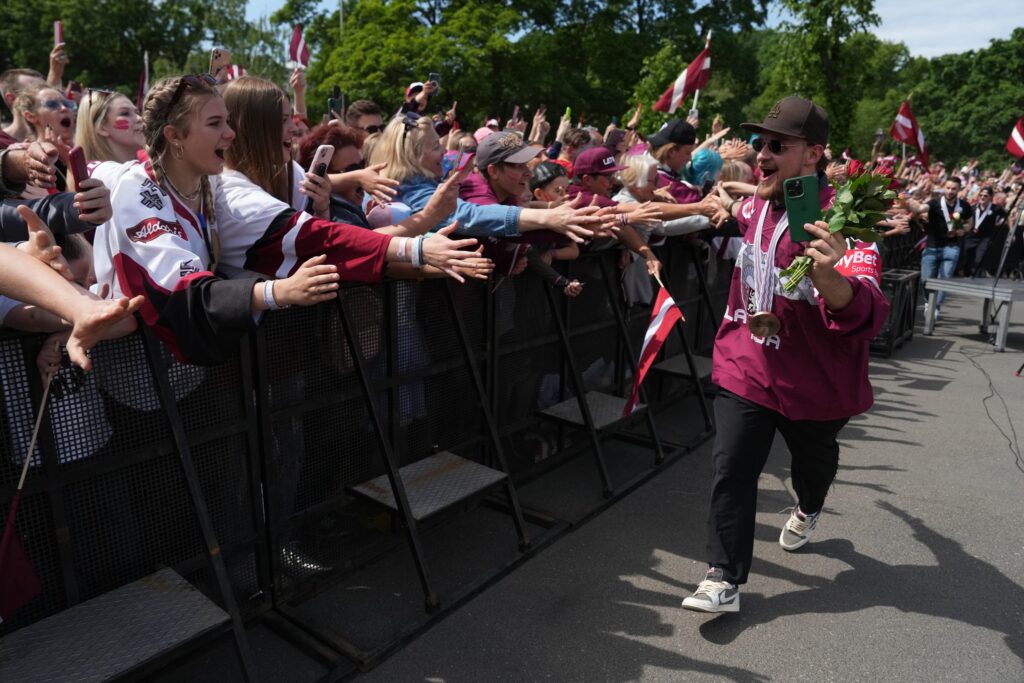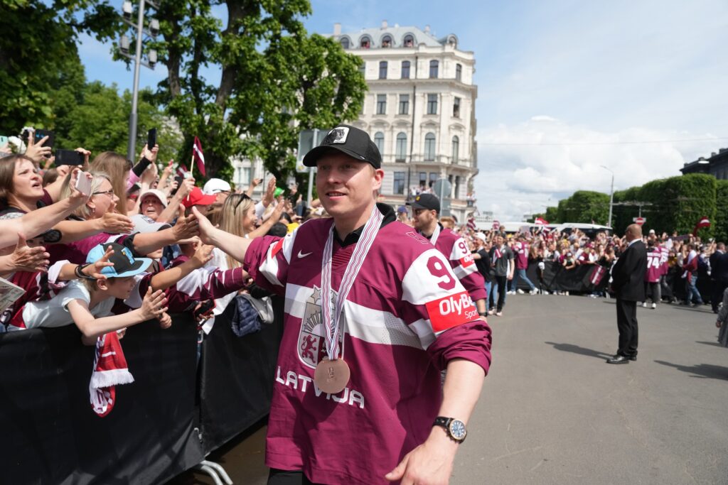 Pirmdien desmitiem tūkstoši cilvēku pie Brīvības pieminekļa Rīgā ar skaļām ovācijām sagaidīja Latvijas hokeja izlasi, kas aizvadītajā pasaules čempionātā izcīnīja bronzas medaļas.