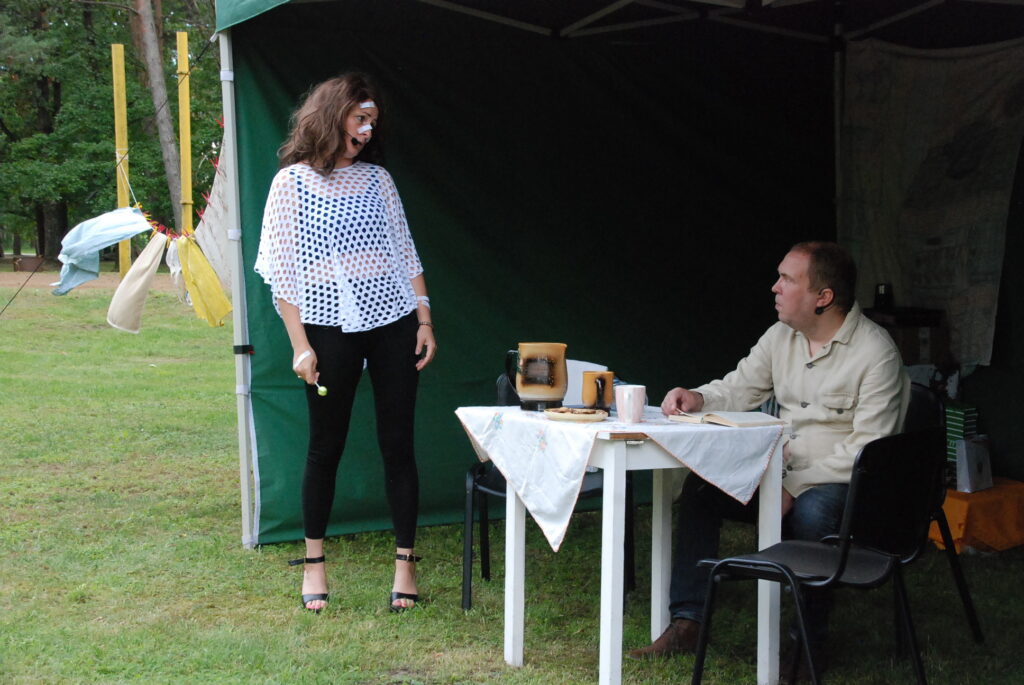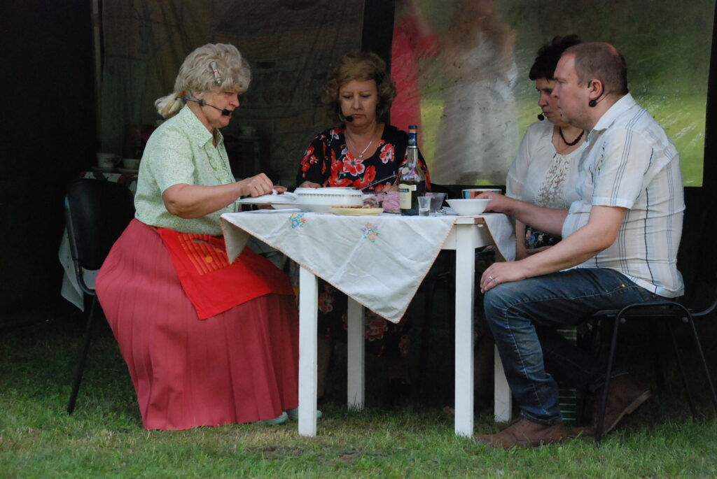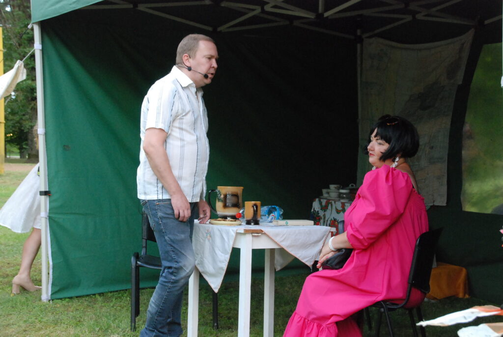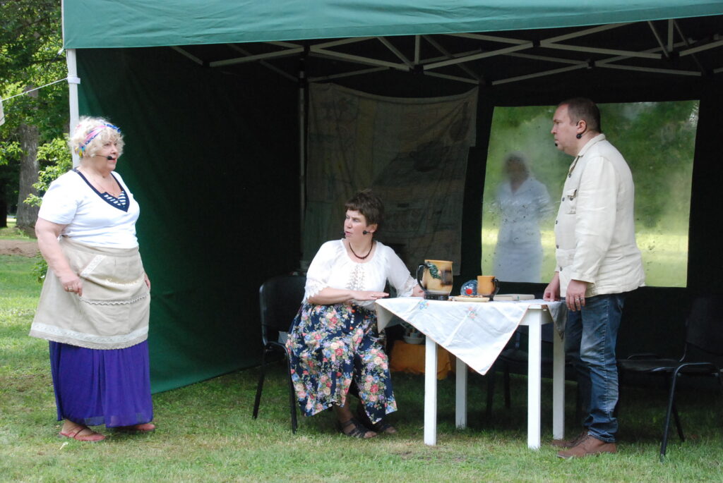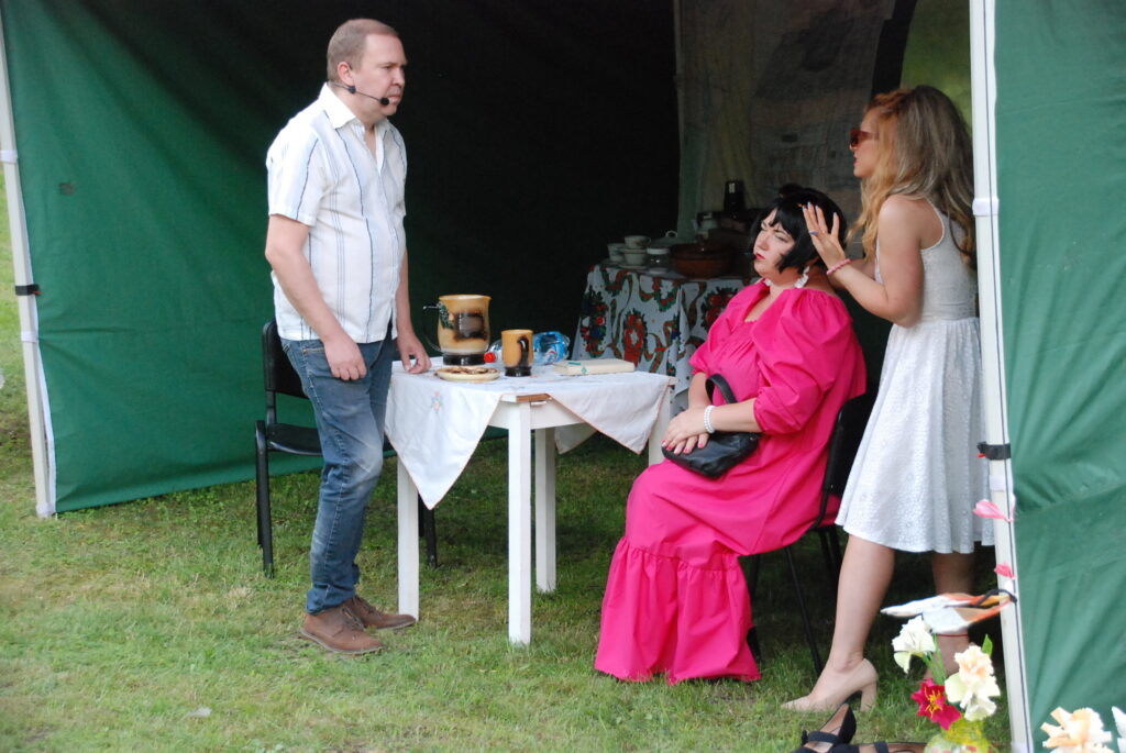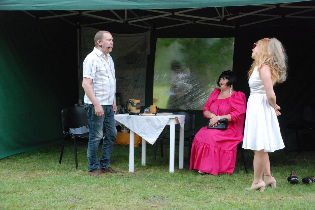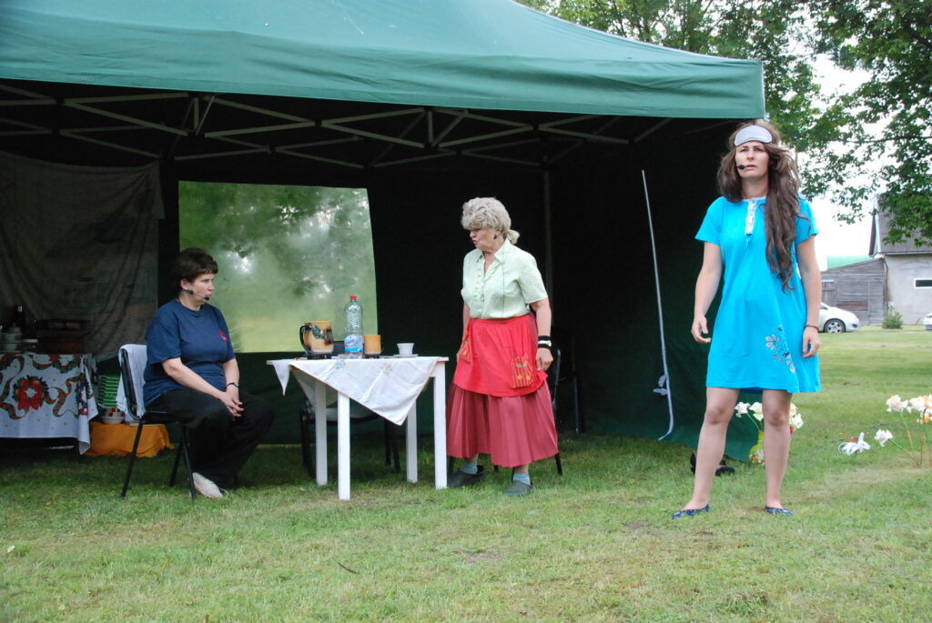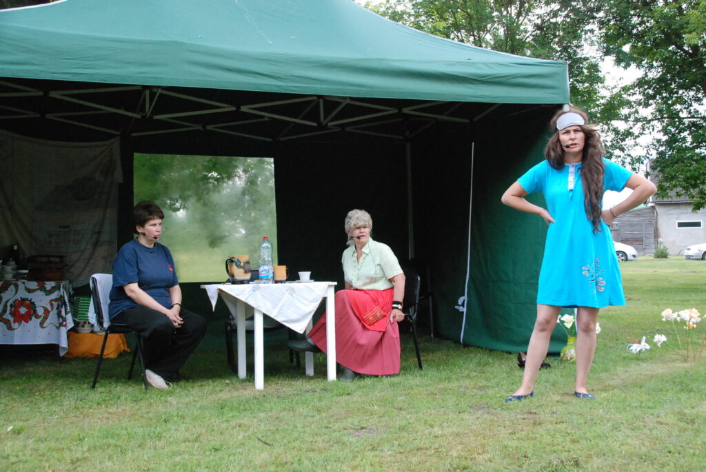Piektdien, 15. jūlija, pēcpusdienā sākās Dubeņu svētki, kuros laukumā pie bibliotēkas Dubeņu amatierteātris spēlēja izrādi “Viņa ir īstā, muterīt!”.