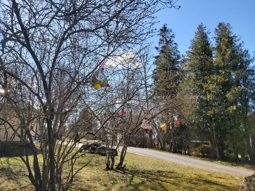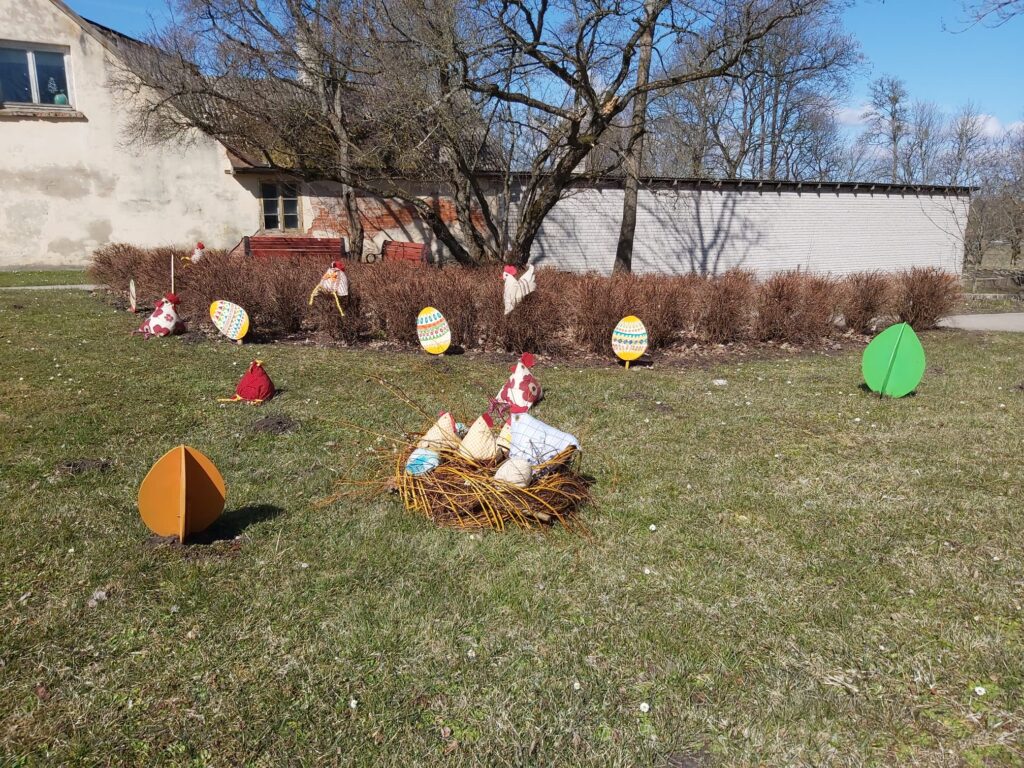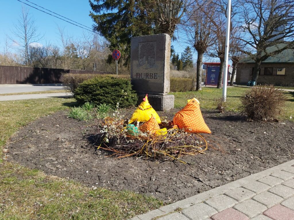 Lieldienu brīvdienās ir vērts doties uz Durbi, lai Latvijas mazāko pilsētu izstaigātu un priecātos par Durbes kultūras nama rokdarbu pulciņa dalībnieču veidotājiem Lieldienu rotājumiem.