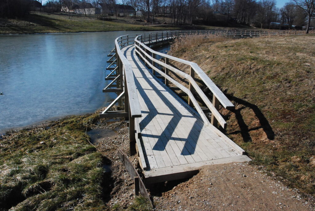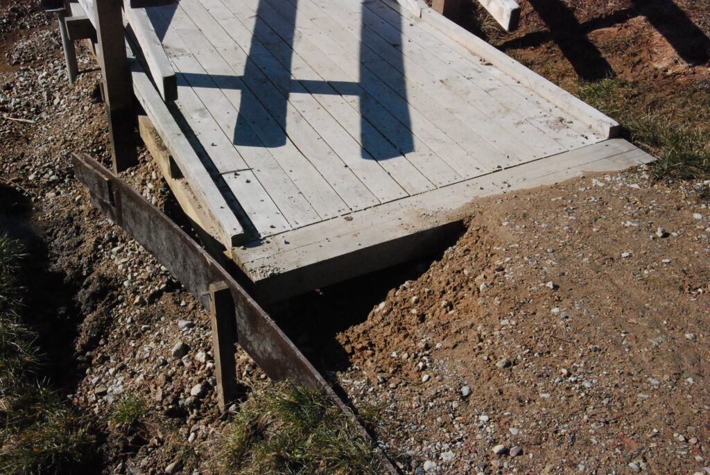 Durbes pilskalna takā pāri Durbes dīķim izveidotās koka laipas vienā galā izveidojies bīstams izskalojums, kur šobrīd īpaši uzmanīgiem jābūt riteņbraucējiem, lai izvairītos no kritiena.