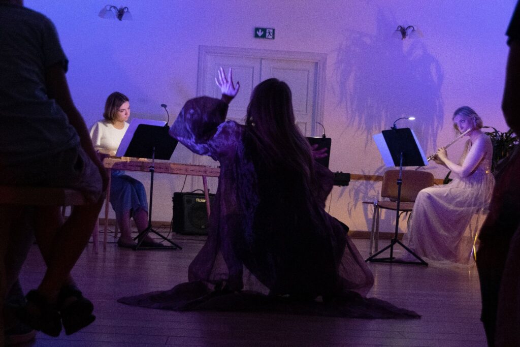 Sestdien, 3. augustā, Dienvidkurzemes festivāls “Rimbenieks” klausītājus veda uz Vērgales muižu, aicinot klausītājus viesoties Fransuā Kuperēna, Kloda Debisī un Pētera Vaska mūzikas pasaulē, ko kopā virtuozā saspēlē ar flautisti Agniju Ābramu, koklētāju Līgu Griķi un pianisti Madaru Kalniņu deju rakstā uzzīmēja Beatrise Anda Ozoliņa.