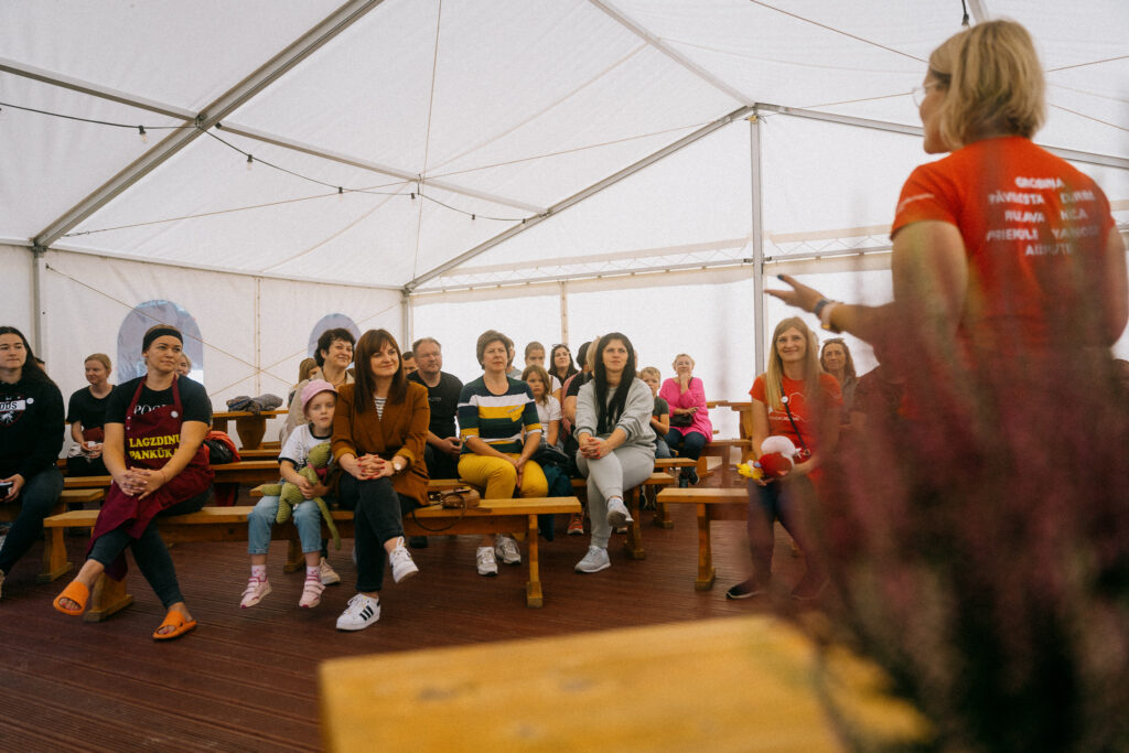 Otro gadu festivālā kopā sanāca arī Dienvidkurzmes Māju kafejnīcu dienu dalībnieki. “Teicām lielu paldies par četrās nedēļas nogalēs paveikto, kopumā pabarojot un apčubinot vairāk nekā desmit tūkstošus dalībnieku. Nomizoto kartupeļu daudzumu un izvārīto zupu litrus pat grūts saskaitīt, bet tālākie ciemiņi bijuši pat no Taizemes. Saimniekus priecējuši tukšie šķīvji un pateicības vārdi. Šajā reizē kā pateicību par dalību Māju kafejnīcu dienās saimnieki tika pie īpaši gatavotiem salvešu turētājiem un pašiem bija iespēja meistarklasē ar Daci Miemi radīt savu unikālo priekšautu, ar ko rotāties jau nākamā gada Māju kafejnīcu dienās,” stāsta I. Skābarde.