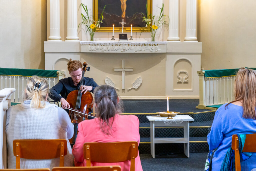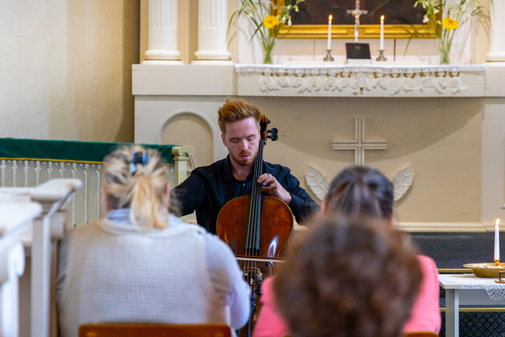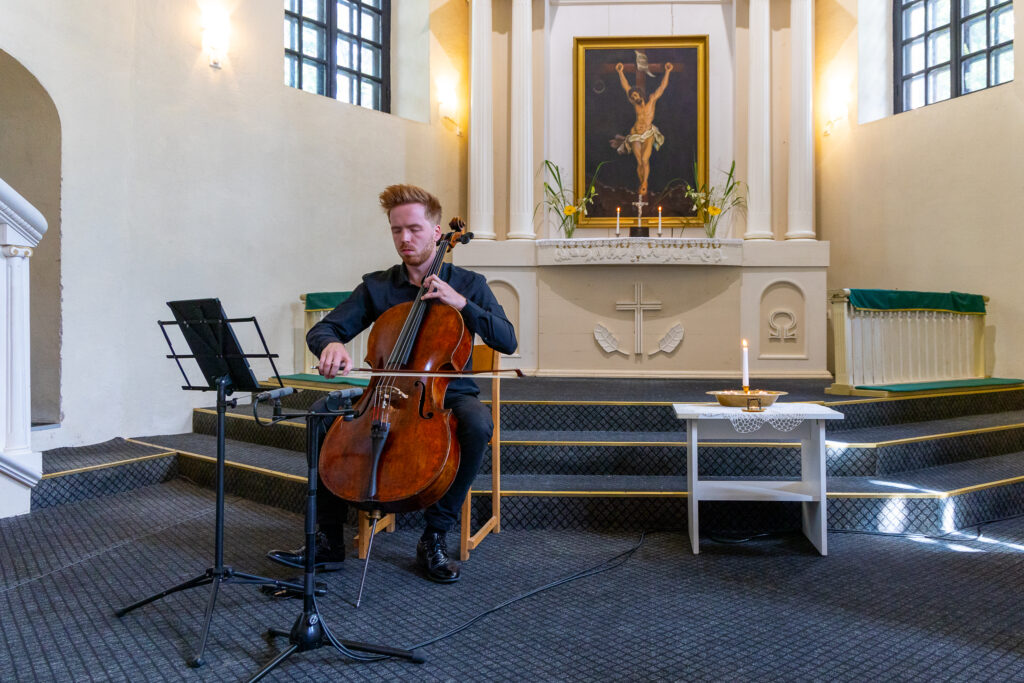 Priekules eveņģēliski luteriskajā baznīcā svētdien, 11. augustā, festivālā “Rimbenieks” izaicinošo un vienlaikus iedvesmojošo Bendžamina Britena Pirmo svītu čellam atskaņoja Klāvs Jankevics.