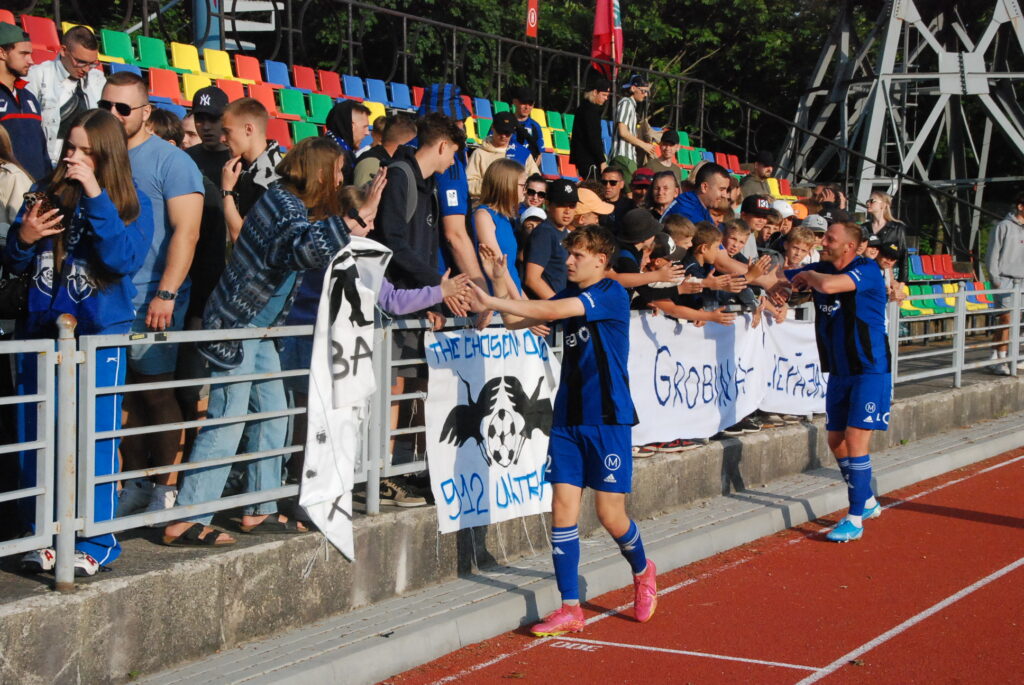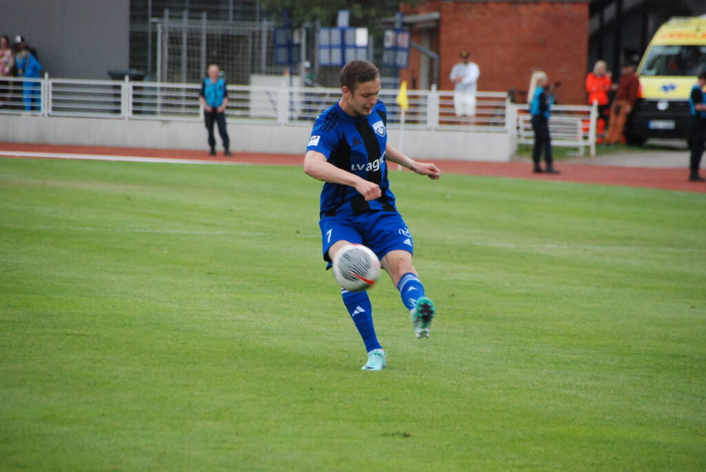Pirmajā Dienvidkurzemes derbijā šosezon ar 3:2 uzvaru svinēja Grobiņas futbolisti.