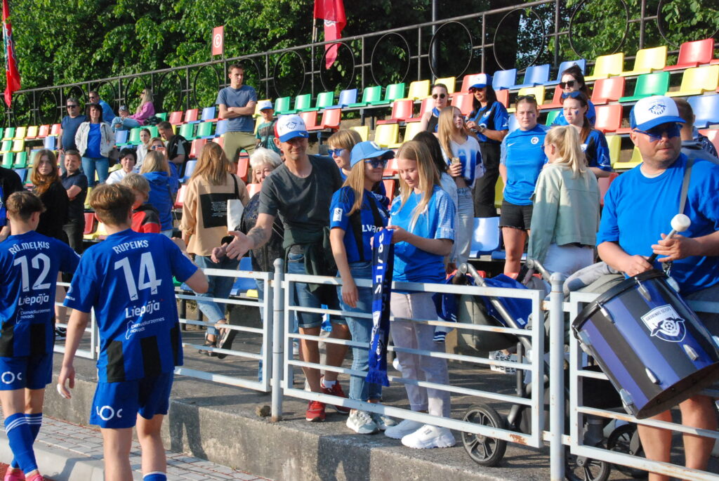FOTO: Gara līdzjutēju rinda pie "Daugavas" stadiona: "Liepāja" Dienvidkurzemes derbijā revanšējas "Grobiņas SC/LFS" komandai