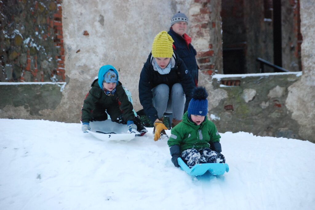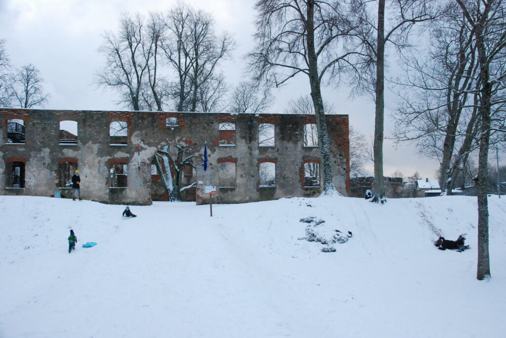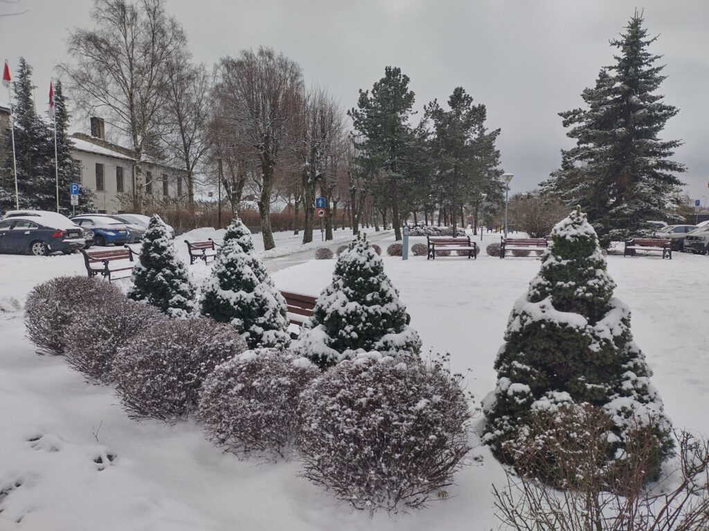 Fotogalerija no sniegotās Grobiņas, kur otrdien, 28. novembrī, pilskalnā tika baudīti ziemas prieki, bet pati pilsēta bija sniega rotā.