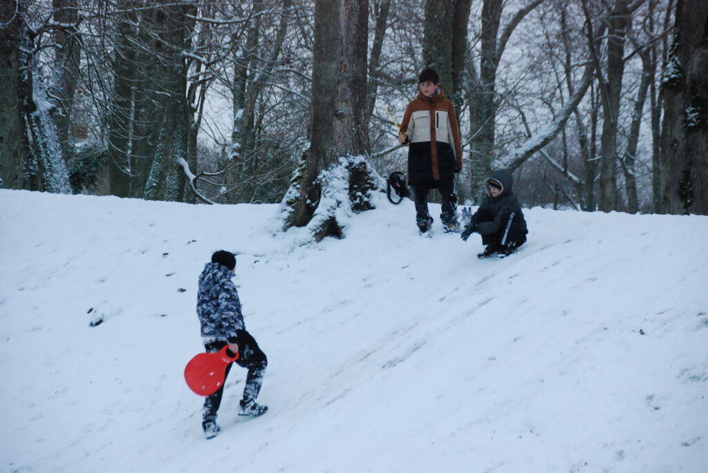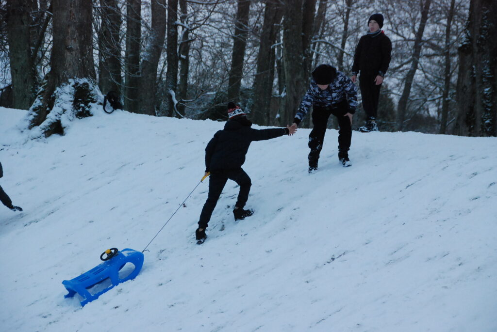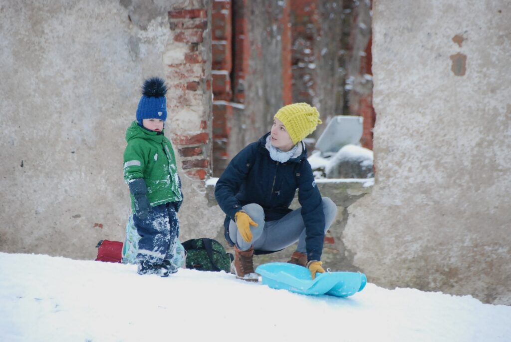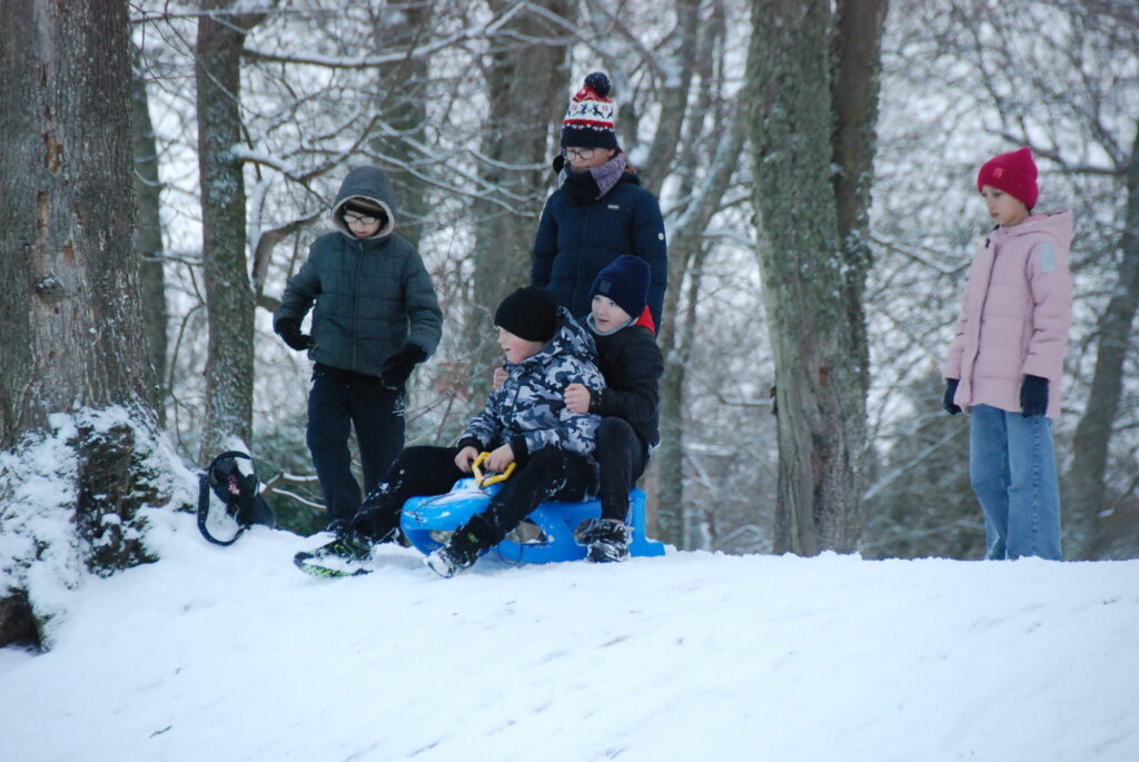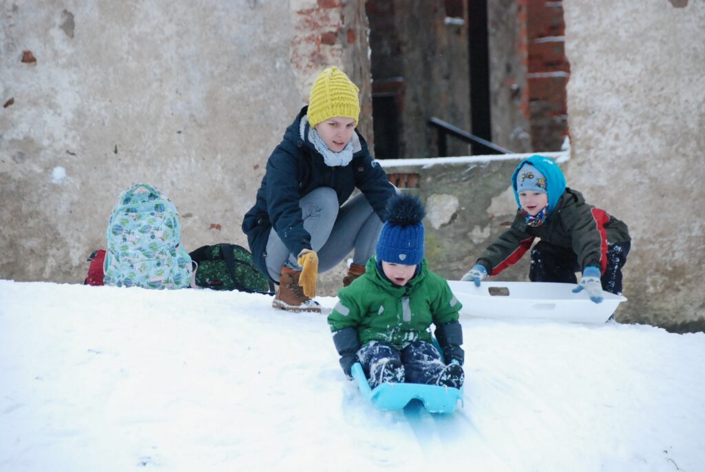 FOTO: Grobiņā bauda ziemas priekus sniegotajā 28. novembrī